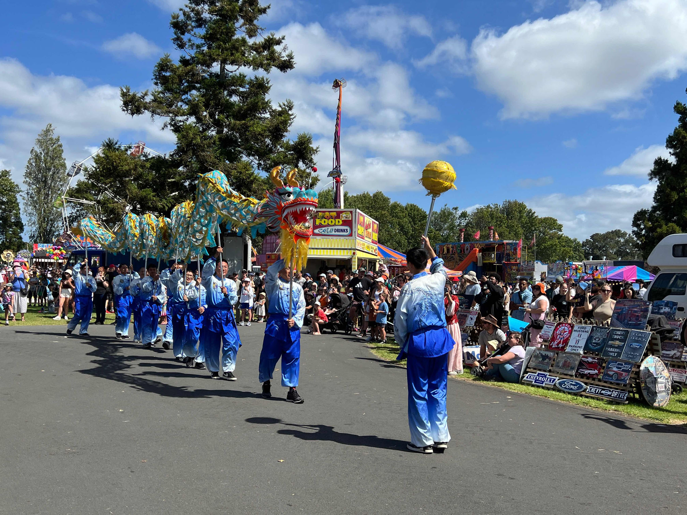 展览会吸引了二百多个贸易摊位参加,现场活动精彩纷呈,包括伐木比赛、剪羊毛比赛、苏格兰高地舞蹈、摩托车表演、拖拉机游行等。法轮功学员的功法展示摊位前游客络绎不绝,学员组成的腰鼓队、舞龙队参加了表演与游行,受到观众的喜爱。