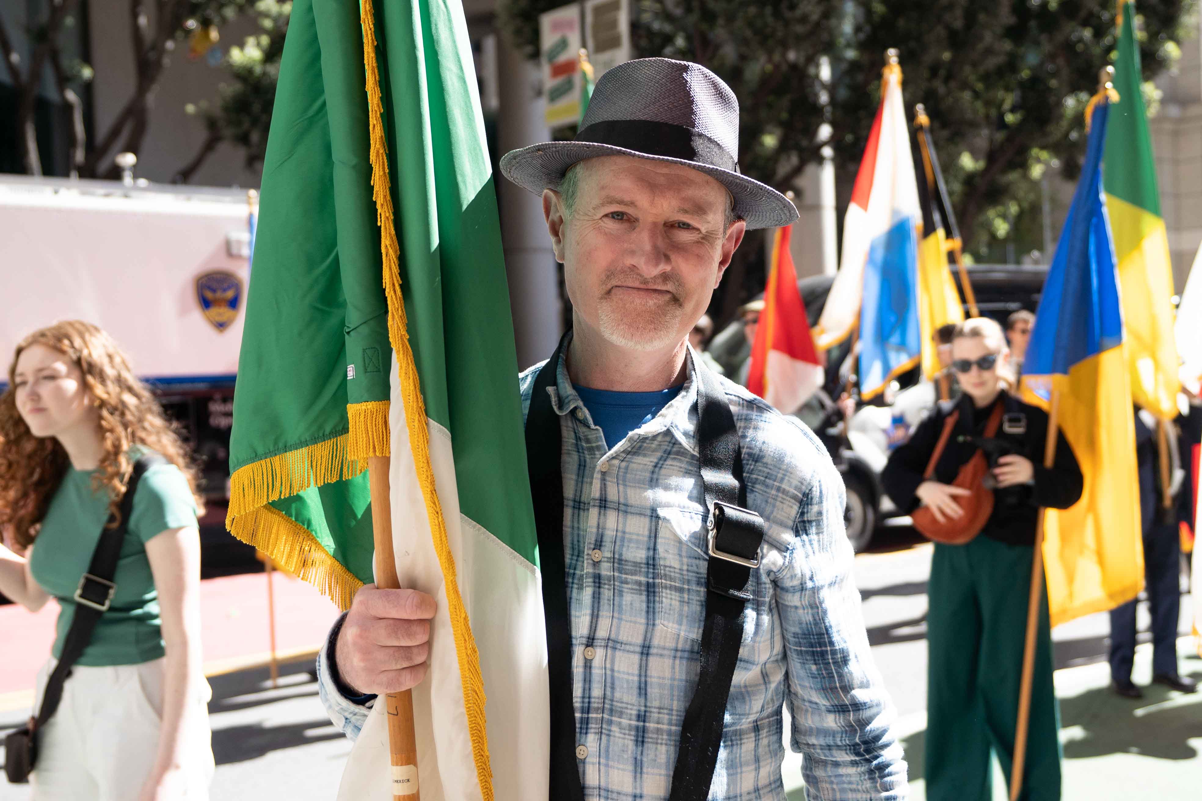 Neil Campbell参加的队伍是举着爱尔兰各个县的旗帜,他表示,他经常碰到法轮功学员,他说,“我在纽约就见过法轮功学员,他们都是非常平和的人,我认为法轮功非常好,在炼功场所,我见到他们,他们都是很受尊敬的人。”