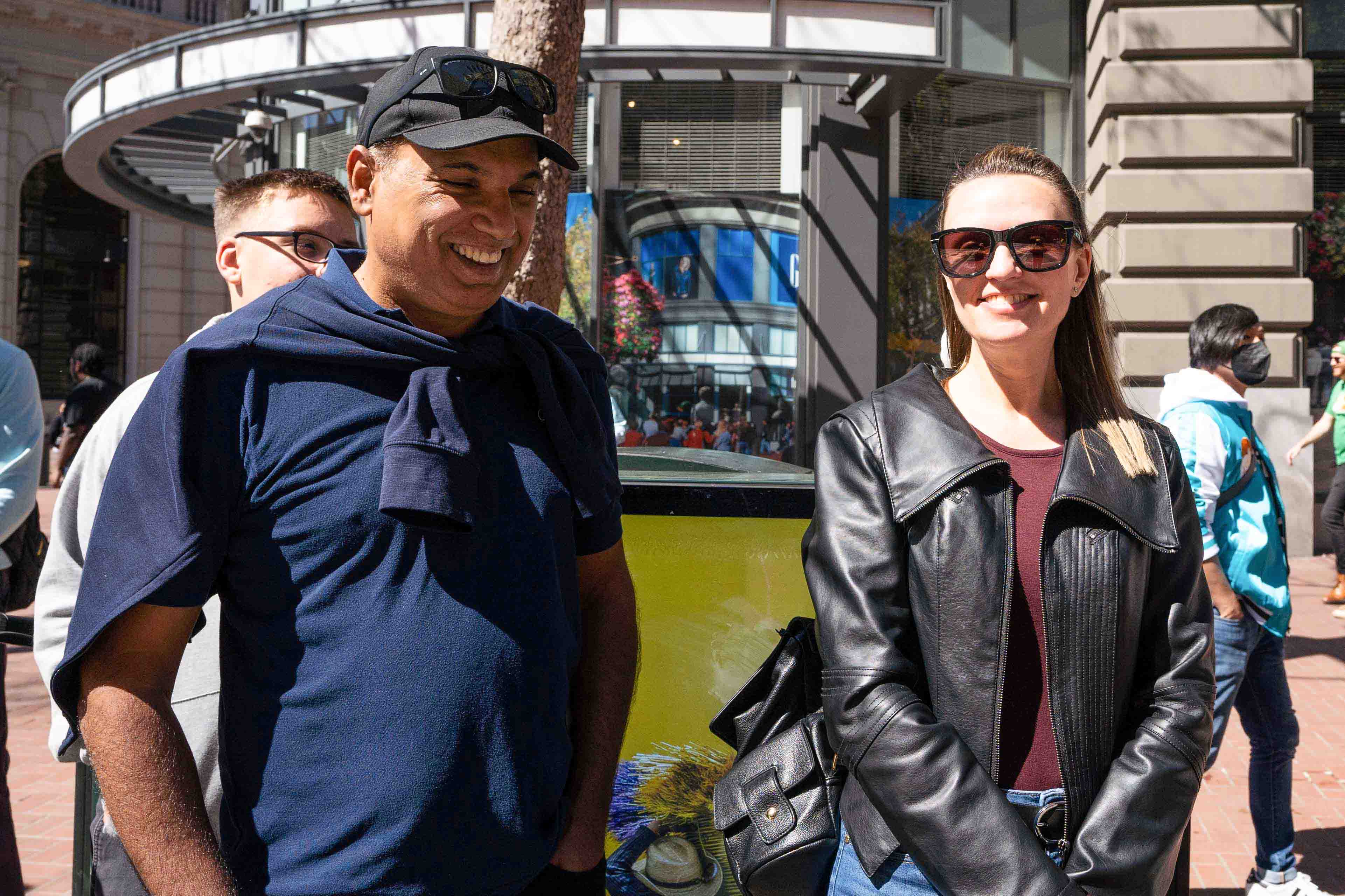 ![]() 图17:印度裔美国人Narem和他的乌克兰裔太太Athana表示,他们喜欢法轮功学员的队伍 |