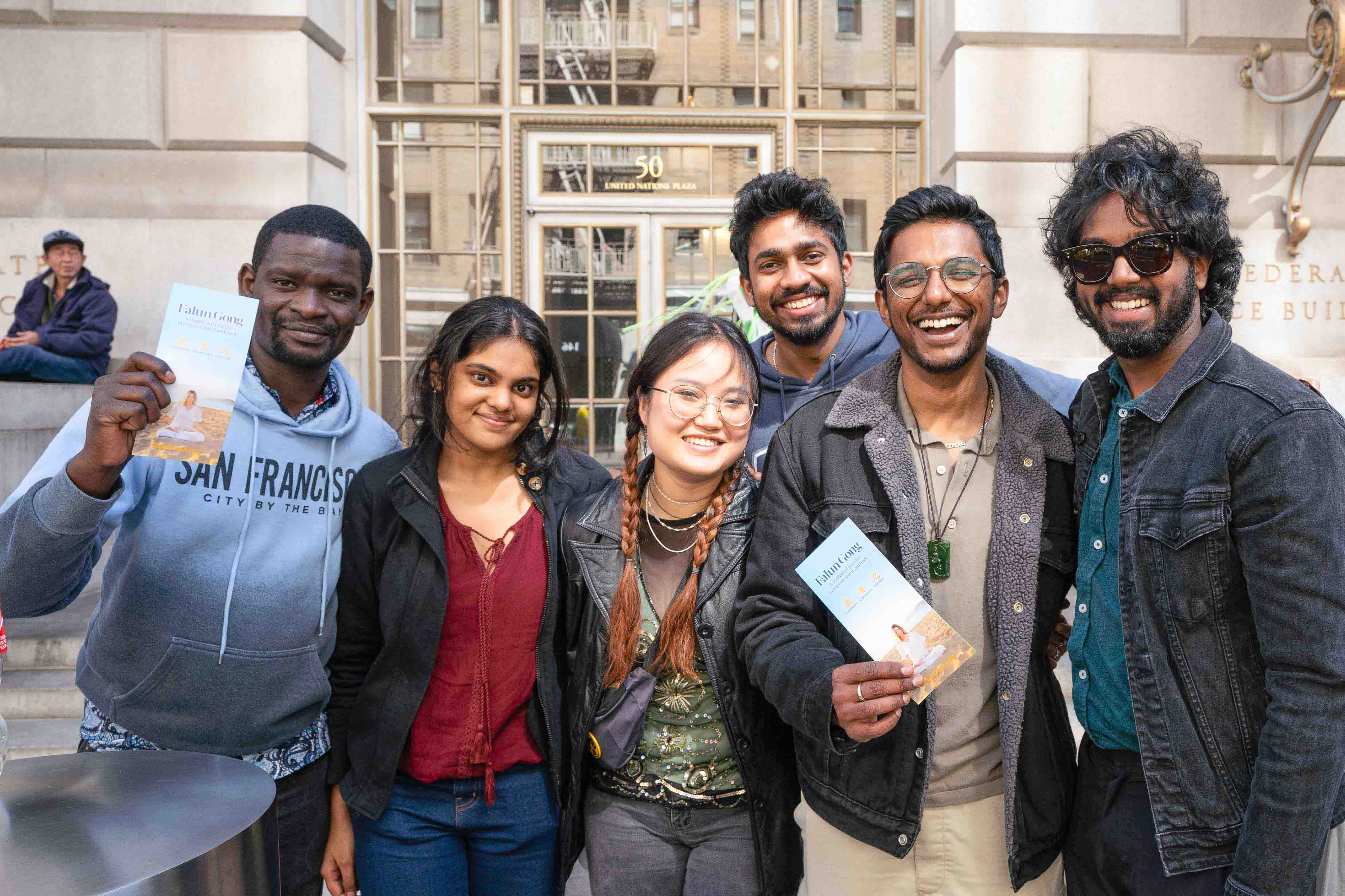 ![]() 图18:电脑工程师Rahul(右一)和他的朋友们支持法轮功 |
