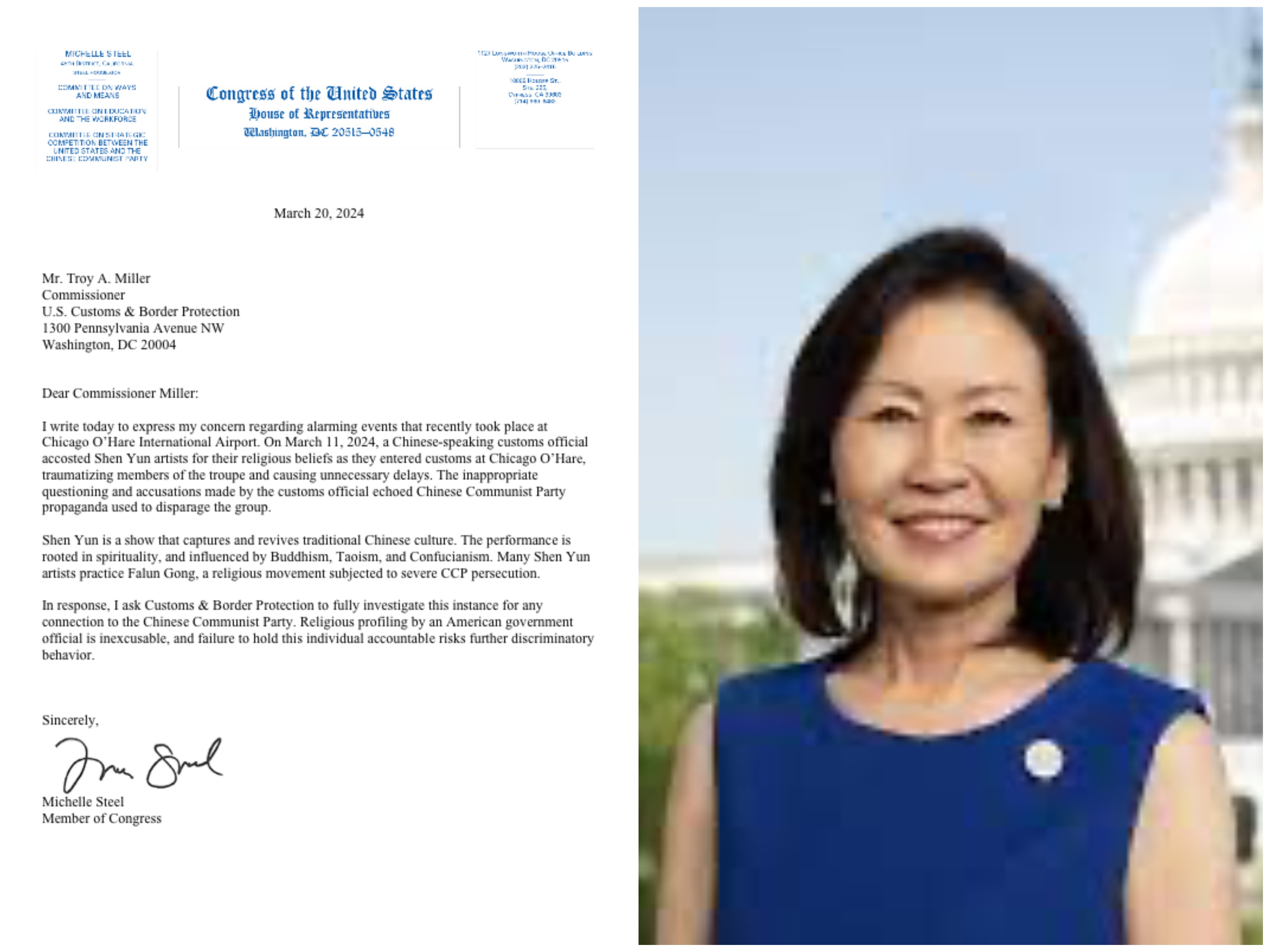 斯蒂尔议员在信中说:“我今天致信给您,是为了表达对最近发生在芝加哥奥黑尔国际机场事件的关切。 二零二四年三月十一日,神韵艺术家在芝加哥奥黑尔海关入境时,一位会说中文的海关官员因为他们的信仰把他们拦下,给艺术团成员造成心理上的创伤及不必要的延误。这位海关官员不适当的质疑与指责,与中共贬低该团体的宣传如出一辙。”