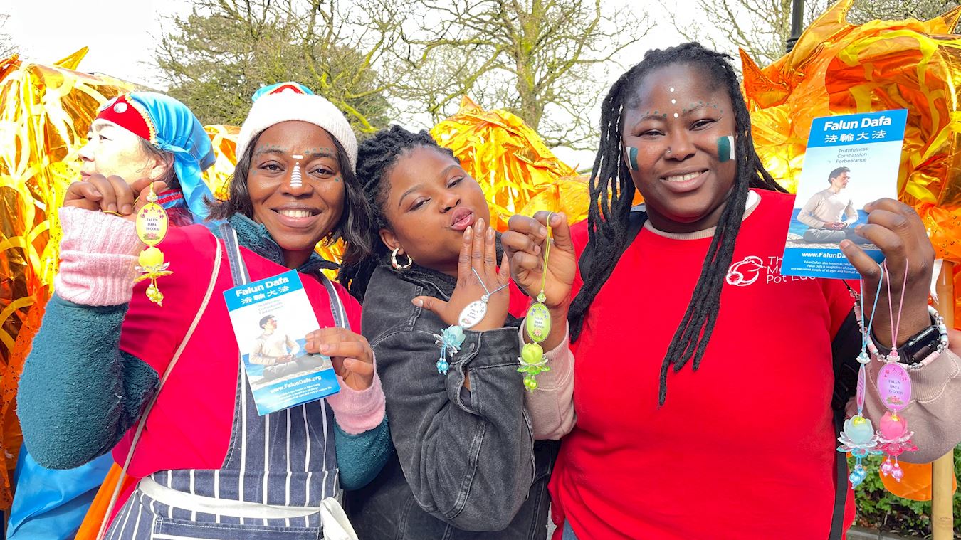 来自南非的埃丝特(Esther)、奈姬(Nike)、达姆(Damm)是游行的参与者。在游行出发前看到了法轮功学员的方阵,她们特意跑来与学员合影,无论是威风凛凛的金龙、还是色彩明丽的花车,都令三人啧啧称奇、赞不绝口,也让她们更想知道什么是法轮功、在哪里能学法轮功。