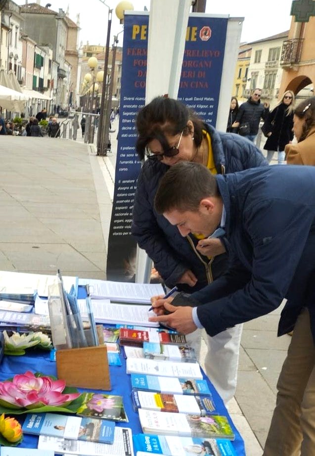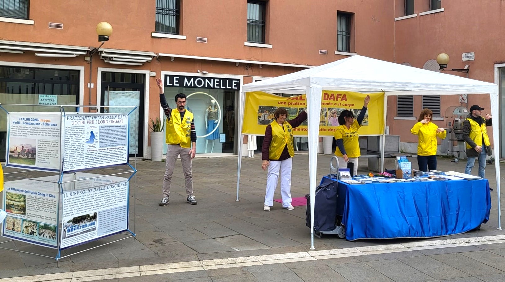 ![]() 图1:二零二四年三月十七日星期日,法轮功学员在梅斯特雷城(Mestre)市中心举办讲真相活动。学员向市民及游客展示法轮功功法。 |