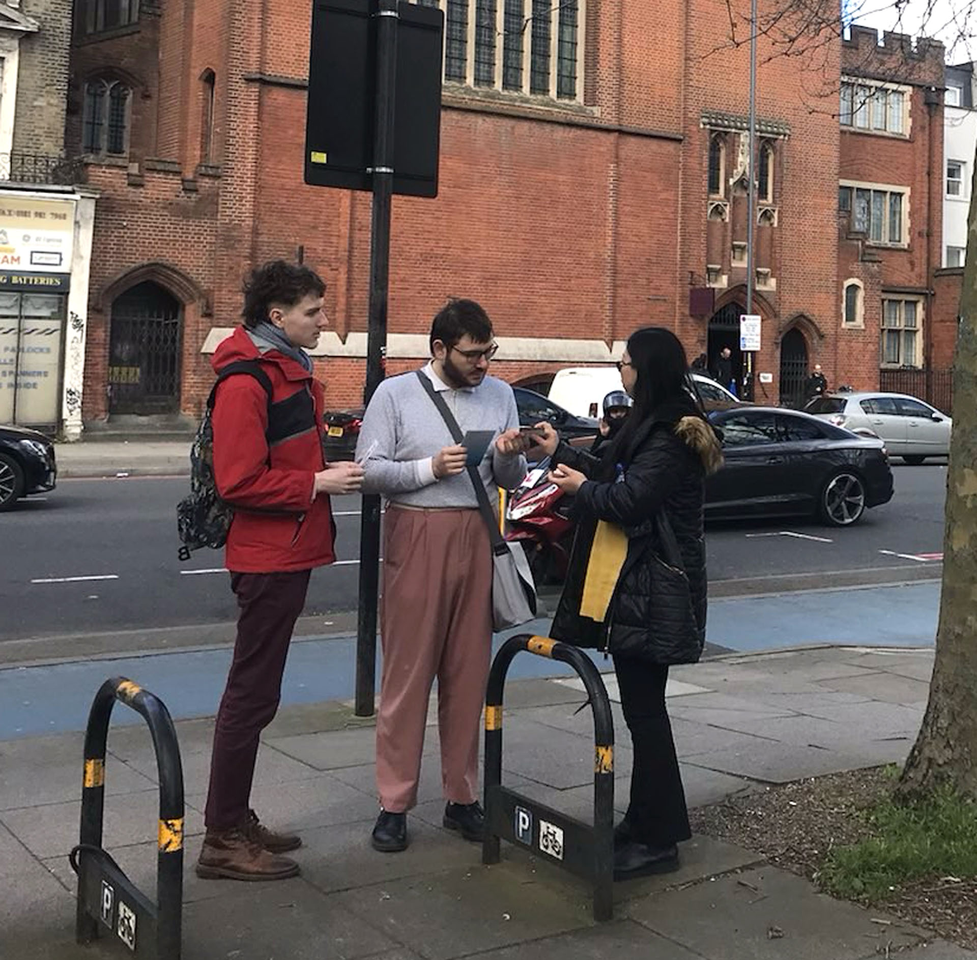 ![]() 图3:德国人本·多里尔(中)和他的朋友支持反迫害征签 |
