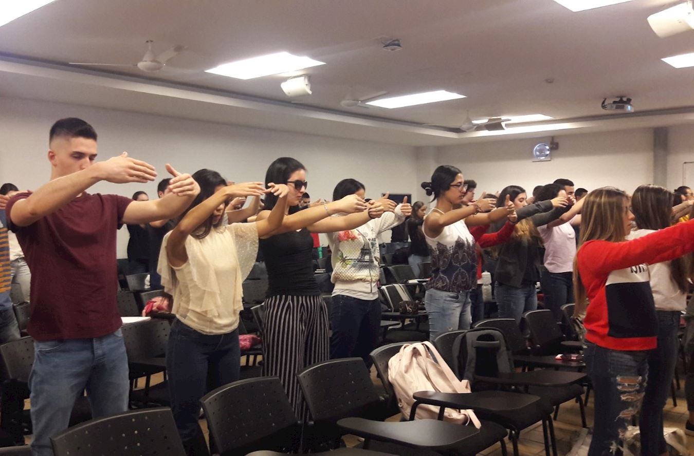 在弘法班上,法轮功学员介绍法轮大法,并唤起学生们对中共迫害法轮功,尤其是活摘法轮功学员器官罪行的关注。得知法轮功遭受的迫害后,学生们对发生在中国的严重侵犯人权的行为表示关注和震惊。法轮功学员还教学生们学炼法轮功五套功法,学生们感受到炼功使他们重新获得能量和内心的平静。
