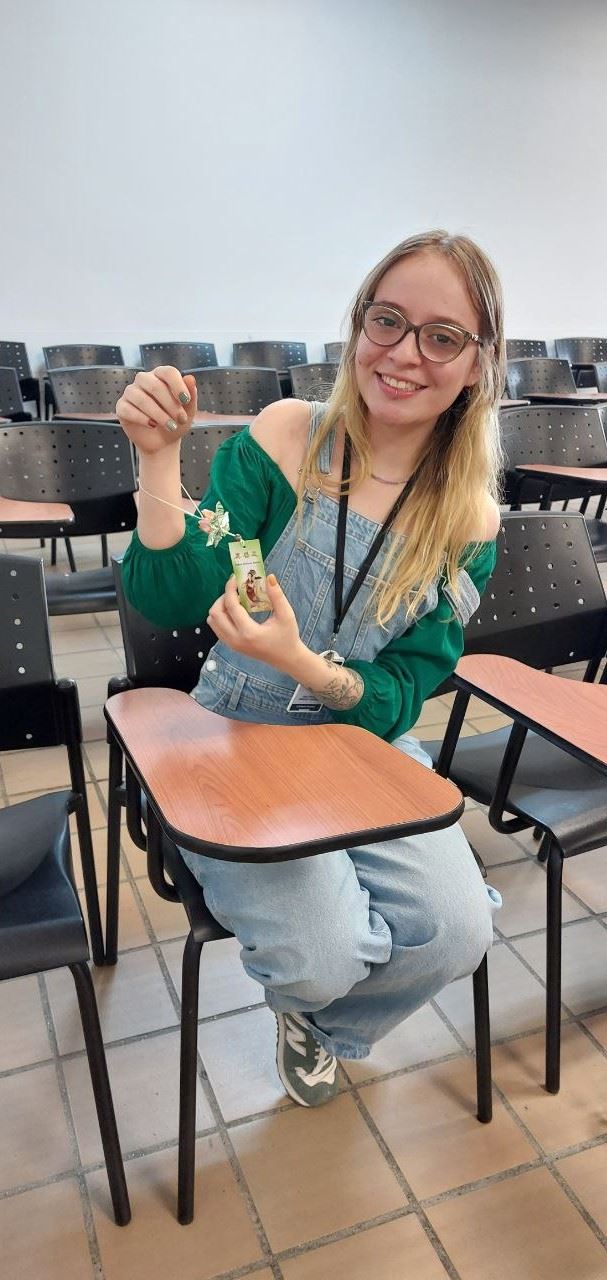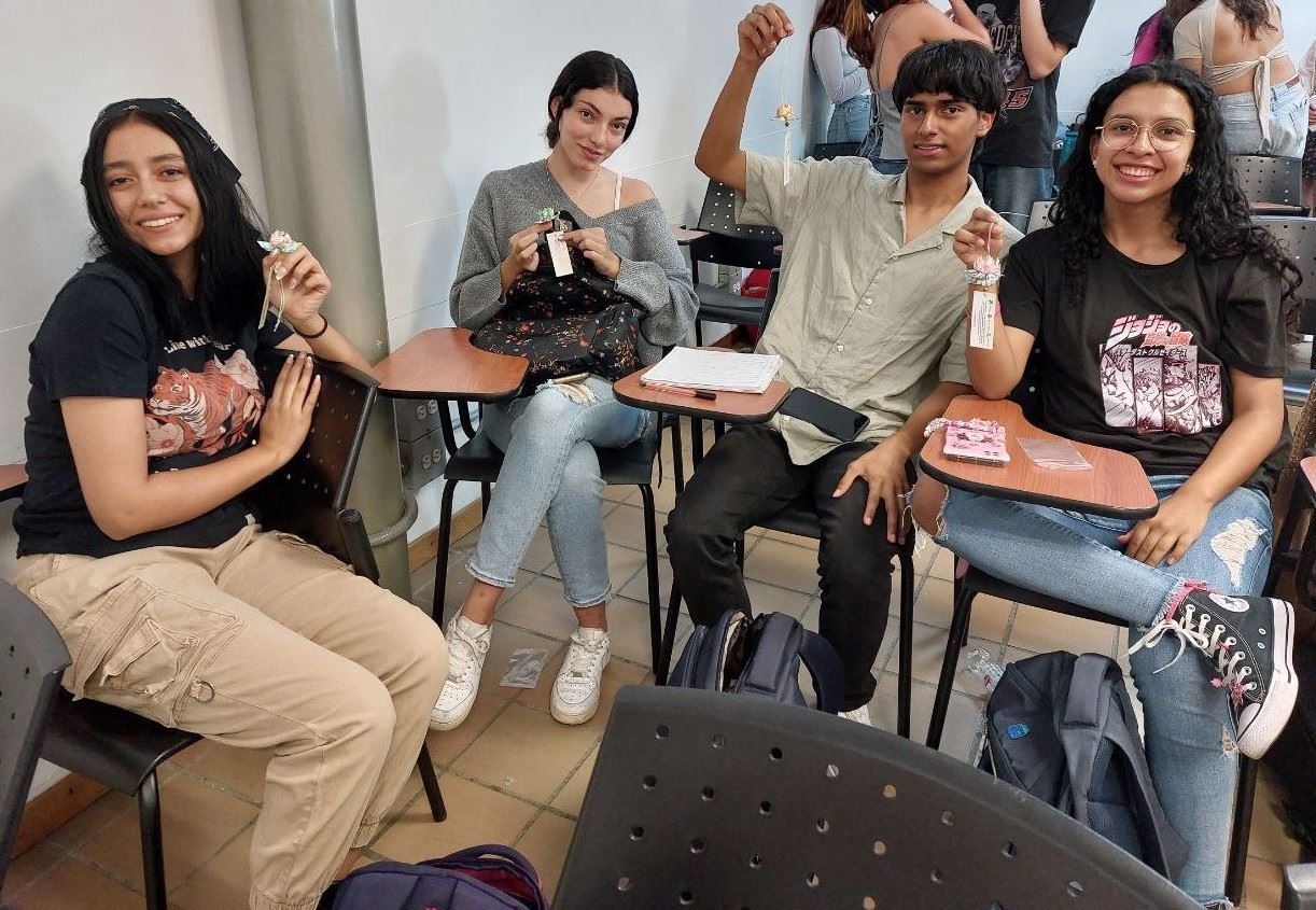 ![]() 图6:从左到右:学炼法轮功后,生物学和生态学学生梅丽莎(Melissa)、胡安妮塔(Juanita)、塞巴斯蒂安(Sebastian)和索菲亚(Sofia)手持真相小莲花开心合影 |