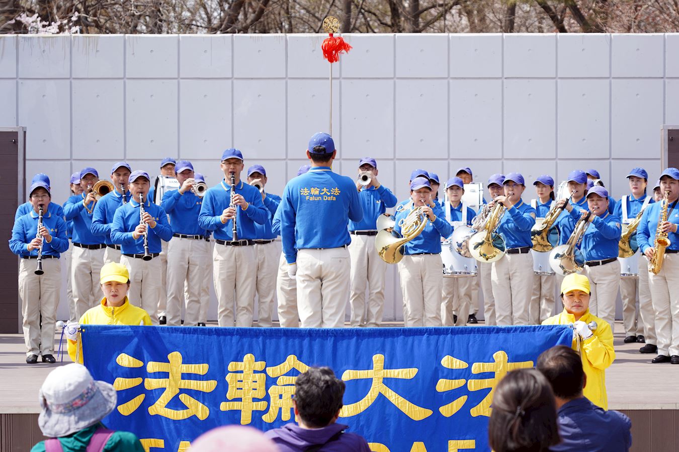 二零二四年四月七日,二十摄氏度的好天气出来游玩的游客很多。当天国乐团的演奏一响起,人们都被音乐所吸引,随着音乐拍手欢呼。在自由公园里,当地主播TATAO主持了本次的演出。他向观众介绍,天国乐团的团员都是修炼法轮大法的修炼人,他们的演奏带有传统文化的优雅和真实、善良、忍耐,可以给观众带来精神的升华。法轮功学员随后在舞台上展示舒缓祥和的五套功法,很多市民表示听完演奏的乐曲,看完法轮功炼功展示,感觉身心净化。