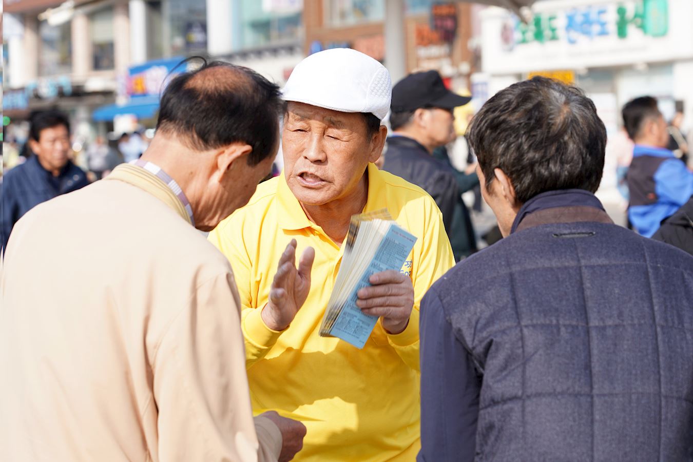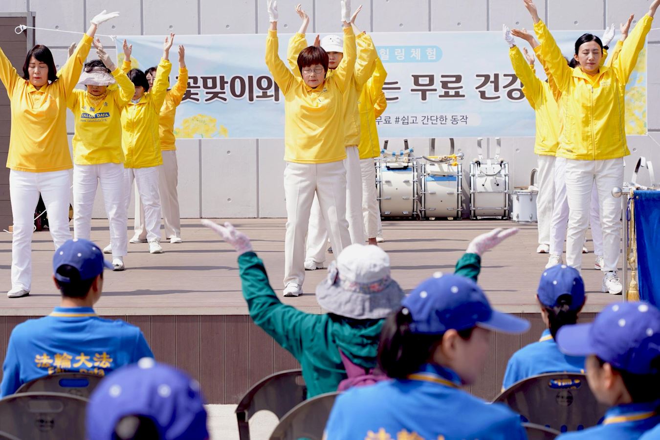 ![]() 图1:韩国法轮功学员四月七日举办了“与天国乐团一起赏花踏青”的弘法活动 |