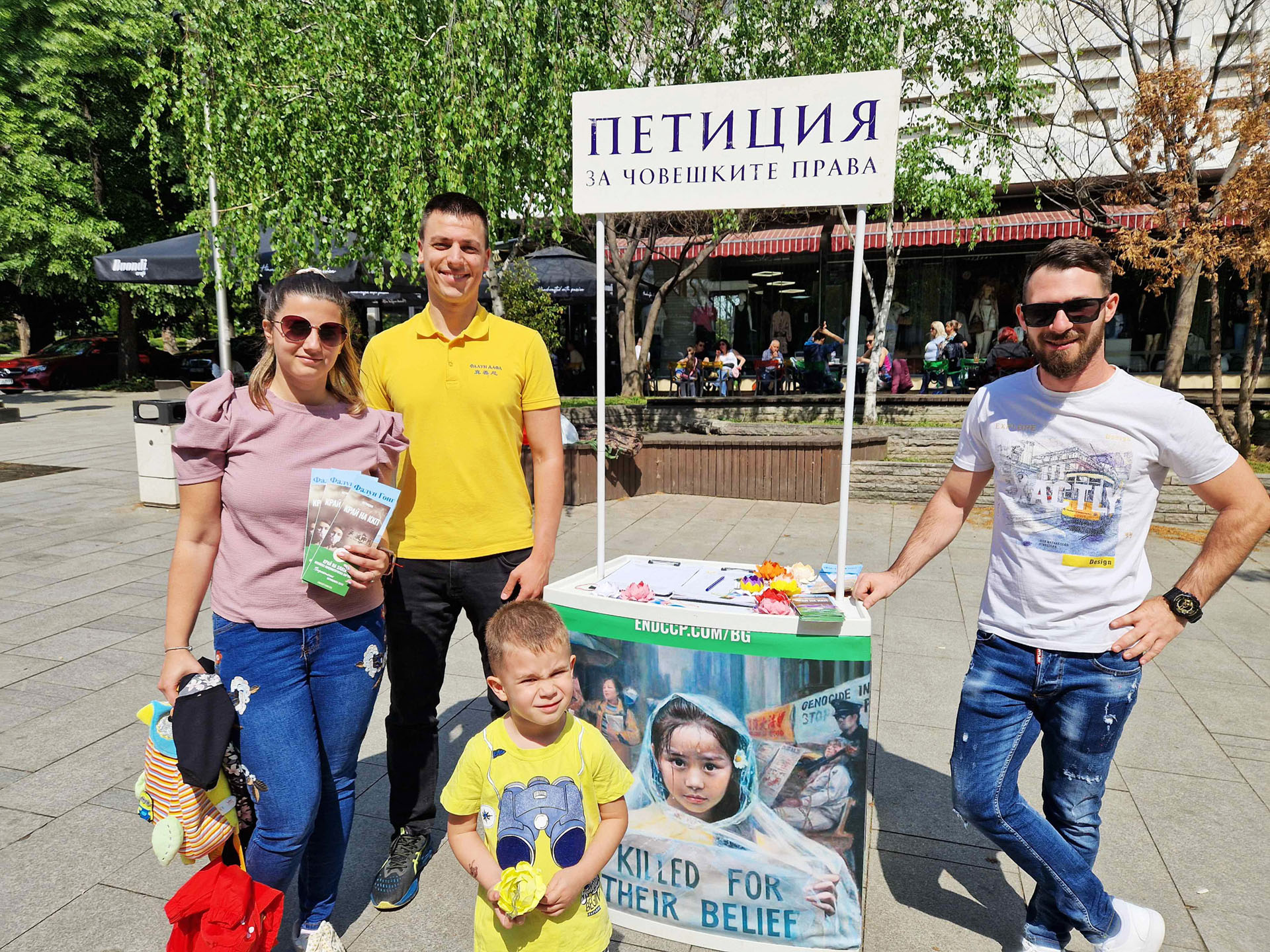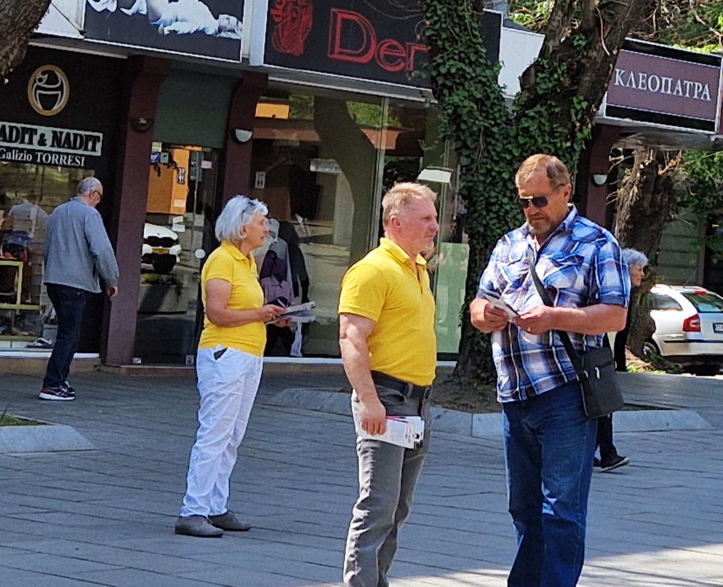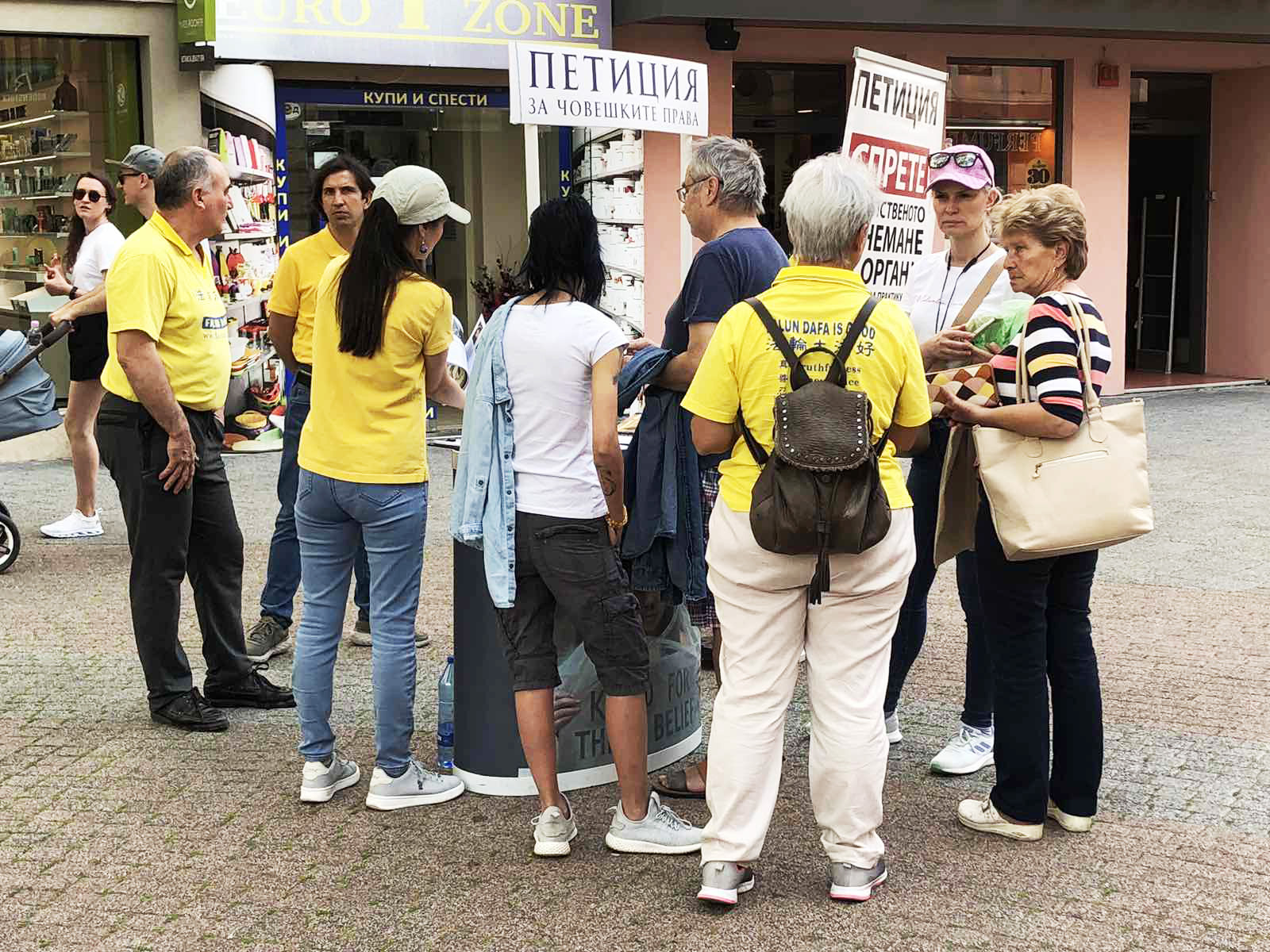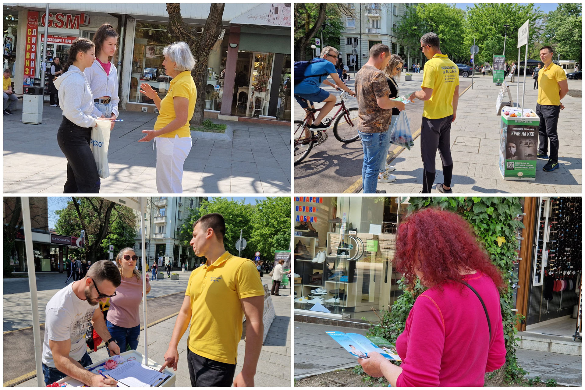 四月十三日,来自扬博尔(Yambol)、切佩拉雷(Chepelare)和旧扎戈拉(Stara Zagora)的法轮功学员们在旧扎戈拉的主要街道中央设置法轮功真相展台和横幅,引起了来往路人的关注。