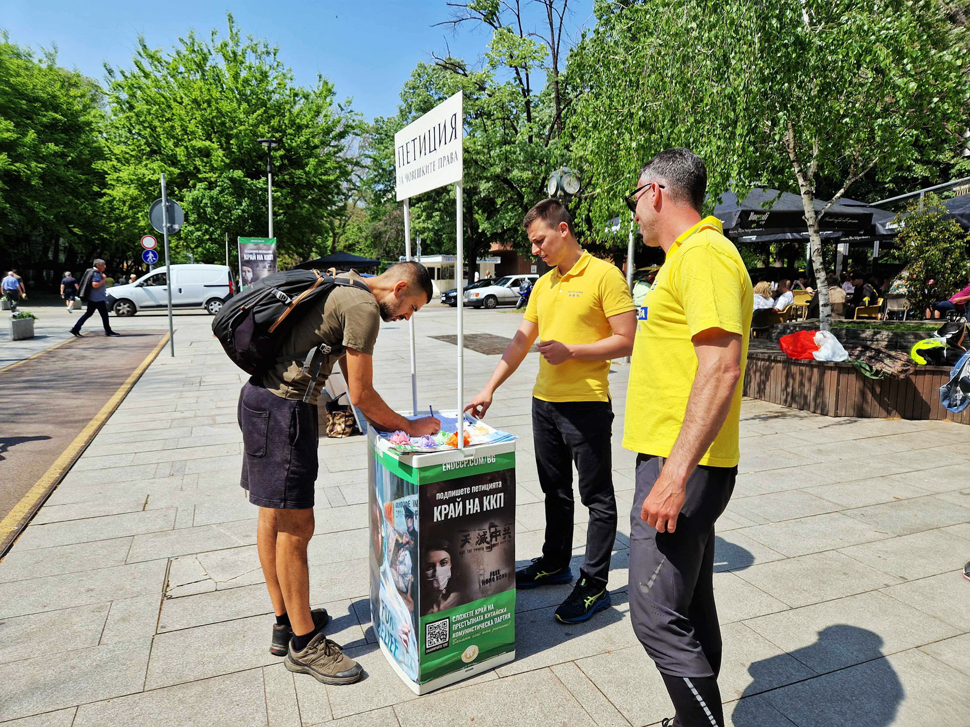 一位名叫斯托扬(Stoyan)的男士径直来到展位前在谴责中共的请愿书上签名。“我已经知道很多(真相)了。”他说,“我对这个话题很感兴趣。谢谢你们!祝你们好运!”