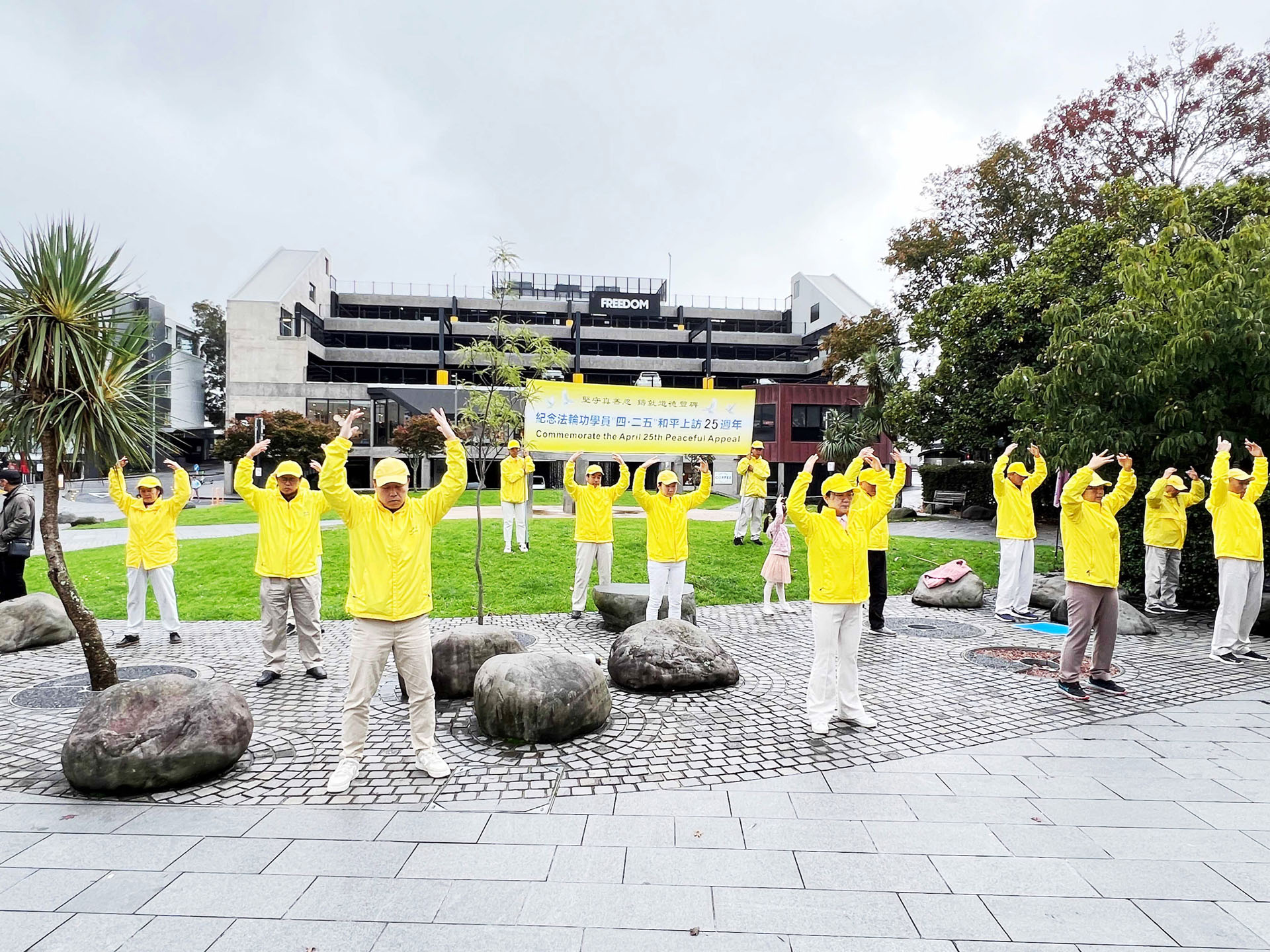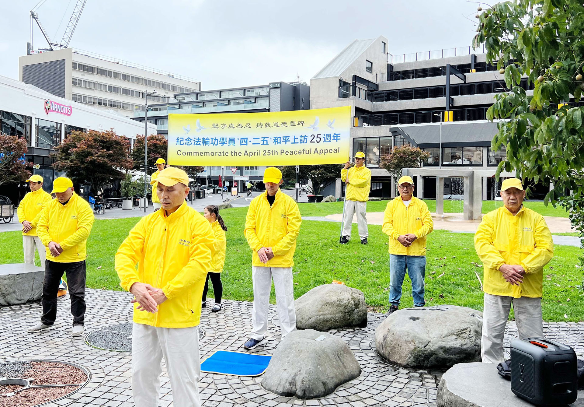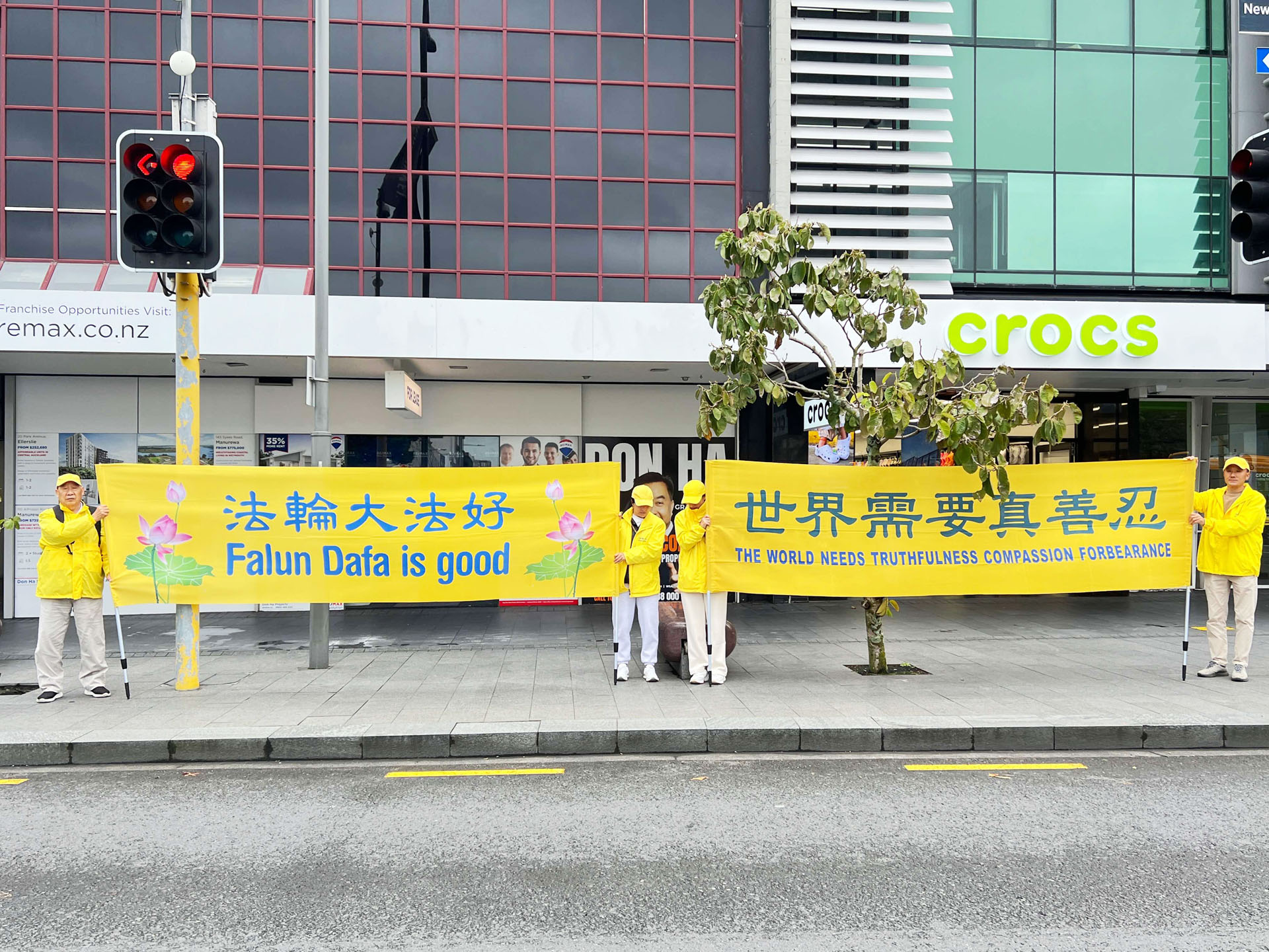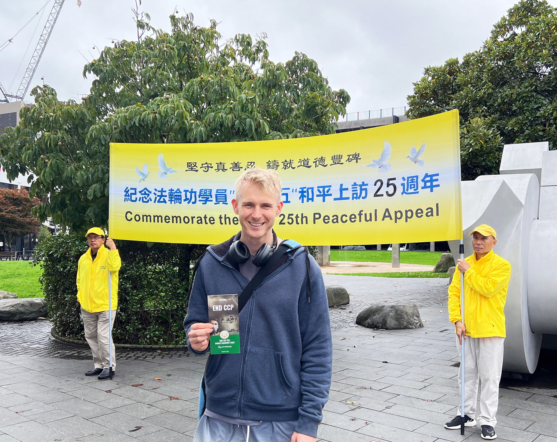 新西兰人权律师凯瑞·高尔到场支持,他说:“今天,我们纪念一九九九年四月二十五日,这个日子意义重大。因为在这一天,约一万名法轮功学员去北京的国务院信访办公室上访,和平呼吁释放在天津被非法关押的法轮功学员。虽然他们成功地获得了释放,但不幸的是,一九九九年七月二十日,中共开始迫害法轮功学员,这场迫害持续至今。”