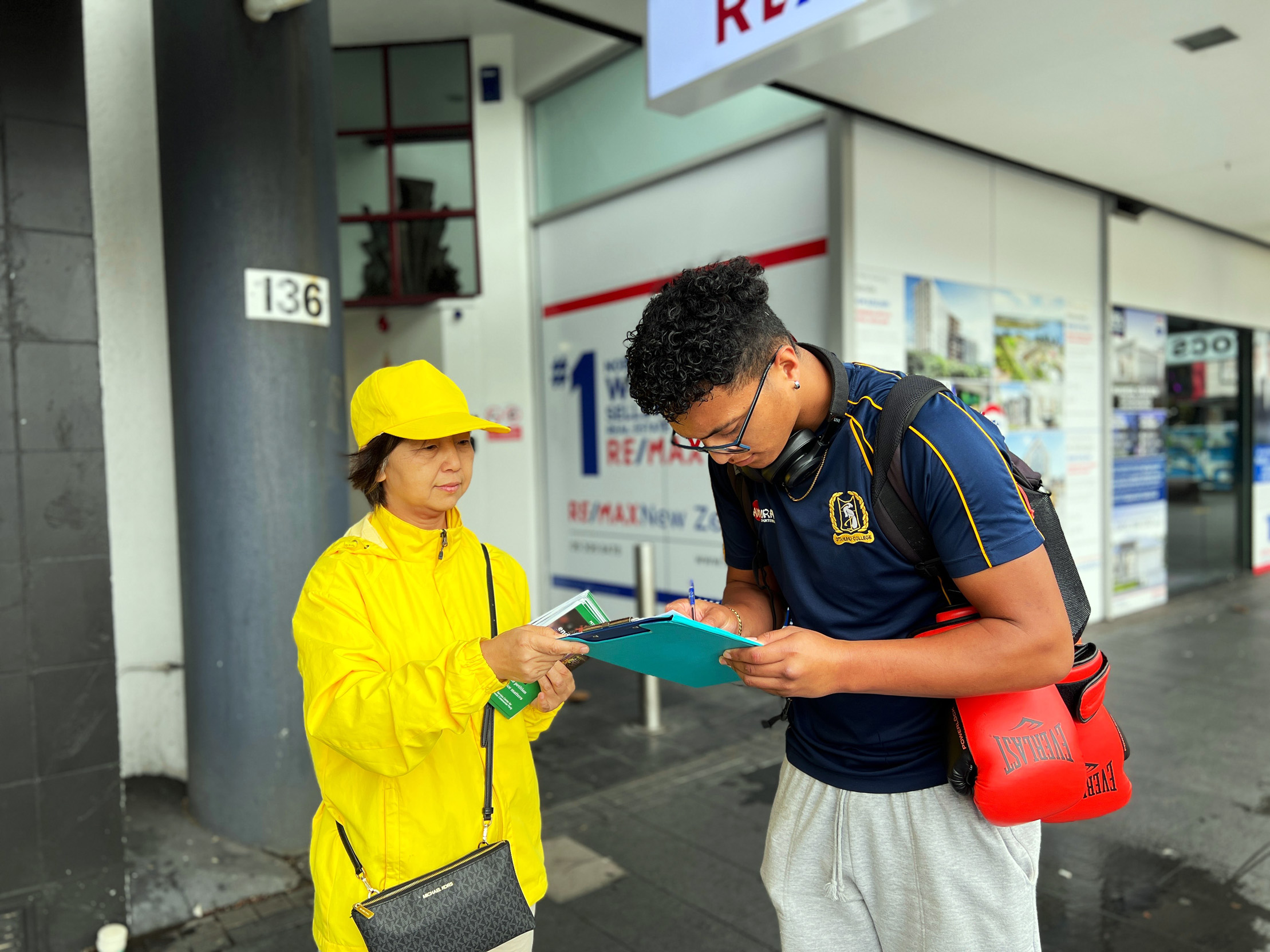 ![]() 图12:新西兰律师维姬·斯莱特(Vicki Slater)正在签名支持法轮功学员反迫害。 |