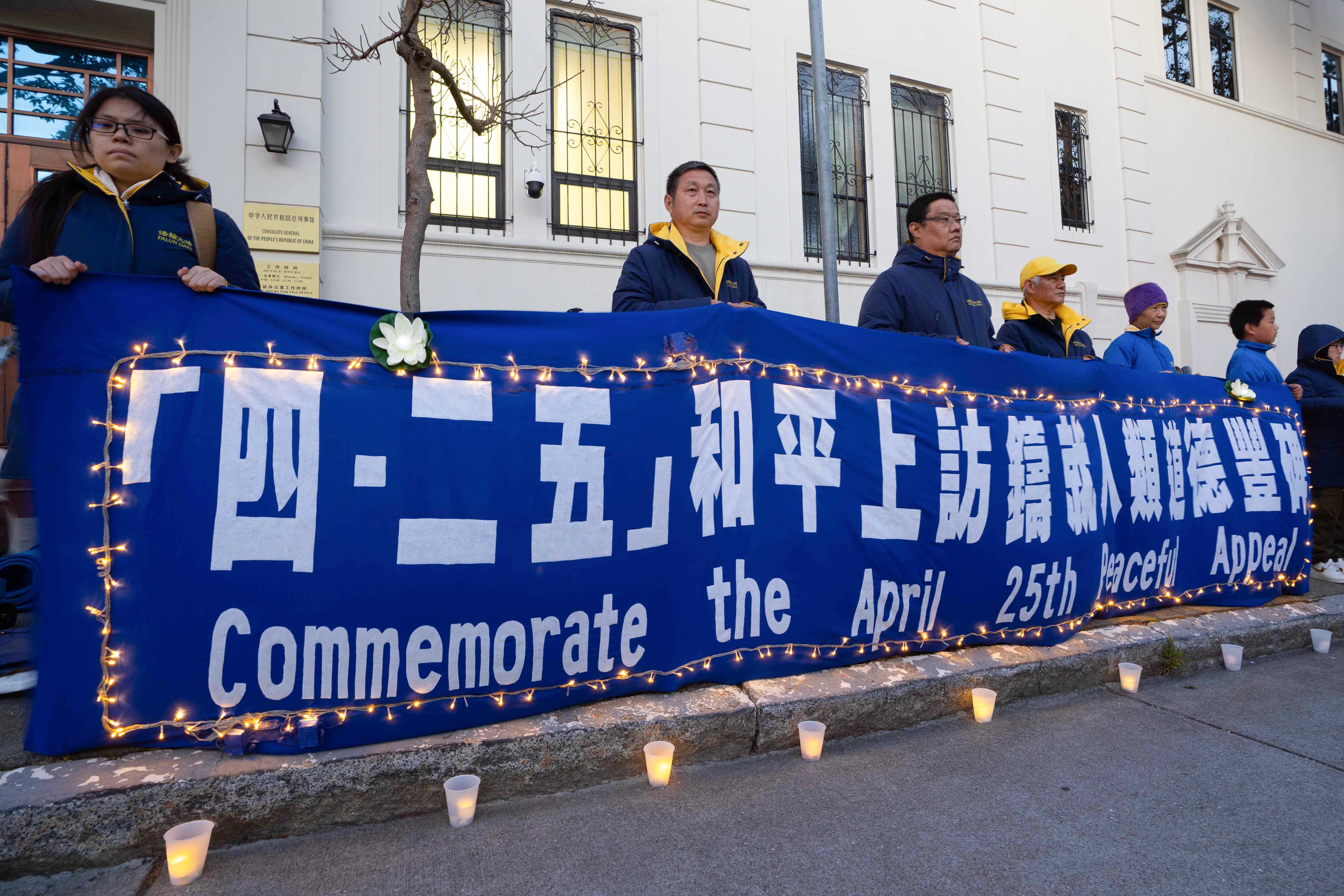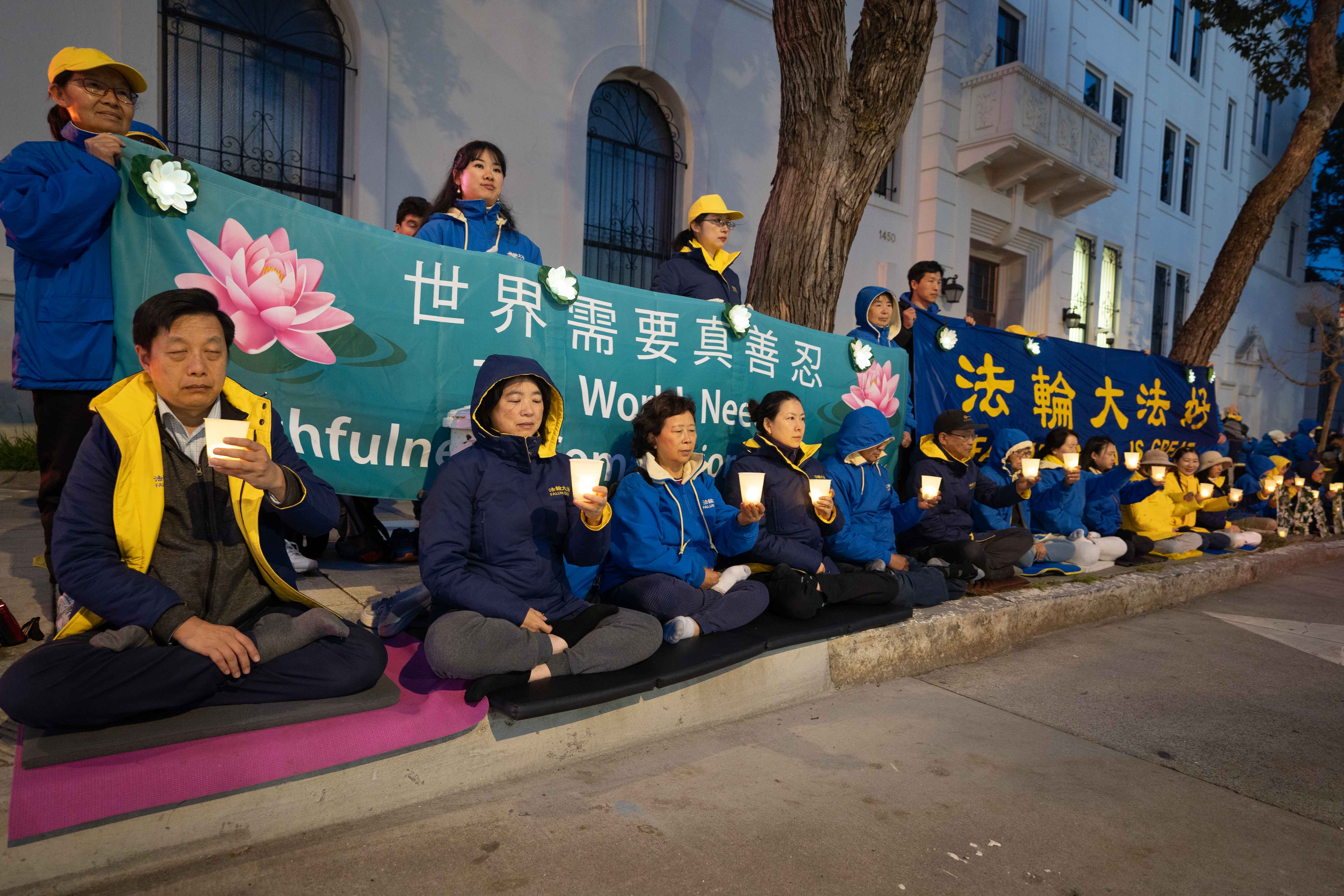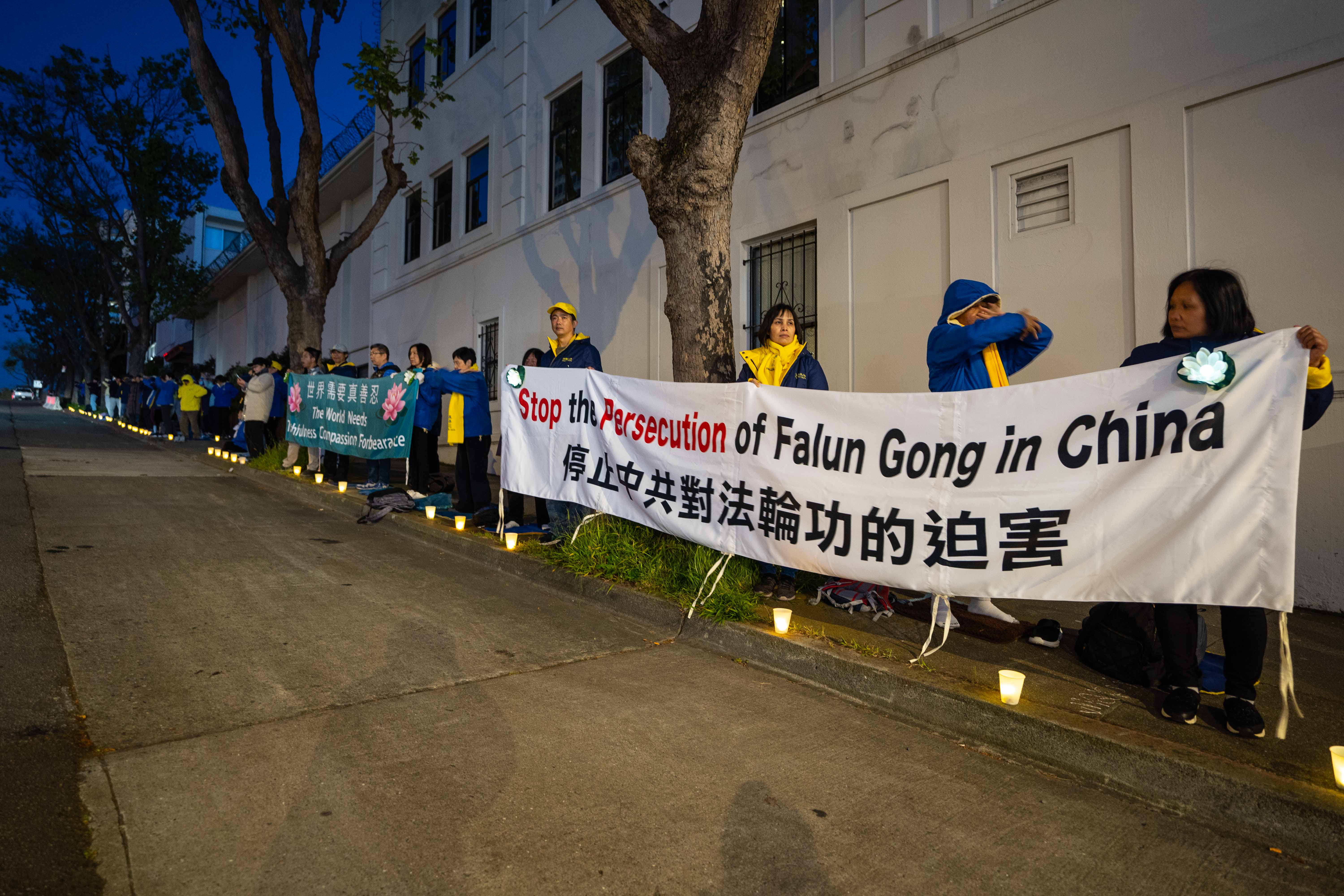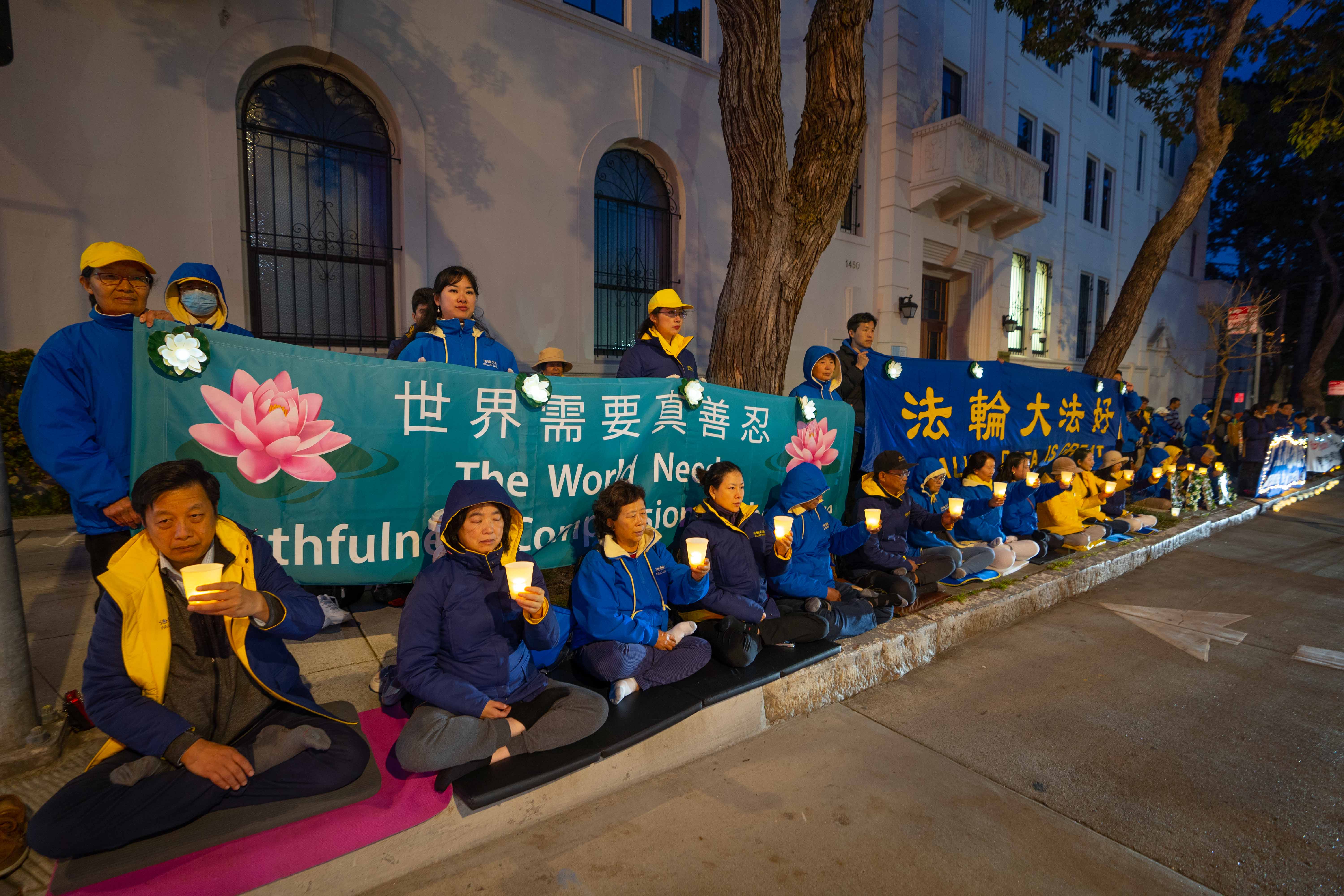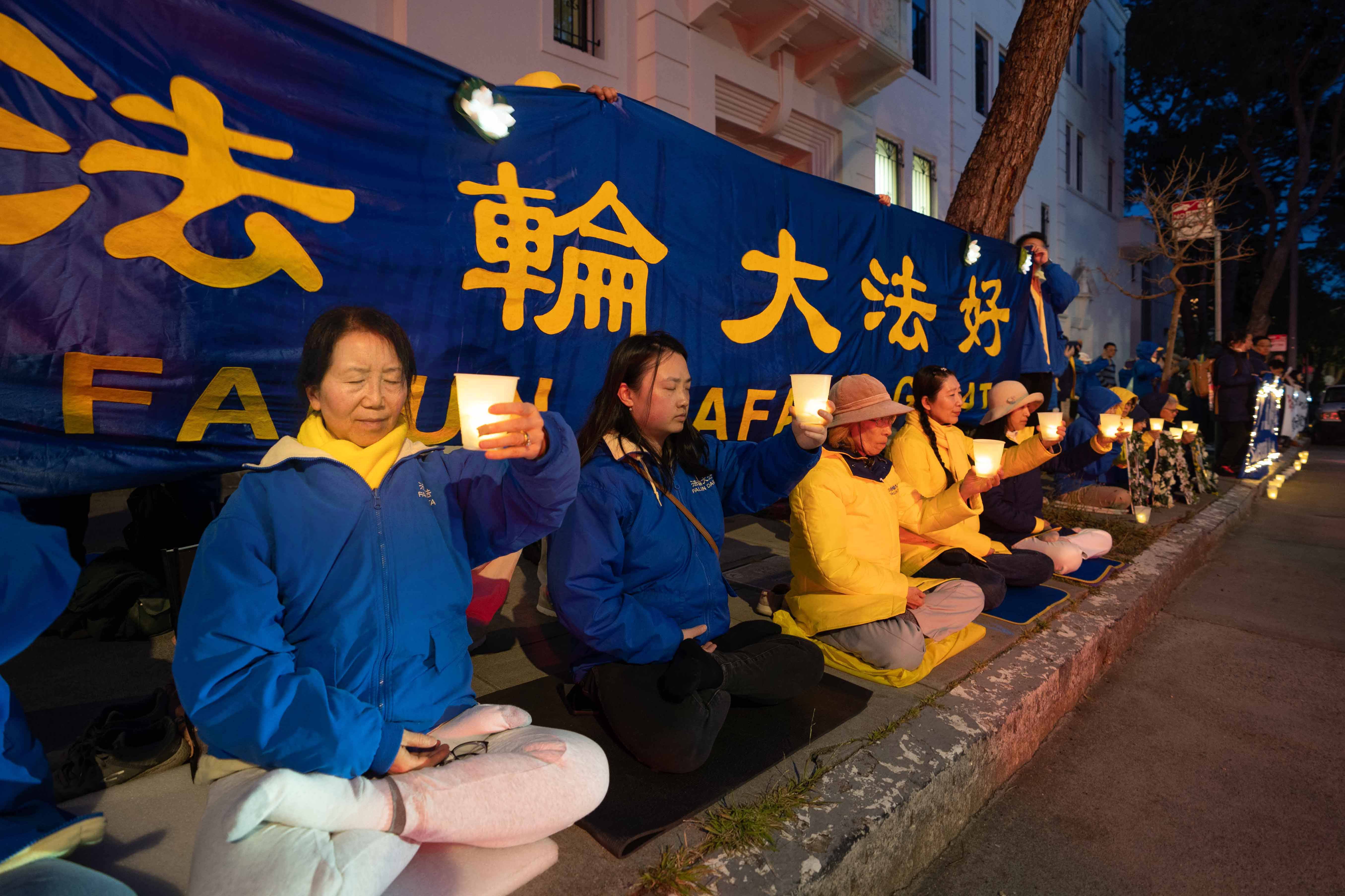 ![]() 图1~7:二零二四年四月二十日晚,法轮功学员在美国旧金山中领馆前烛光纪念遭中共迫害致死的法轮功学员。 |