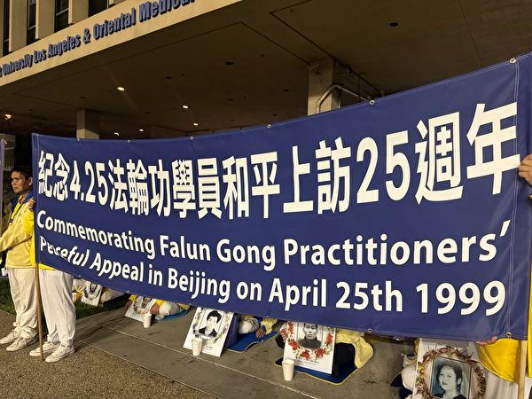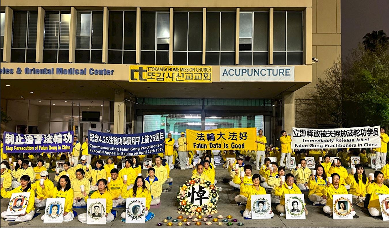 ![]() 图1~5::今年是上万名法轮功学员“四·二五”和平上访二十五周年。四月二十一日晚,夜幕降临,美国洛杉矶法轮功学员在中共领馆前举行烛光夜悼,纪念至少数以千计的被迫害致死的同门同修。 |