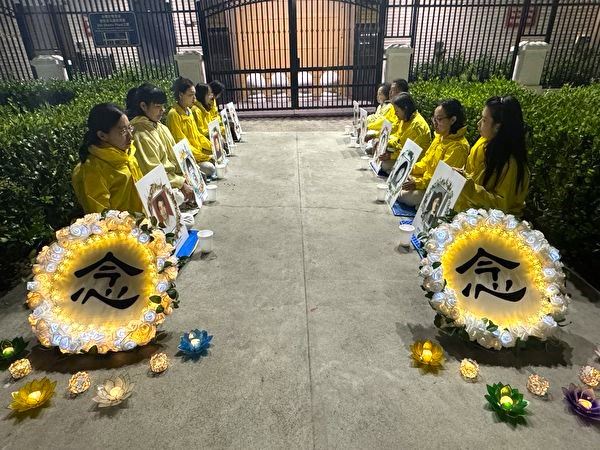 一九九九年四月二十五日万名法轮功学员在北京中南海信访局和平上访的壮举,令世界瞩目。但至今二十五年过去了,中共对法轮功的迫害仍未停止还在持续。烛光夜悼期间,学员展开“法轮大法好”、“世界需要真善忍”、“制止迫害法轮功”等横幅。伴随一首首悲壮的乐曲,学员们托起点点烛光,默默悼念被中共残酷迫害致死的法轮功学员。