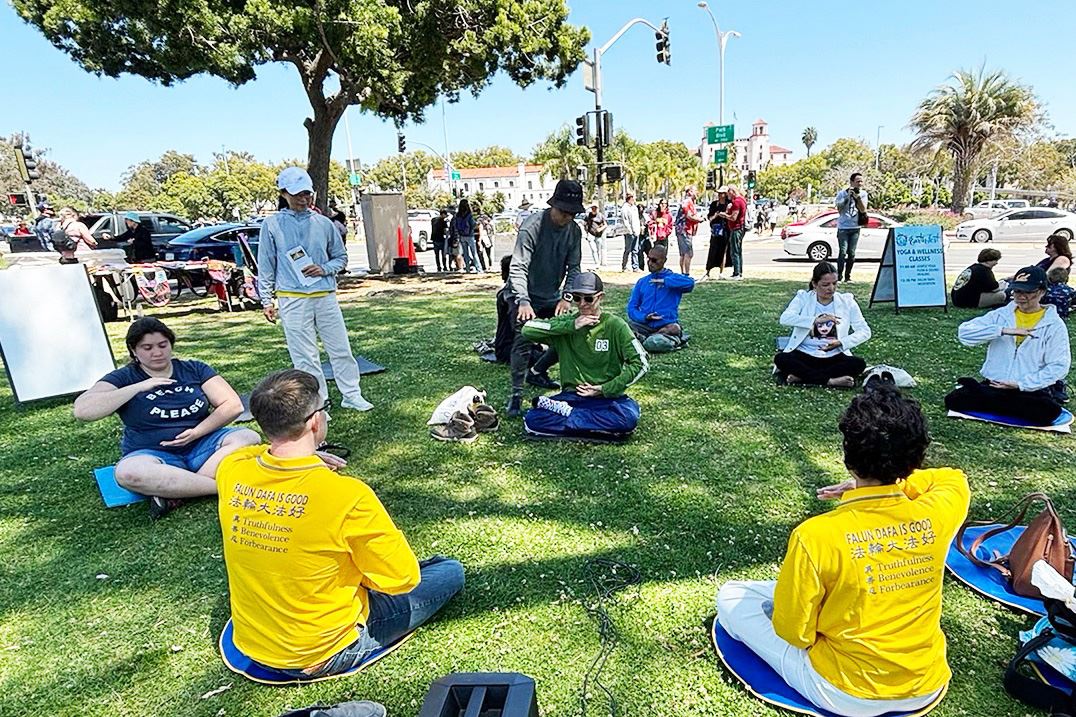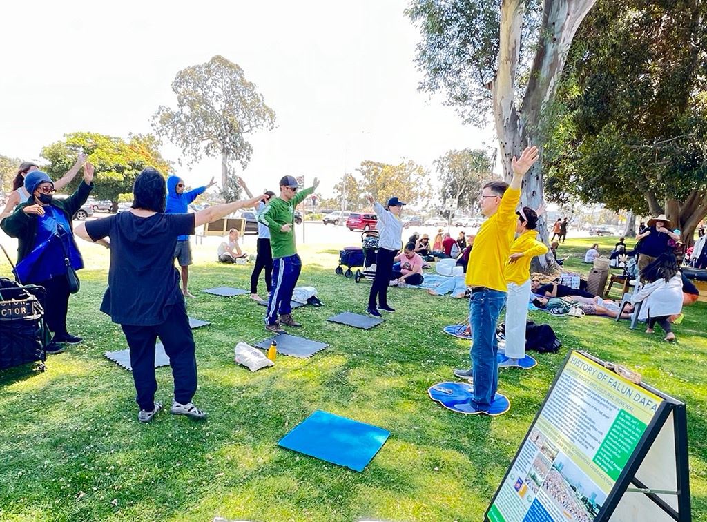 ![]() 图1~2:二零二四年四月二十一日,法轮功学员参加了加州圣地亚哥的年度地球日(San Diego Earth Day Fair)的庆祝活动,图为法轮功学员在教当地居民炼功。 |