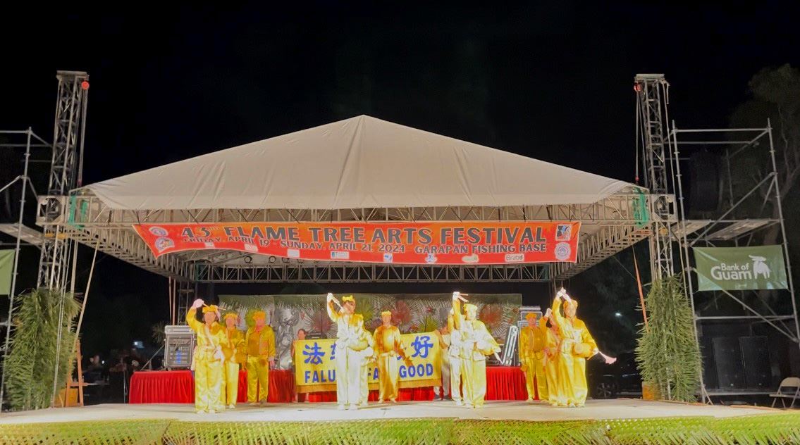 ![]() 图1:二零二四年四月十九日至二十一日,塞班岛第43届火树艺术节上,法轮功学员的腰鼓表演赢得观众喝彩与掌声。 |