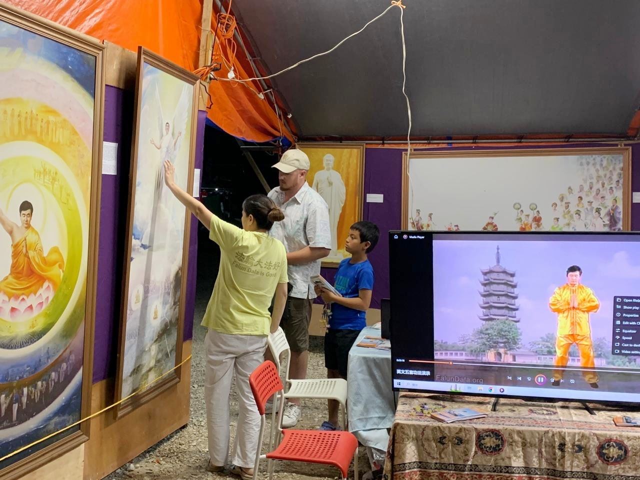 在活动中,法轮大法的展位很是醒目,首先映入眼帘的是展现法轮大法美好与真相的“真善忍美展”,充满了艺术气息和精神价值,有不少市民驻足欣赏,并拍照留念。这些作品是由修炼法轮功的艺术家创作的,画作不但体现了精湛的艺术水平,画家修炼的境界,让他们的作品更能触动人们的心灵,唤醒人们善良的本性和对生命归真的美好向往。