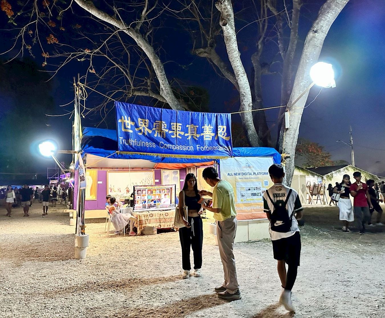 活动主持人特别向民众介绍法轮大法,他说:“法轮功来到塞班已逾二十六年的历史了,广受民众的喜爱。至今法轮大法已弘传世界一百多个国家和地区。法轮大法学员希望借助火树艺术节这个好日子里,让民众体验法轮大法的美好。”主持人说:“只有纯净的心灵和高尚的道德,才能带来健康的身体和美好的人生。让我们牢记法轮大法的真、善、忍。”