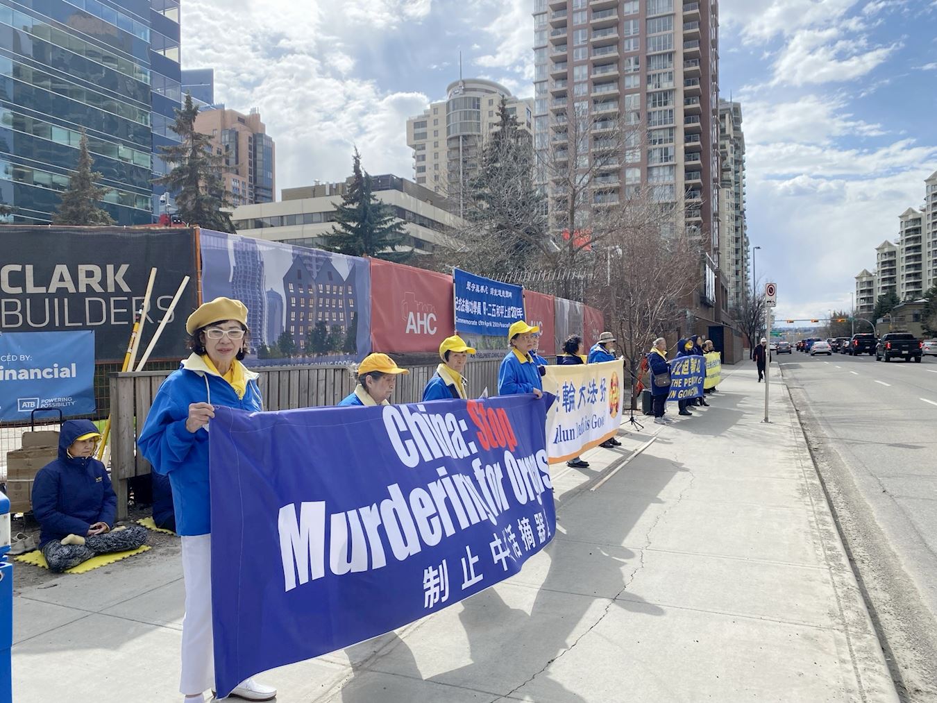 ![]() 图1~3:二零二四年四月二十二日,加拿大卡尔加里法轮功学员在中领馆前举行集会,纪念“四·二五”和平上访二十五周年。 |