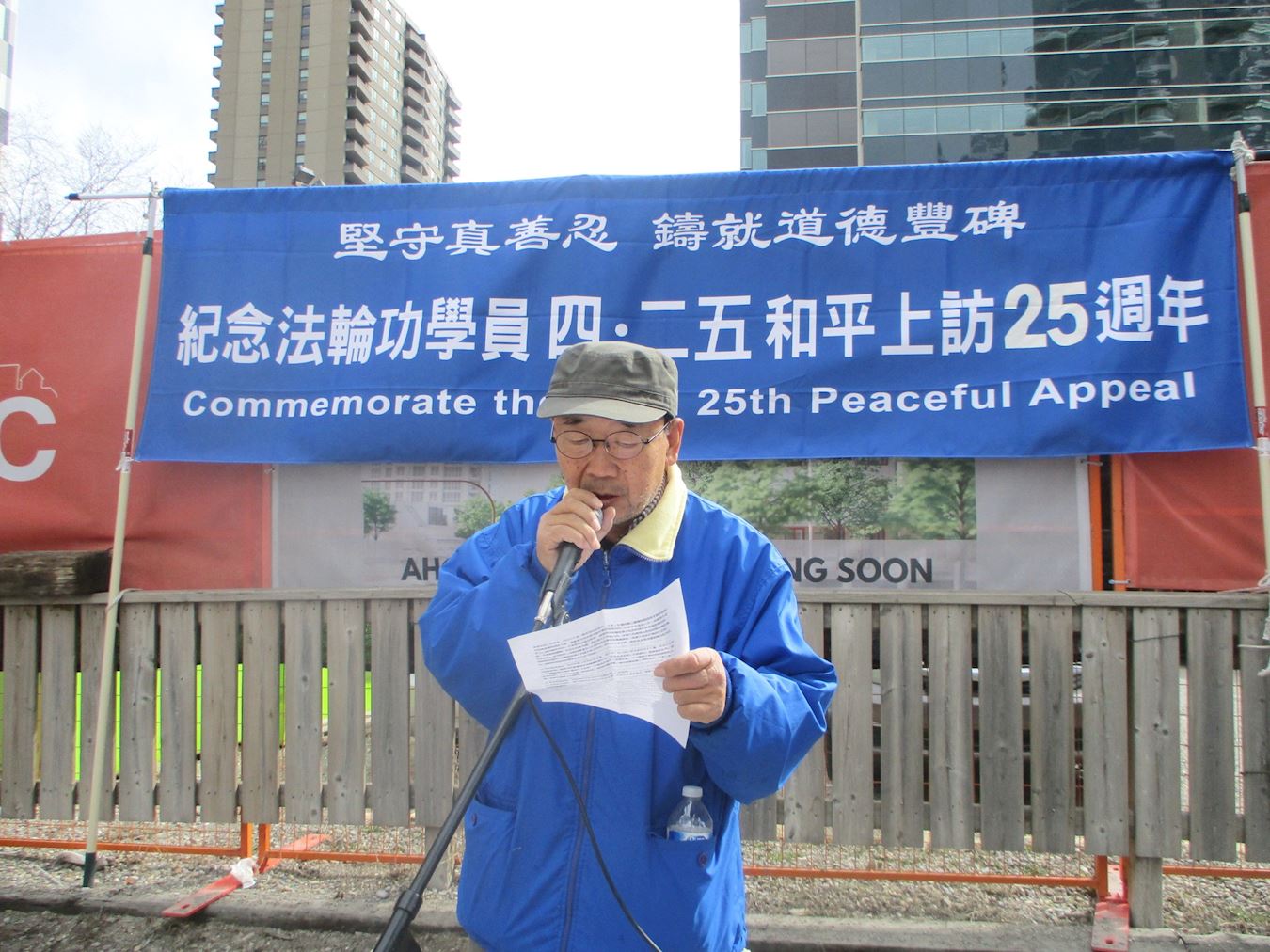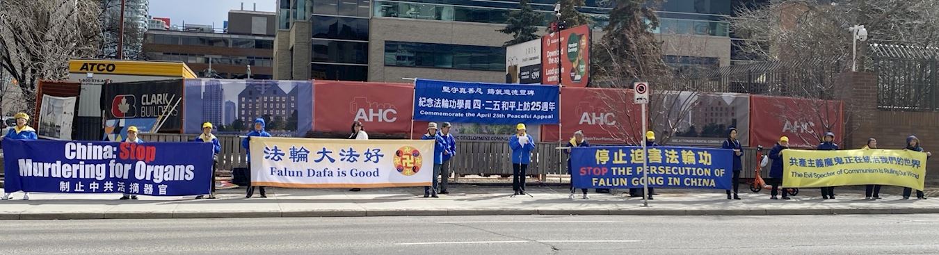 卡尔加里法轮大法学会发言人杨杰夫介绍,二十五年前的四月二十五日,万名法轮功学员从中国各地聚集在北京中南海附近的国务院信访办,就中共对法轮功学员的骚扰,要求保障宪法赋予的信仰权利和公正合法的修炼环境,并请求当局释放在天津被抓捕的四十五名法轮功学员。