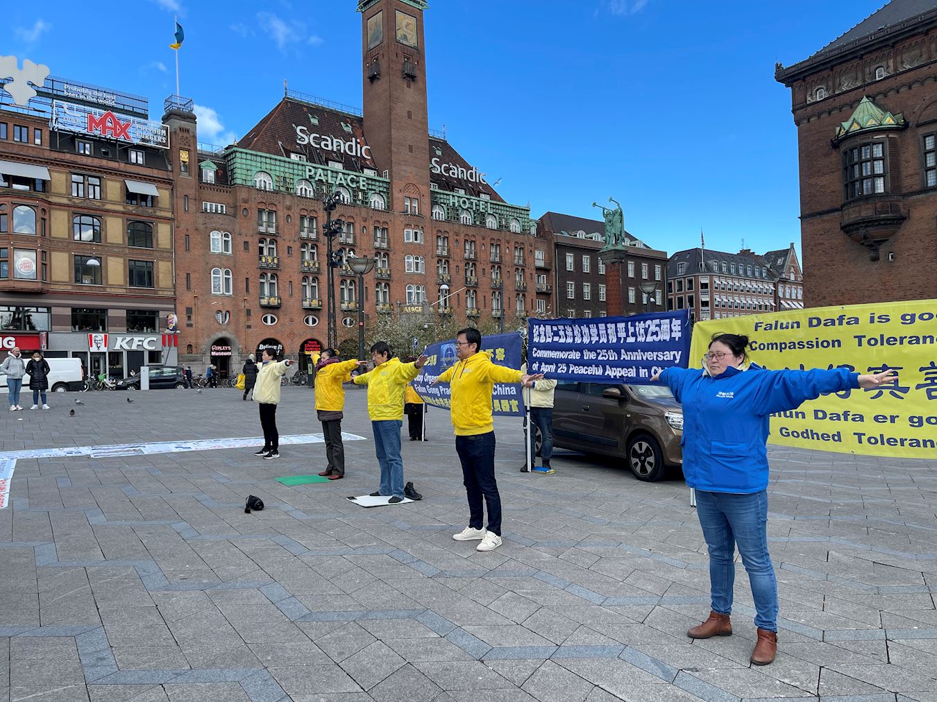 在活动现场法轮功学员举起了“法轮大法好 真善忍好”,“立即制止中共活摘法轮功学员器官”,“纪念四·二五法轮功学员和平上访二十五周年”的横幅,在广场上打开了很多真相横幅。活动现场的一侧有停止活摘器官的图片,旁边是酷刑模拟展示;活动的另一侧是学员们展示五套法轮功功法,优美祥和的功法与在中国的迫害画面形成了鲜明的对照。使不少路人驻足观看,关注法轮功学员在中国被迫害的情况,以及法轮功学员所传递的真善忍理念。