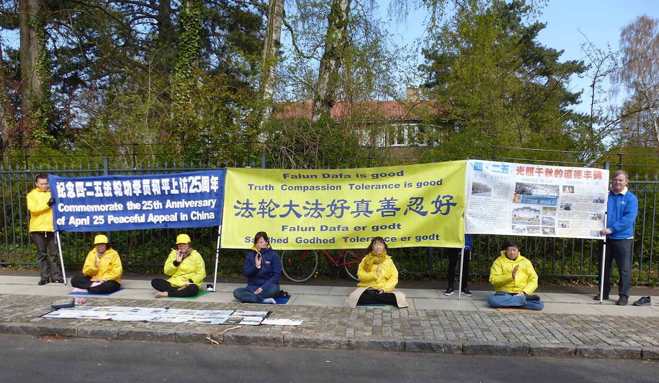 ![]() 图4:丹麦法轮功学员在中共驻丹麦大使馆前,抗议中共迫害法轮功。 |