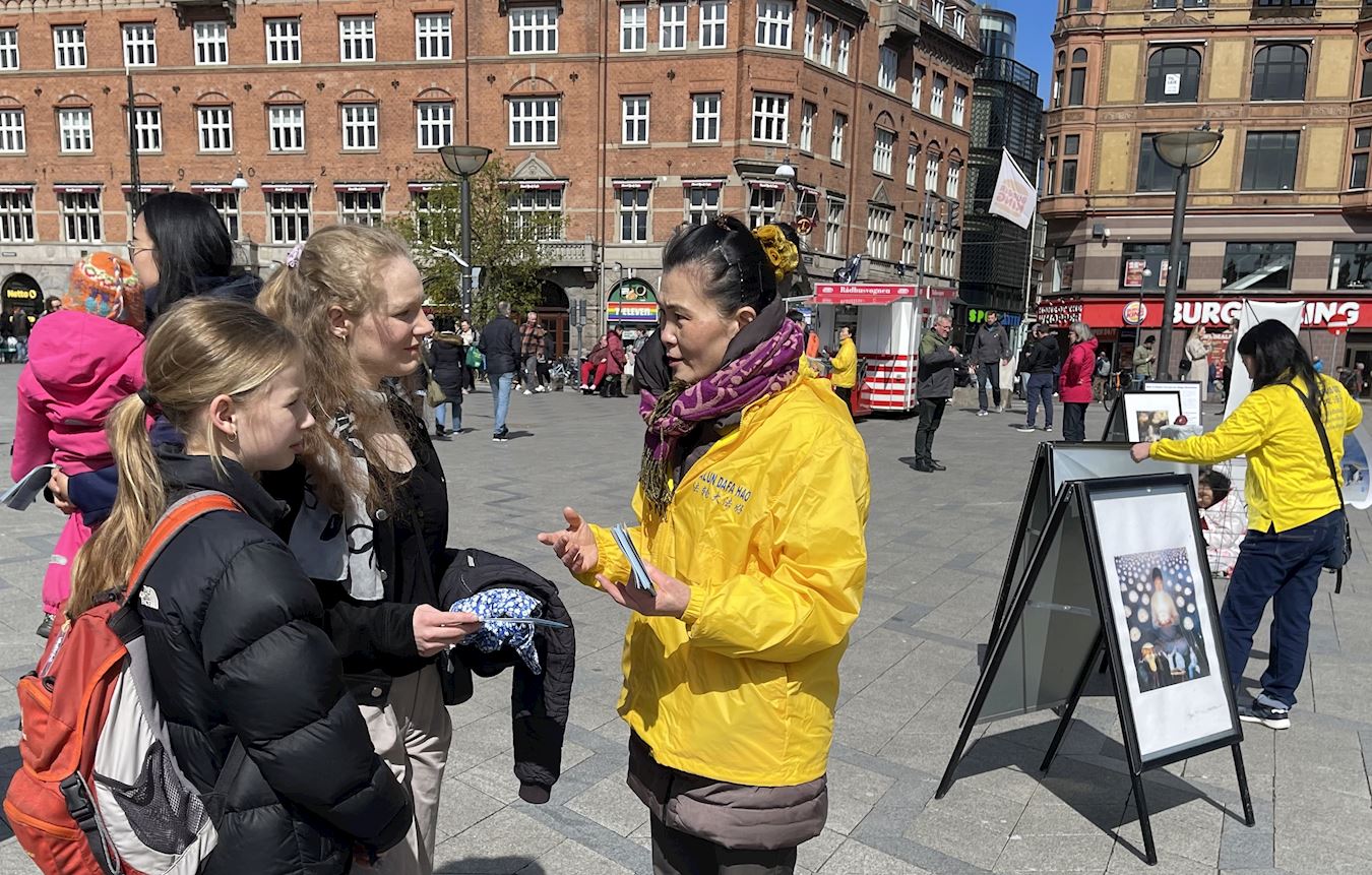 这位丹麦女士一听法轮功被迫害真相,就联系到二战时的纳粹。她一边听一边流眼泪,说这是系统的在破坏文明,非常邪恶。她离开的时候还一再拥抱说:“一定要继续告诉人们这些,制止邪恶。”