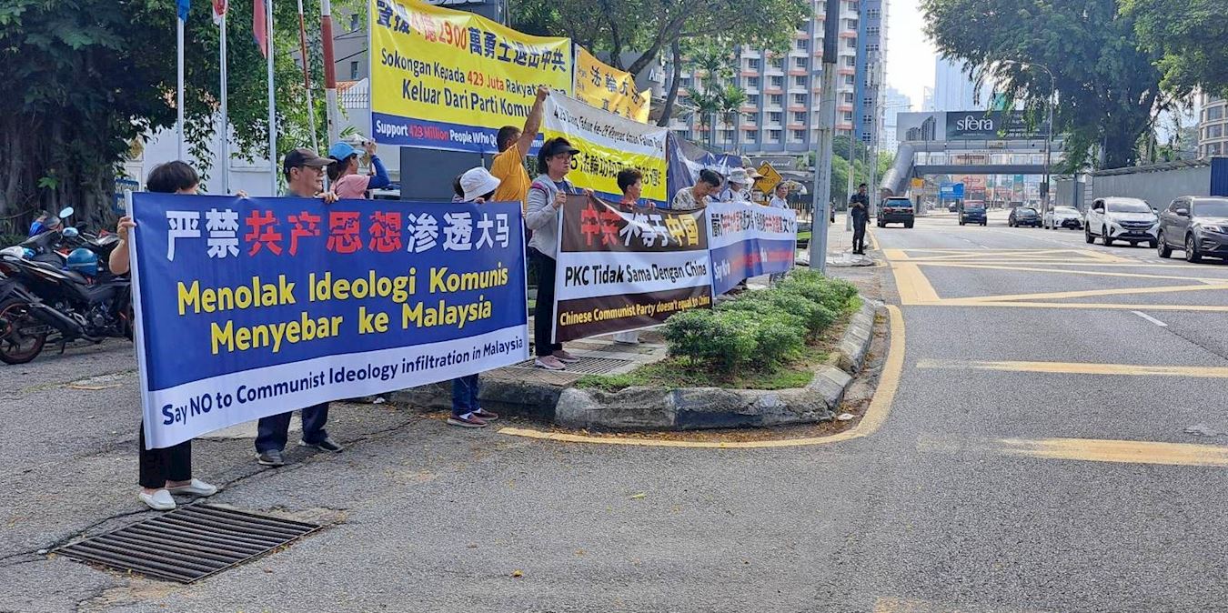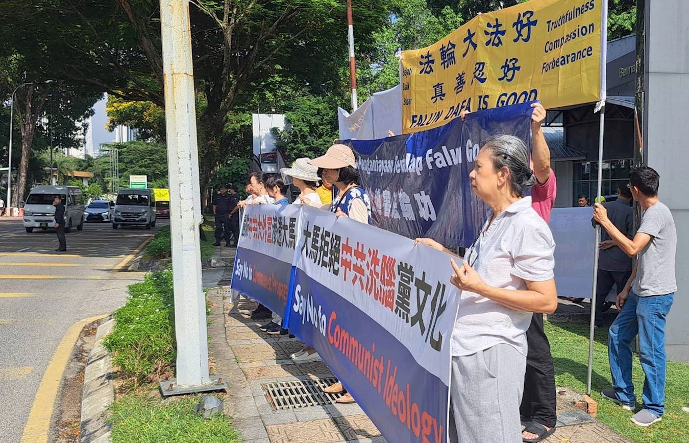 在集会上,法轮功学员举起多条横幅,包括“四·二五法轮功和平上访二十五周年”、“法轮大法好,真善忍好”、“声援4亿2900万勇士退出中共”、“严禁共产思想渗透大马”、“中共不等于中国”、“大马拒绝中共洗脑党文化”等横幅,引起了许多途经此地的人士关注。