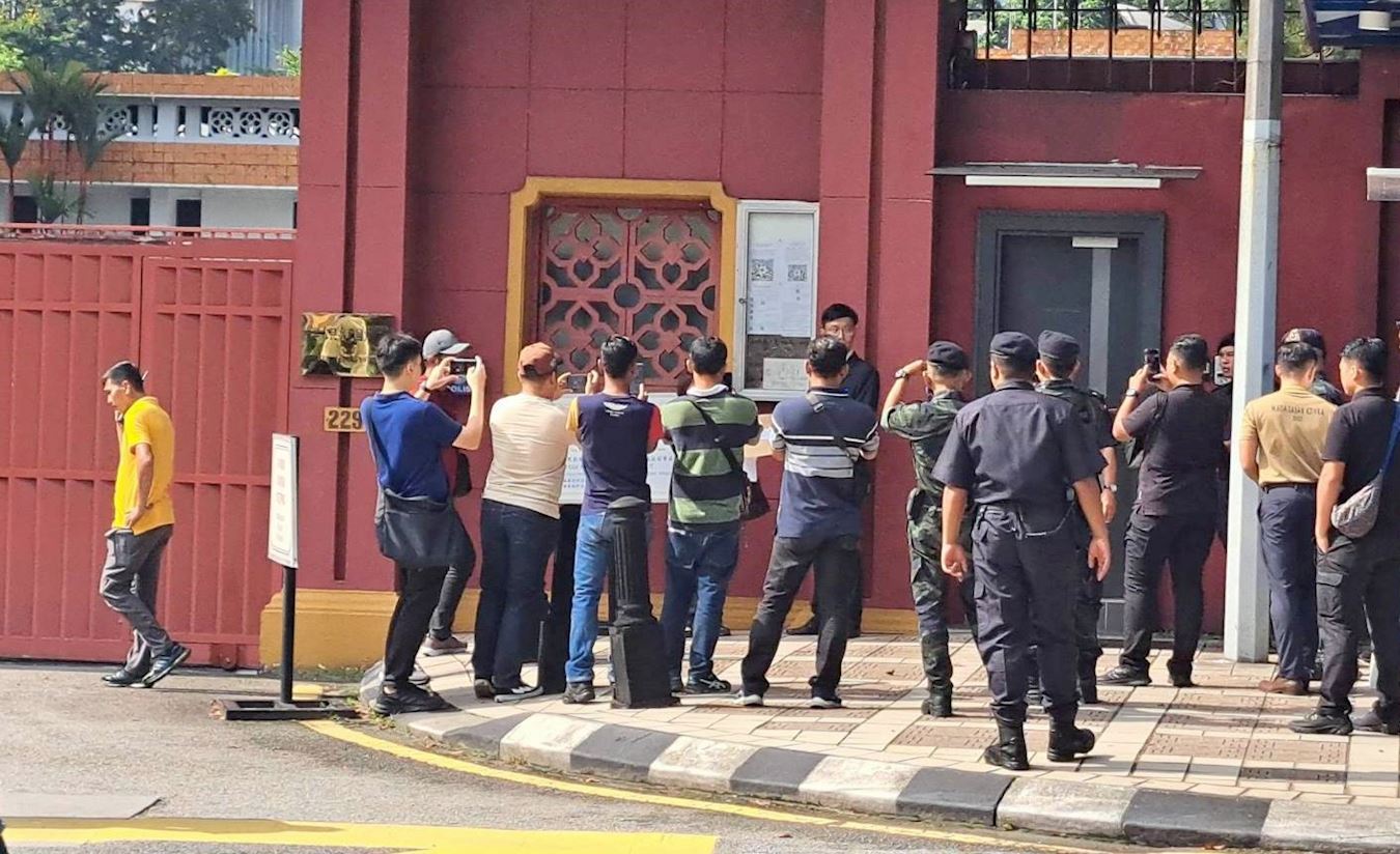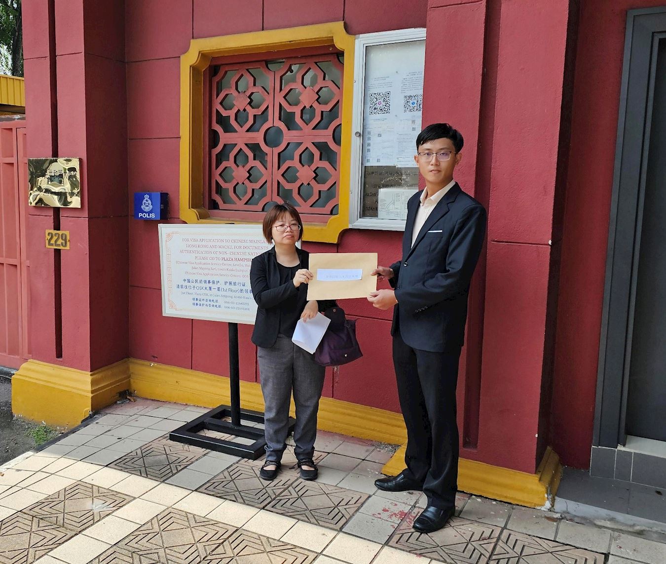 ![]() 图4:法轮功学员代表到中共驻马大使馆递交抗议信。 |