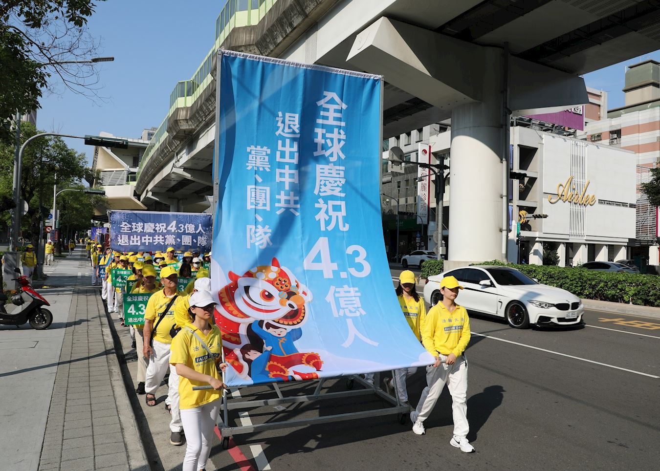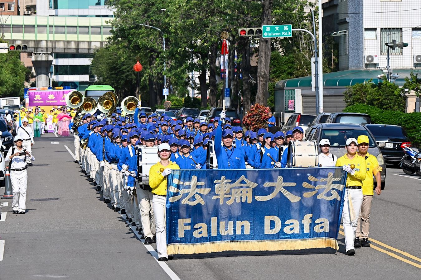 下午三点左右,由天国乐团领队的游行队伍,分成“大法洪传”、“千古奇冤”、“三:退.大潮”、“停止迫害”等四大方阵,从惠来森林公园出发,经过台中市政府、文心路以及台湾大道等繁华街区。向市民展现法轮大法的美好,同时揭露中共迫害法轮功的真实情况,游行队伍和集会吸引了各界人士的关注。