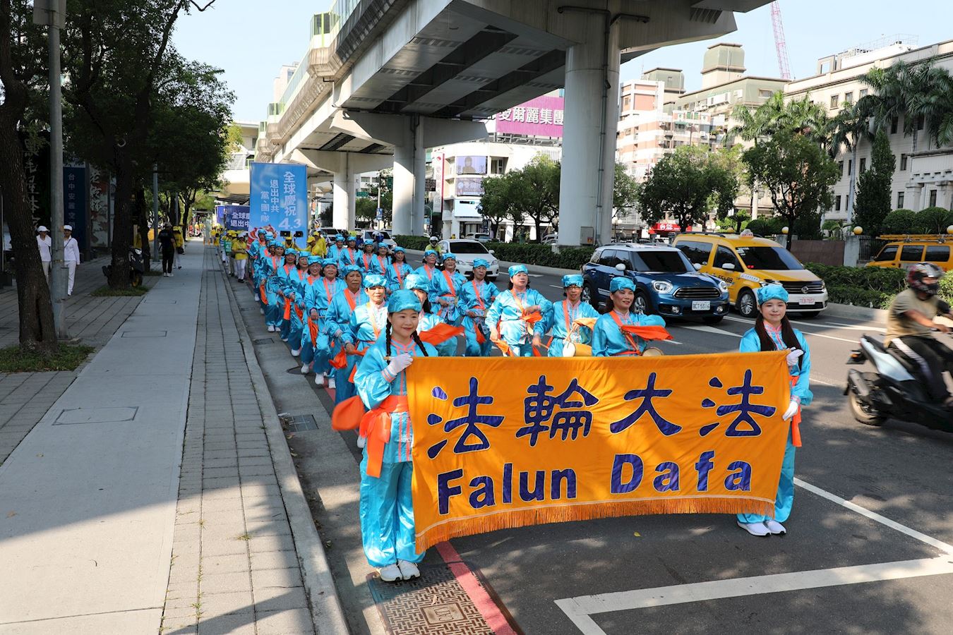 游行队伍由天国乐团打头阵,一出发就吸引一对长年旅美短暂返乡的母女目光,她们拿起手机拍照留念。母亲欧女士说,在美国加州,知道法轮功被中共迫害的状况,也知道中共活摘法轮功学员器官的邪恶。这是她第一次看到法轮功这样的游行,对法轮功学员二十五年来和平反迫害表示敬佩与支持,认为中共的本质就是邪恶的,是一个不可取的政党,希望能借此让更多人知道真相,汇聚更多正义之声。