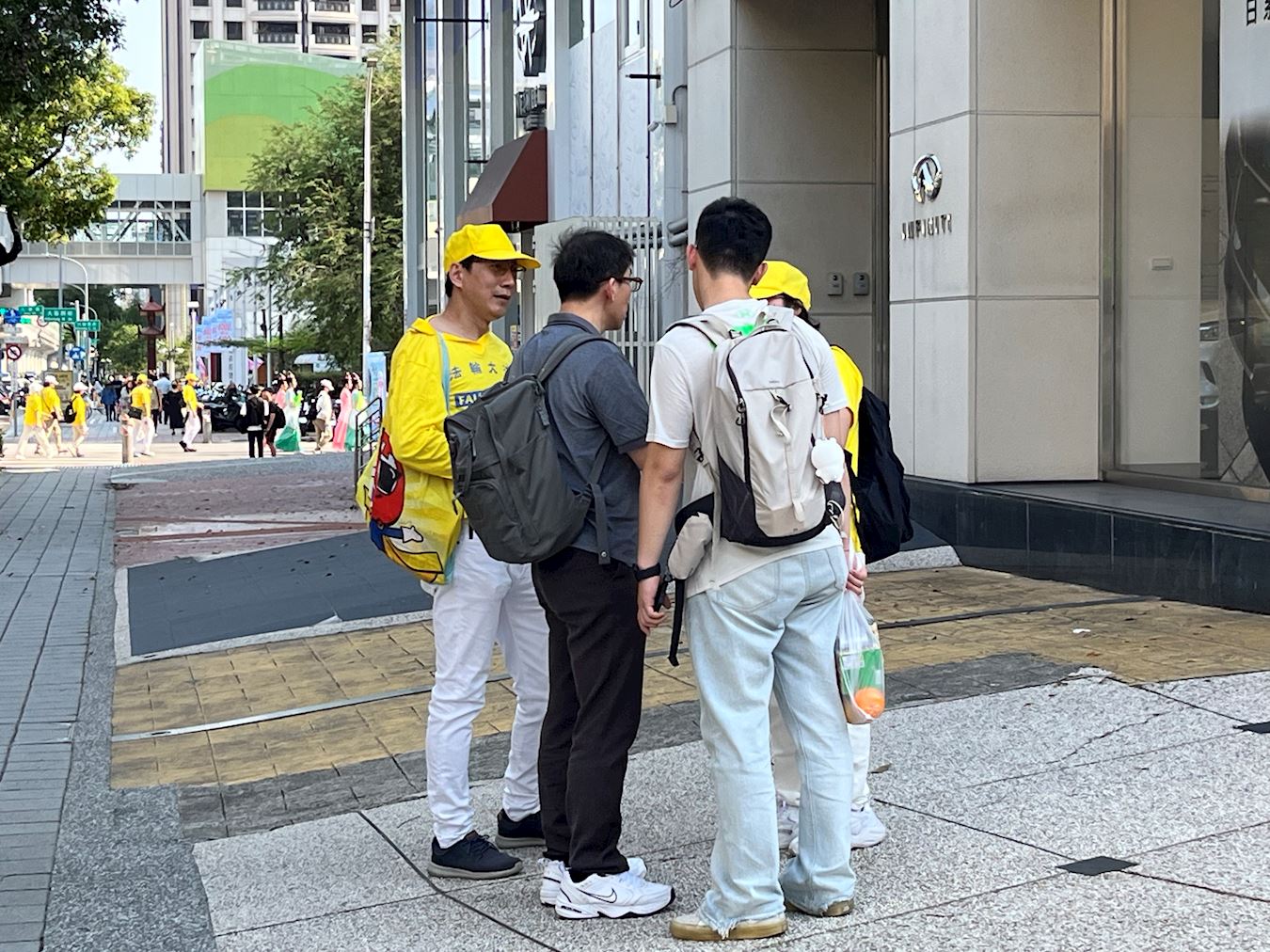 ![]() 图12~13:人们接过学员传递的真相资料认真阅读,有的主动与学员交谈,了解更多关于法轮功的讯息。 |