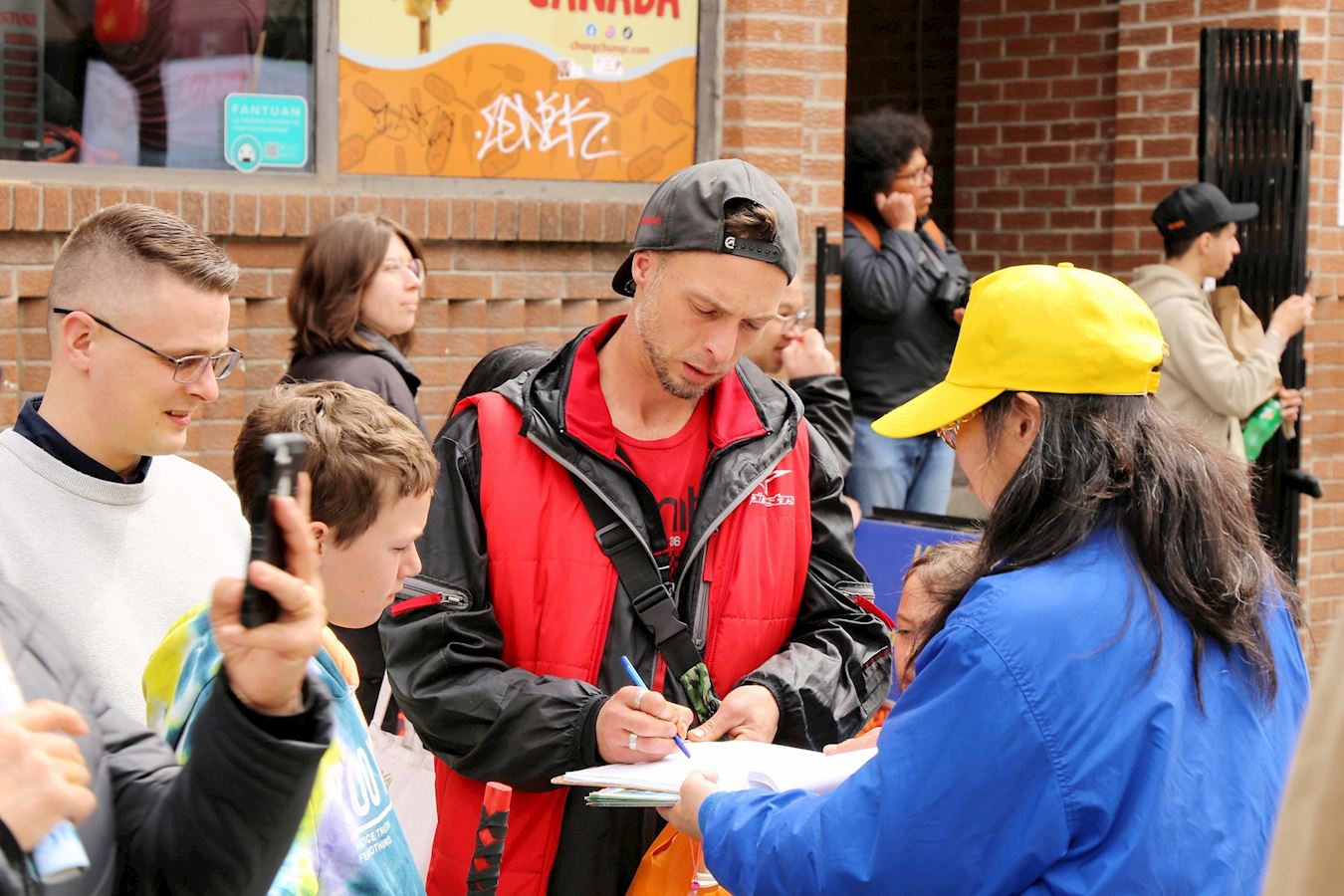 电视演员格言(Maxim)与法轮功学员交谈后说:“我被他们的勇气所吸引。我们知道中共的迫害长臂延长到海外,法轮功(敢于揭露中共)的巨大勇气令我印象深刻。”