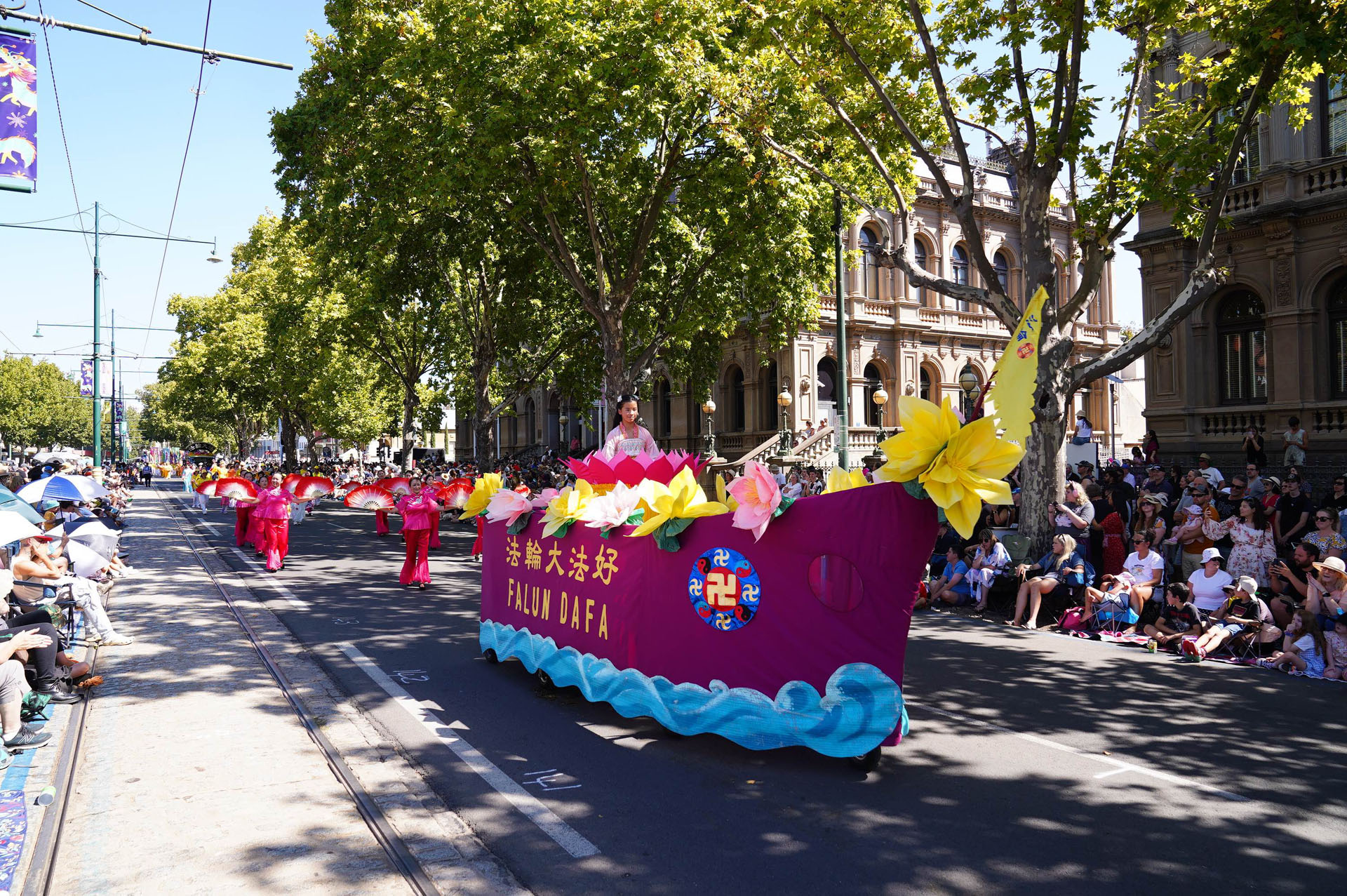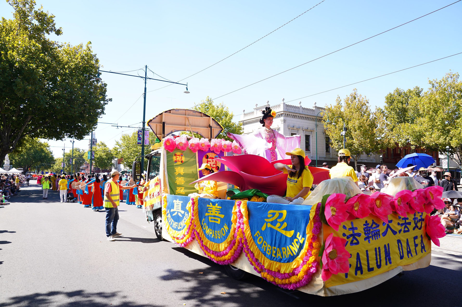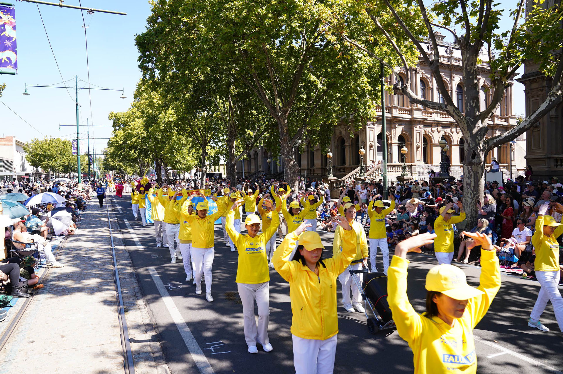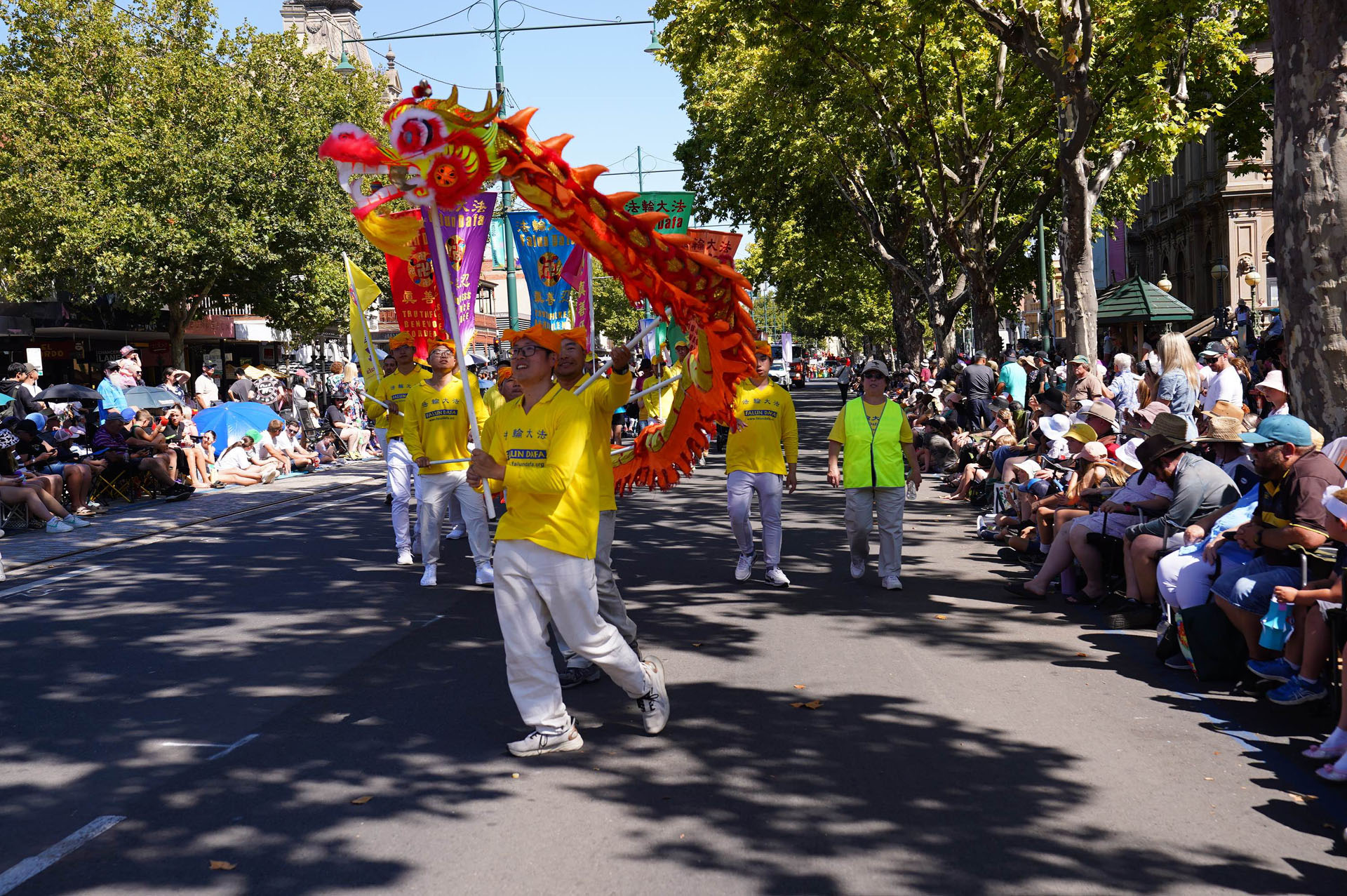 游行于中午十二点三十分正式开始,众多乐队、文化艺术团体及俱乐部纷纷登场,展现着澳洲多元的文化特色与风貌。其中法轮功团体的表演再次成为游行队伍中一道亮丽的风景线。