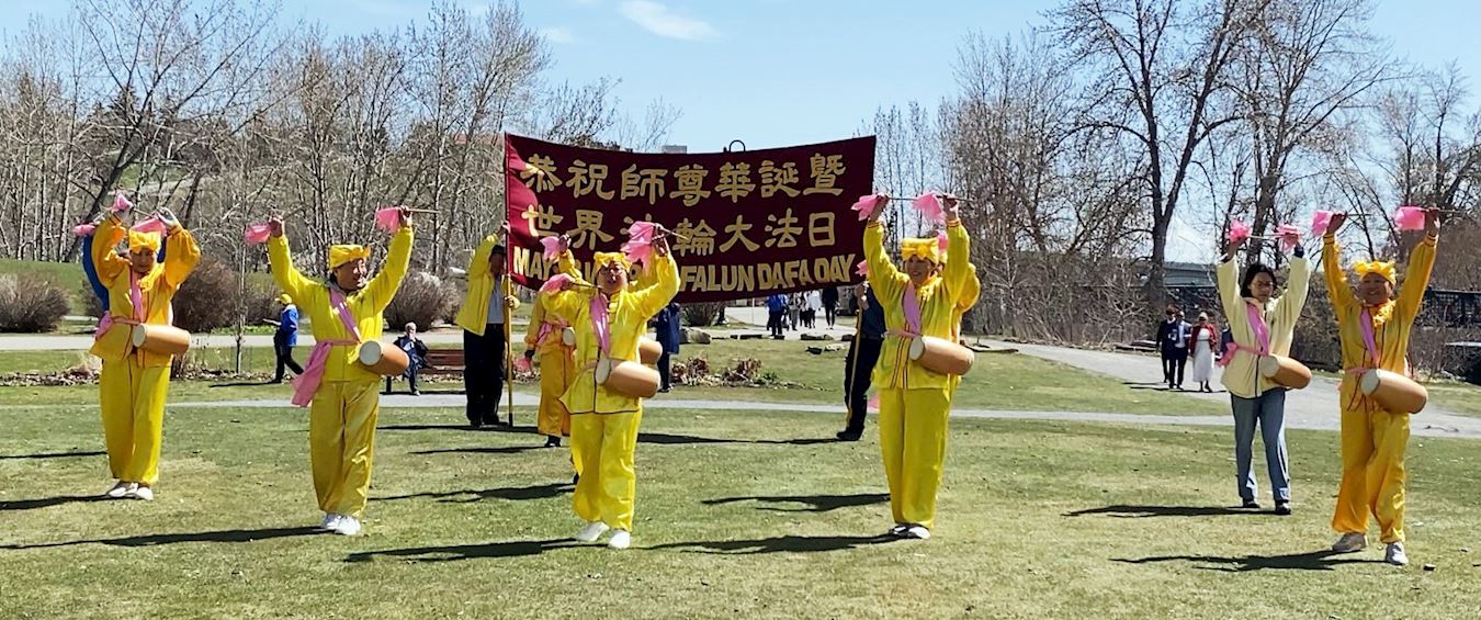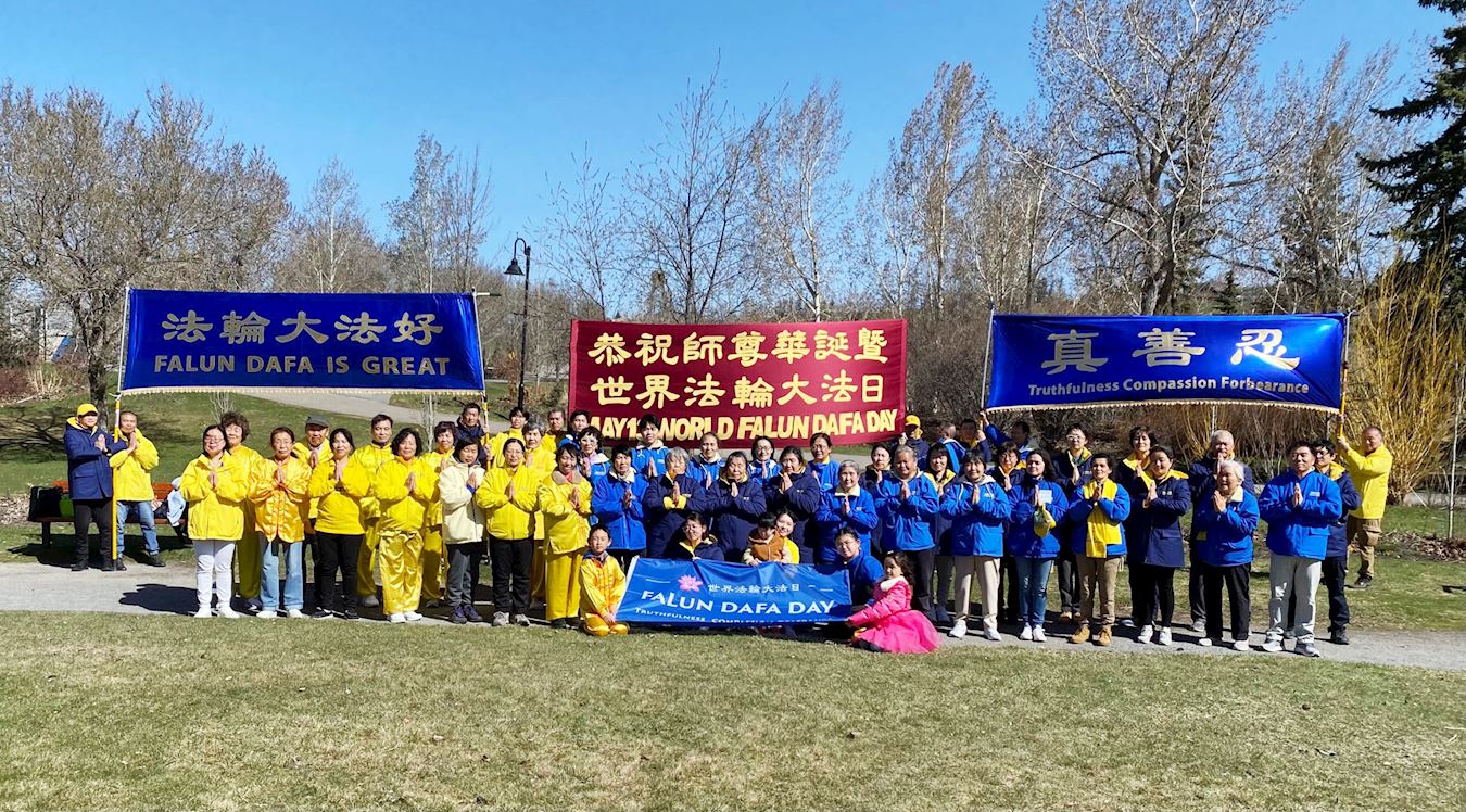 ![]() 图1:加拿大卡尔加里法轮功学员恭祝师尊华诞暨世界法轮大法日。 |