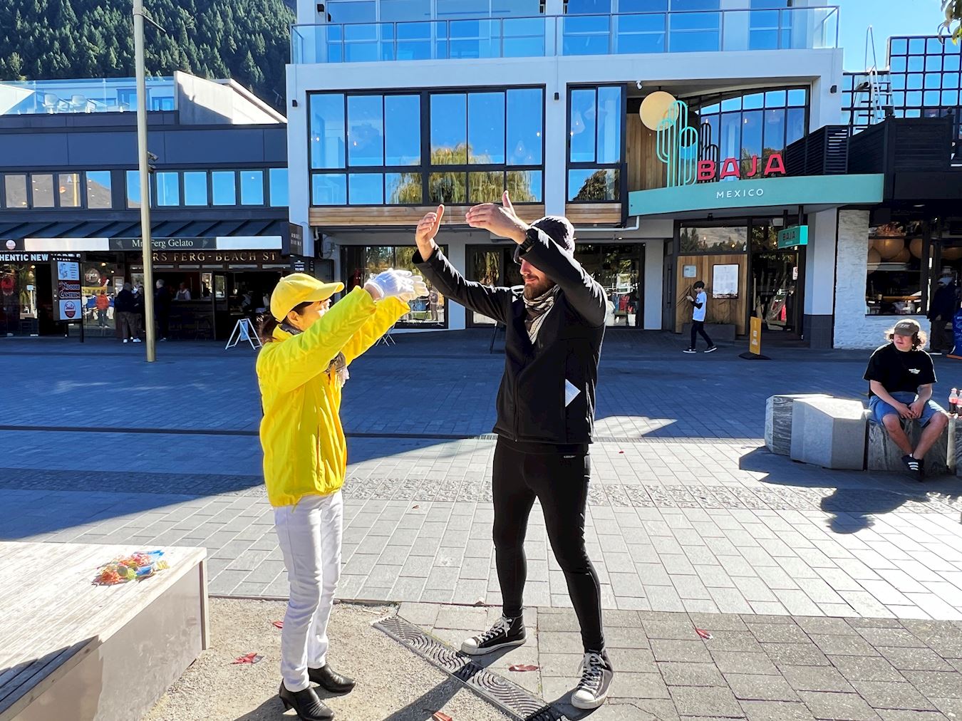 来自基督城的唐姆·恩肖(Dom Earnshaw)在背包旅行的途中,恰巧碰到法轮功学员正在举行活动,他很感兴趣,并在现场学炼了功法,感触颇深。