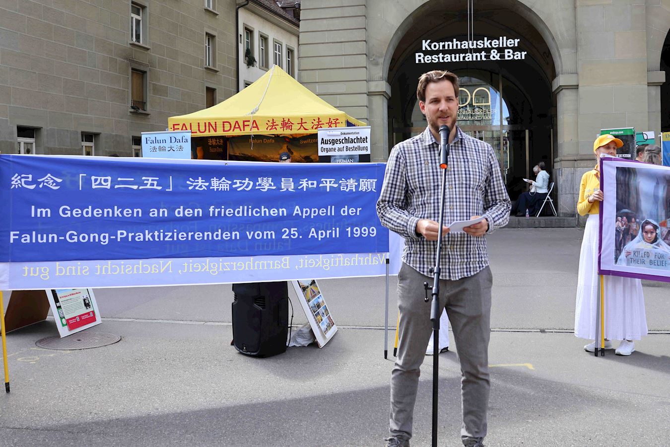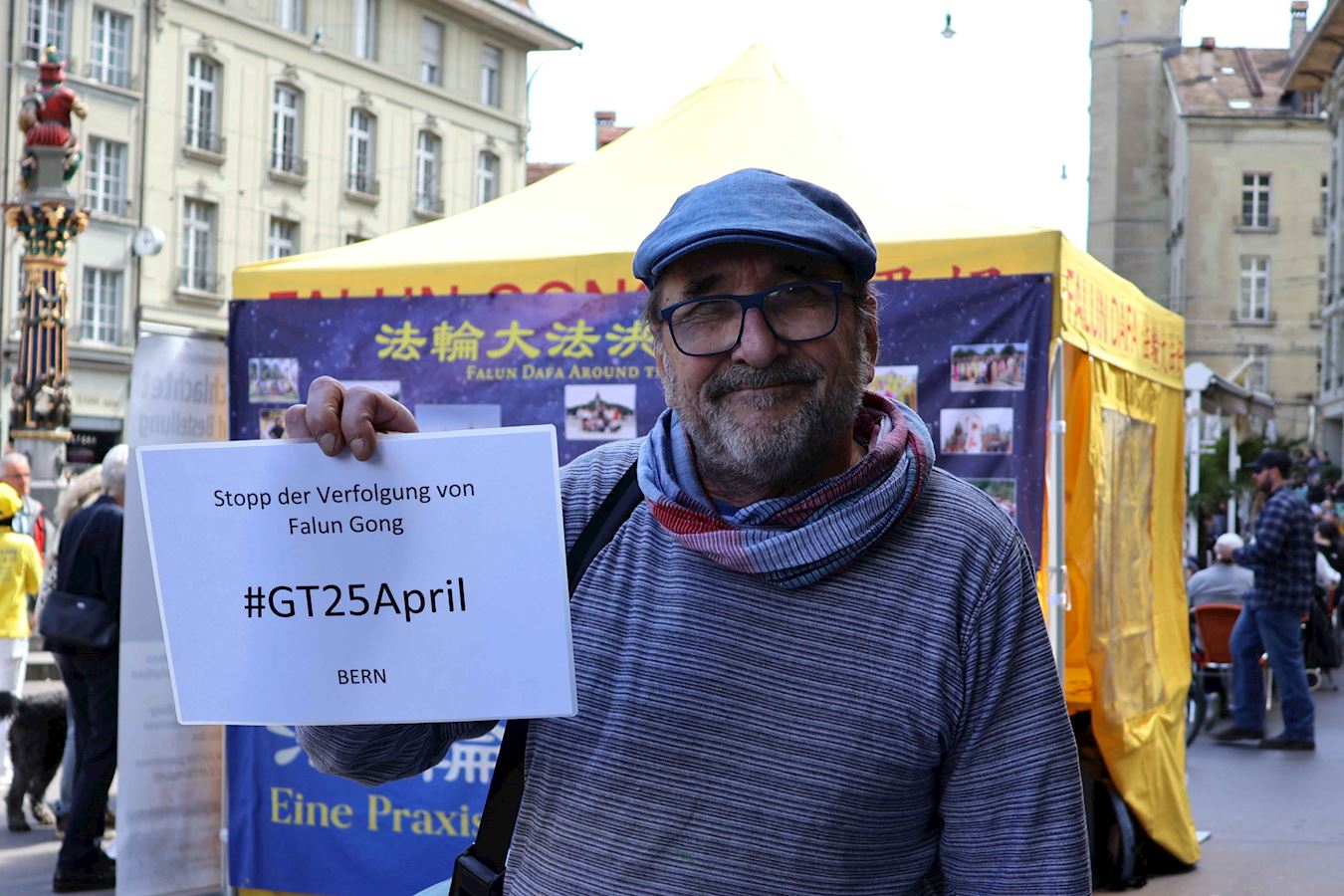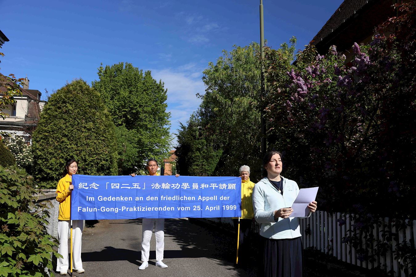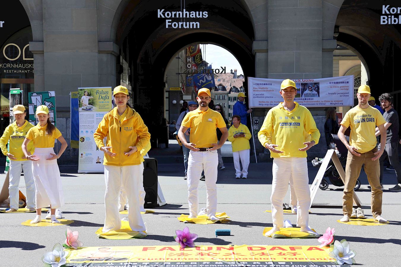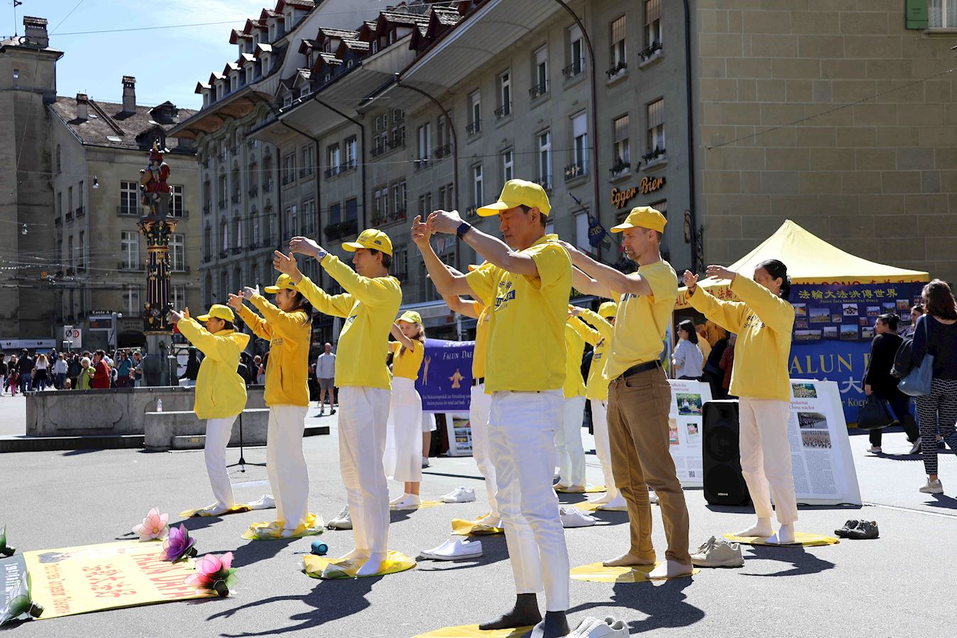 ![]() 图1~3:法轮功学员在瑞士首都伯尔尼的控豪斯广场上集会,纪念“四·二五”和平上访25周年,并演示功法。 |