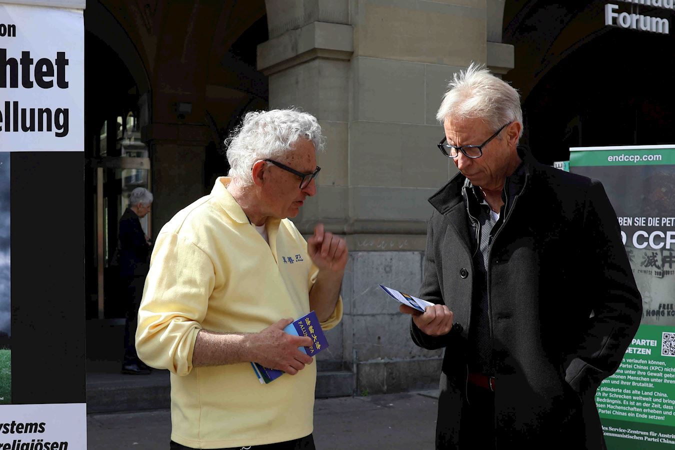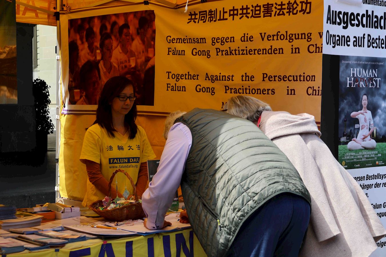 到瑞士来看孙儿的赫尔特女士在签名后说:“我希望他们(法轮功学员)能自由地生活,不再被迫害,这很重要。这是我们的人权,正如我希望我的孩子及孙辈们也能如此生活。”通过签名:“我希望能有尽可能多的人伸出援手。”