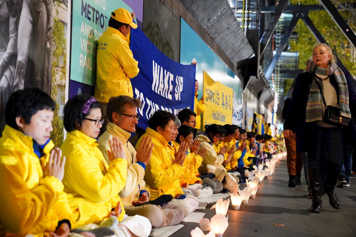 四月二十五日当晚,墨尔本部分法轮功学员还在市中心步行街举行了集会,并以烛光悼念二十五年来被中共迫害致死的无辜法轮功学员。