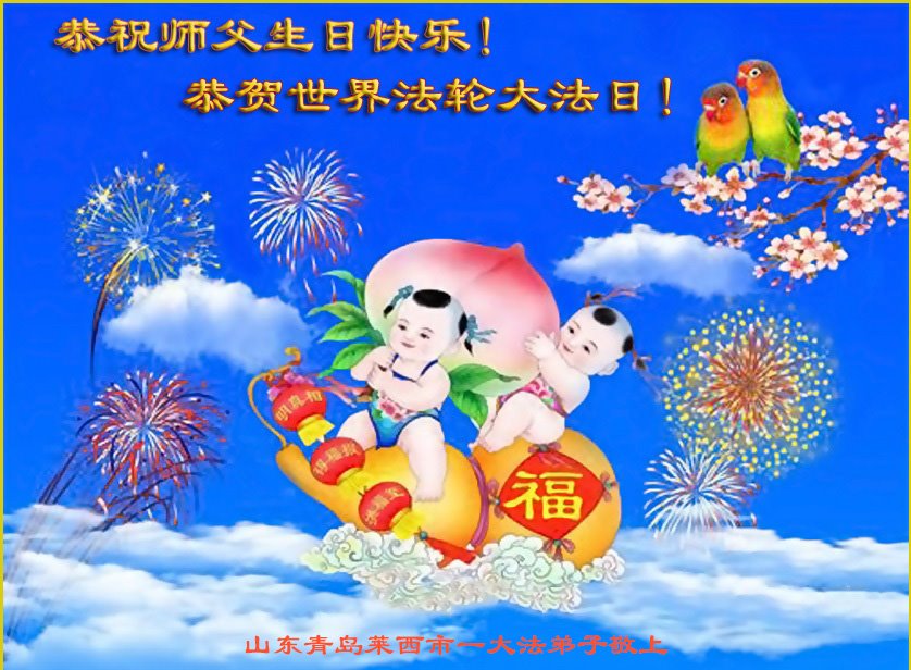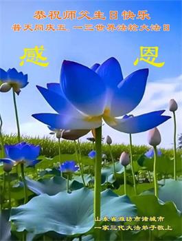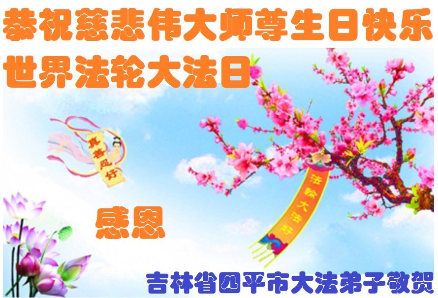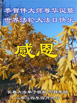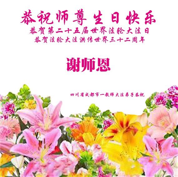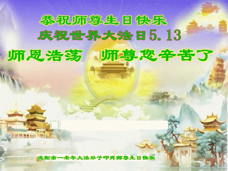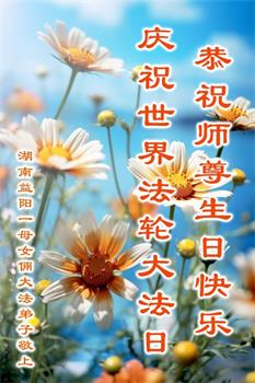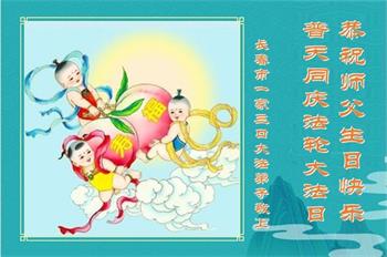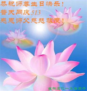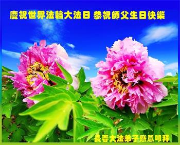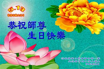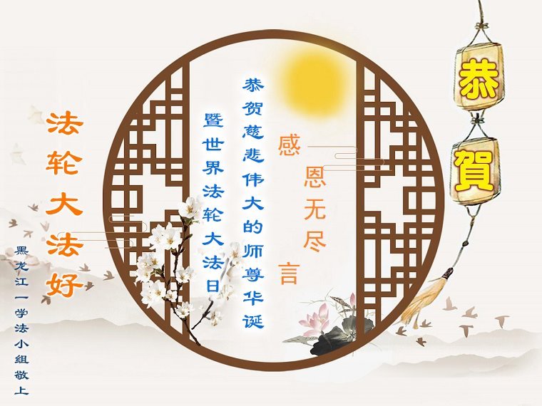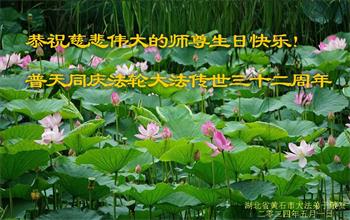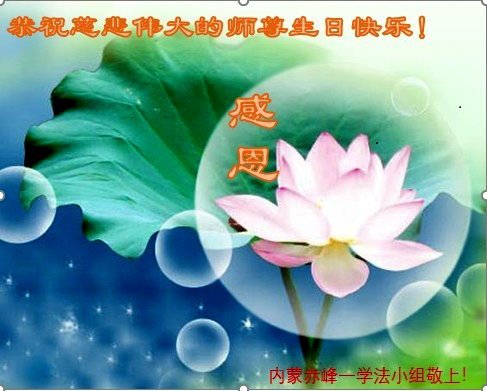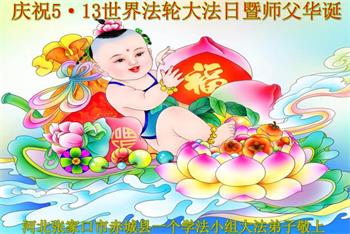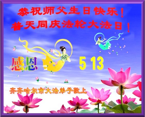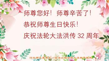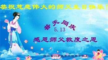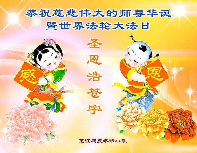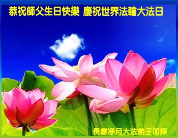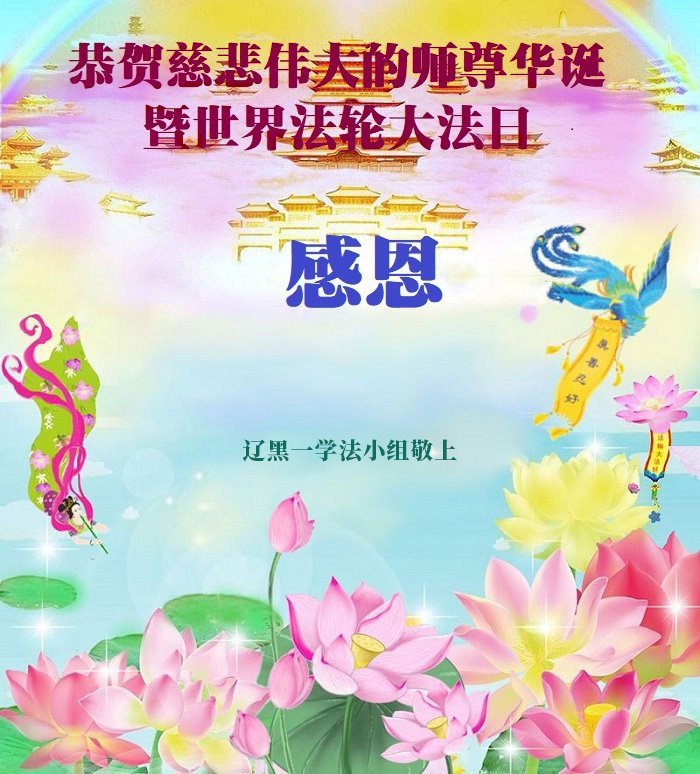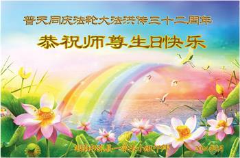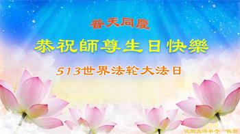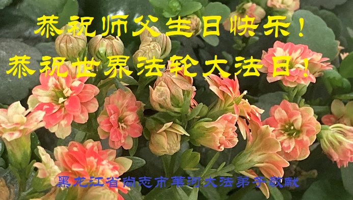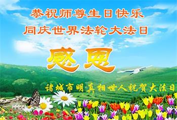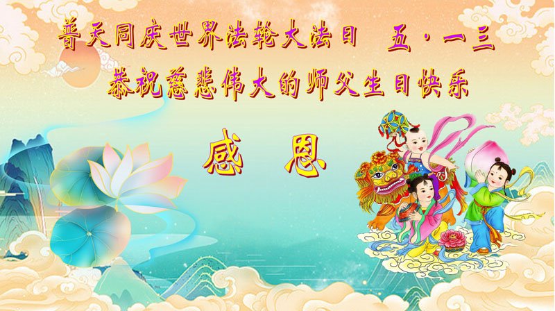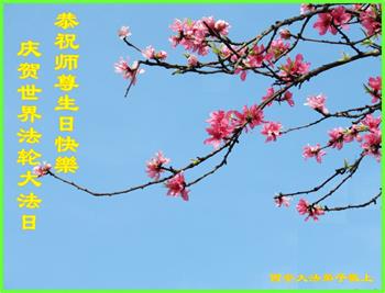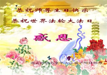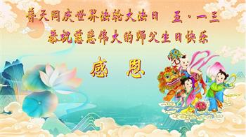 在此我深怀感恩之心,恭贺世界法轮大法日!恭祝大法师父生日快乐!