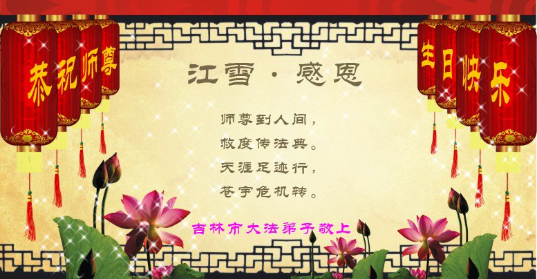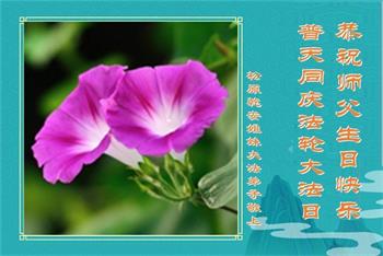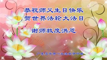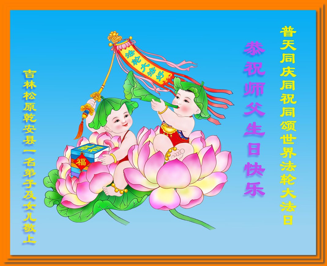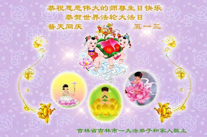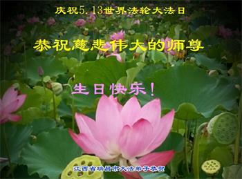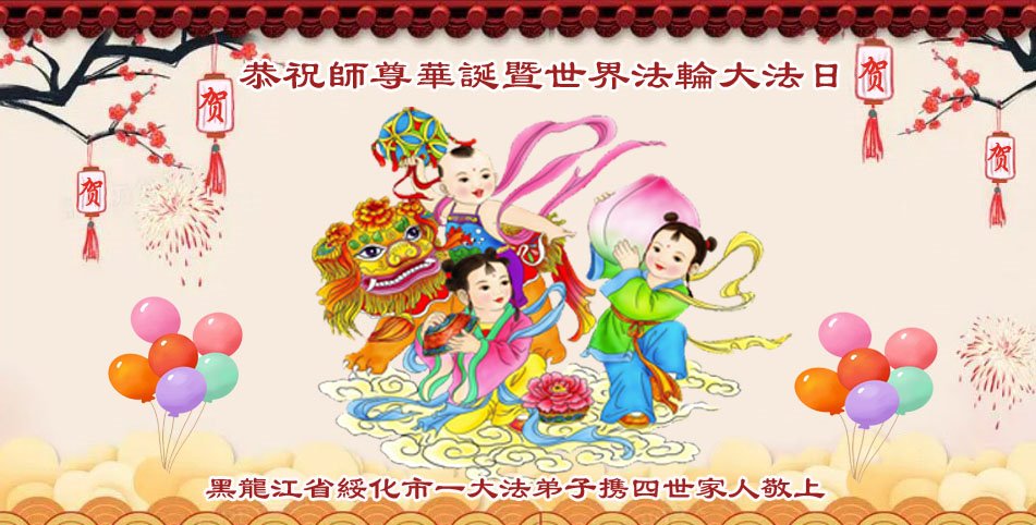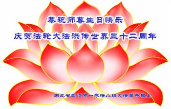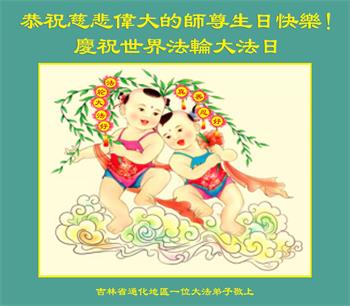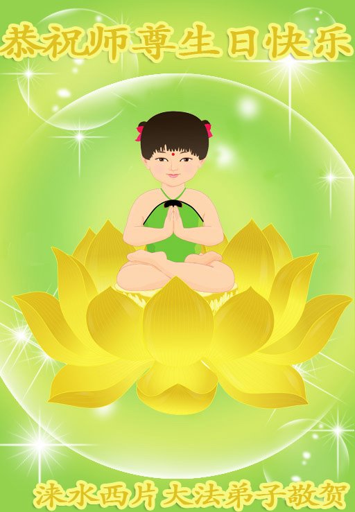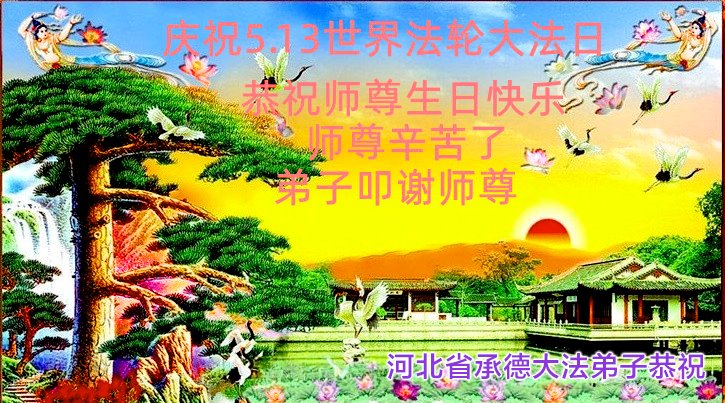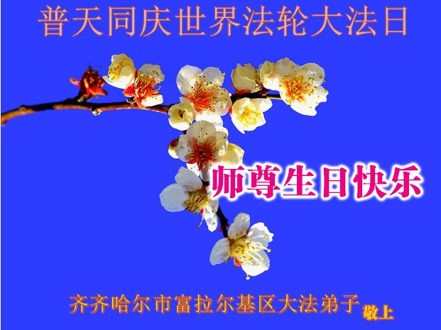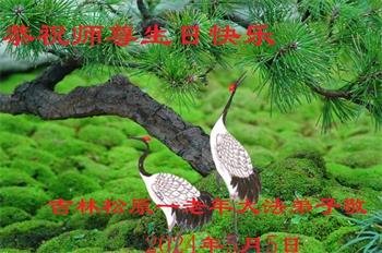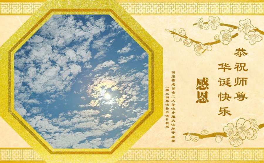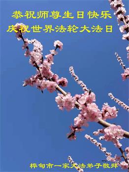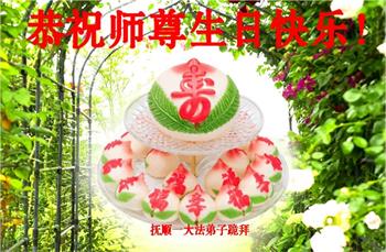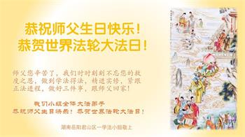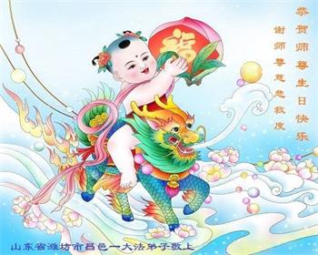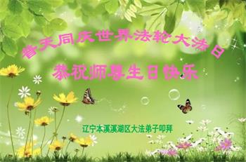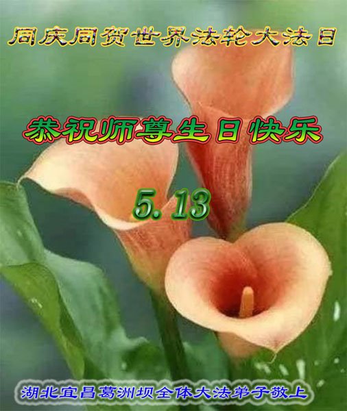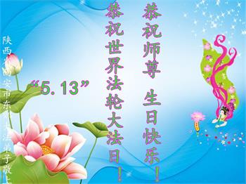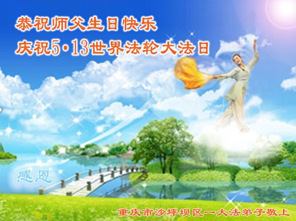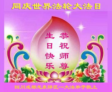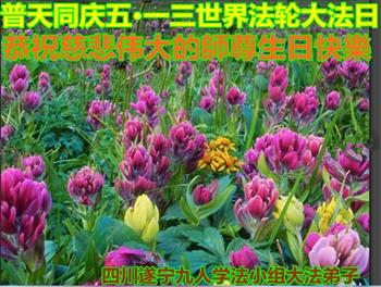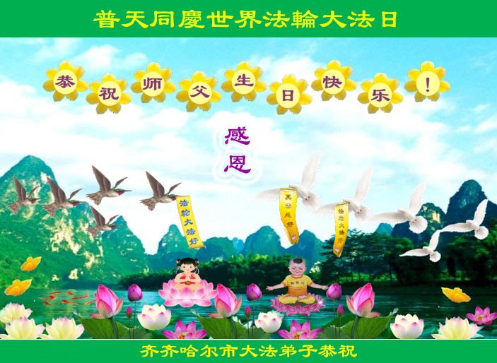 在此我深怀感恩之心,恭贺世界法轮大法日!恭祝大法师父生日快乐!