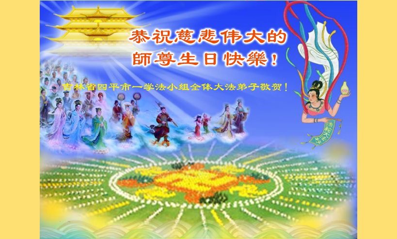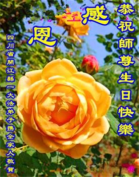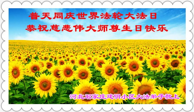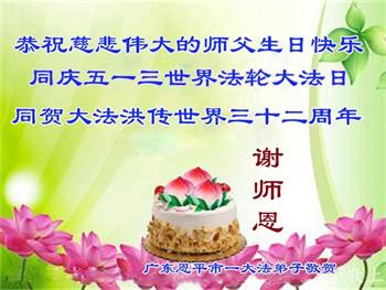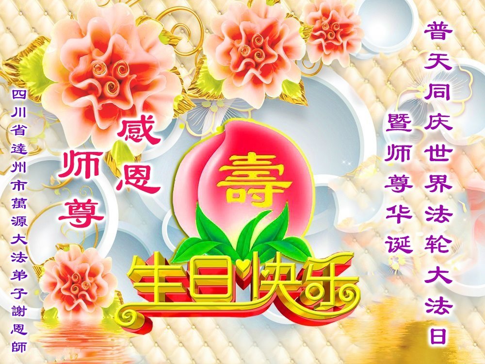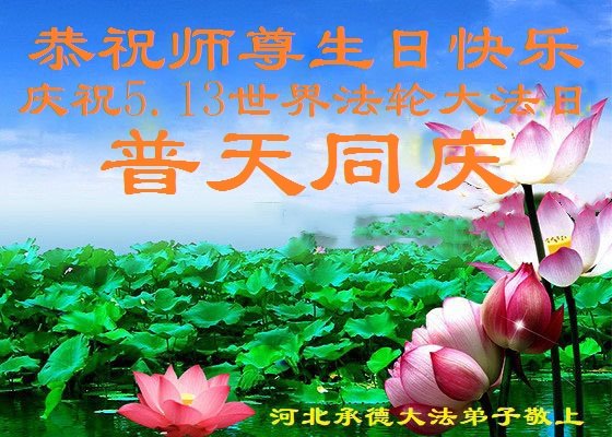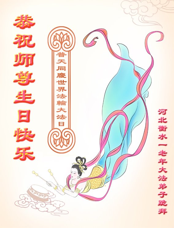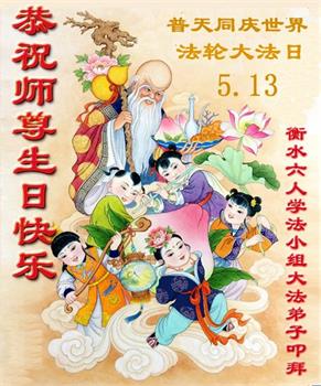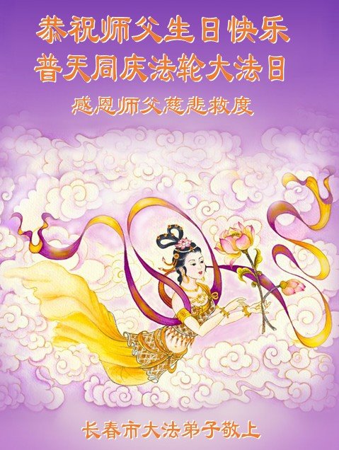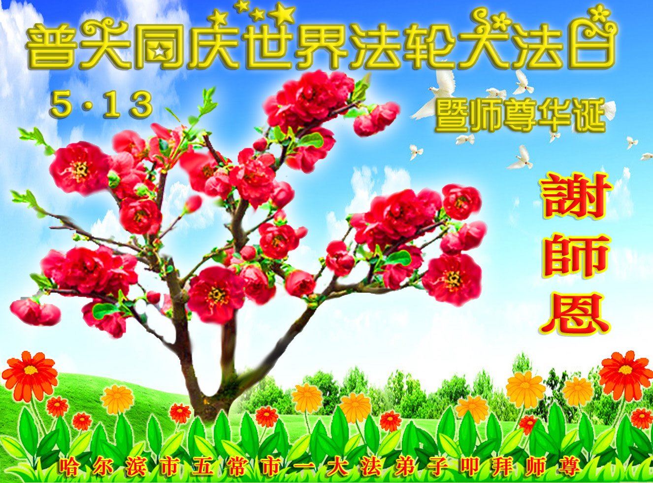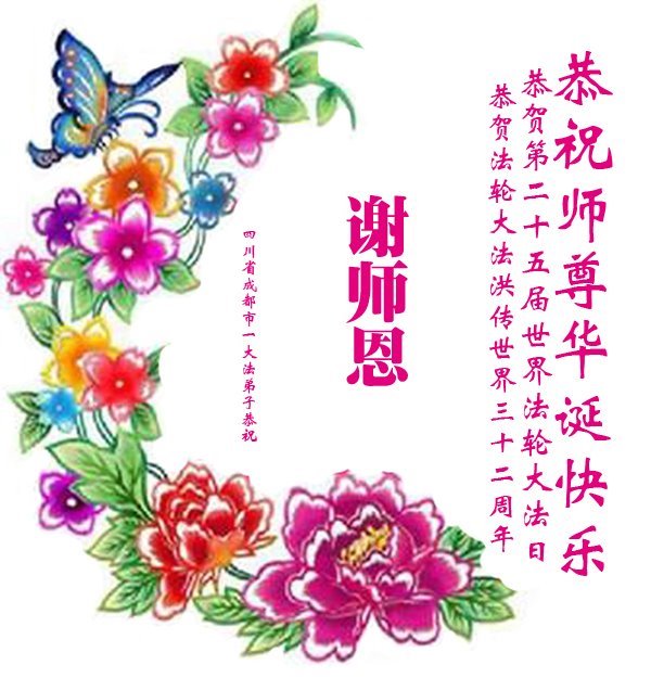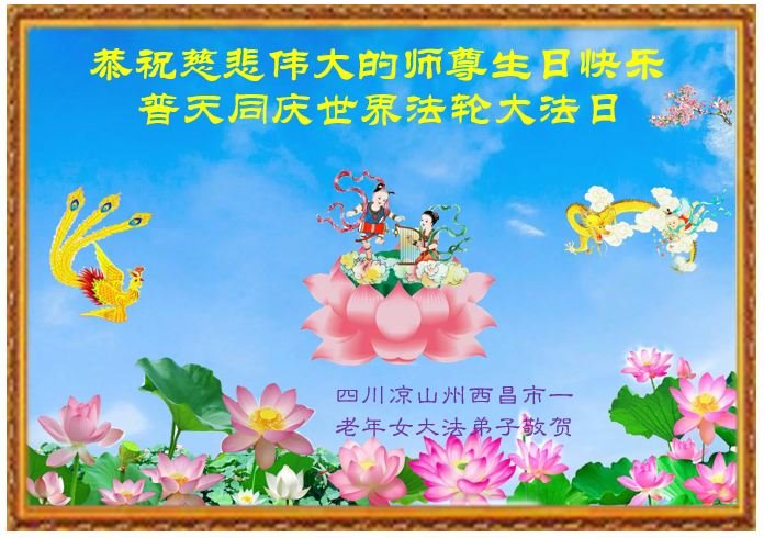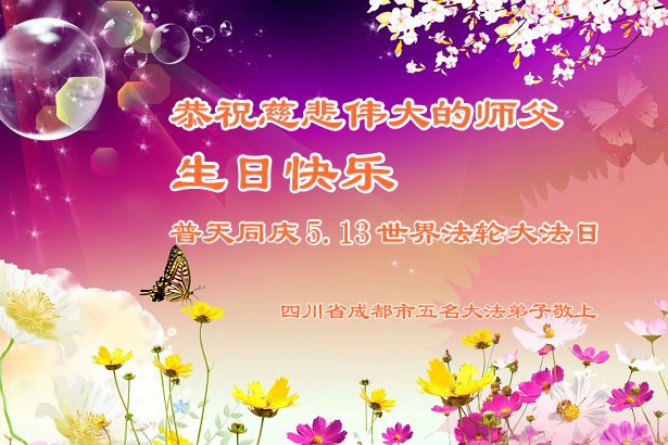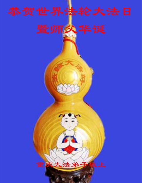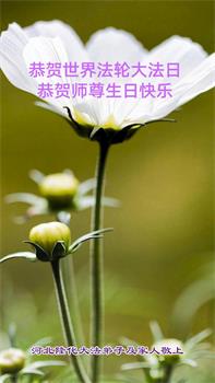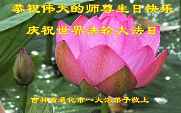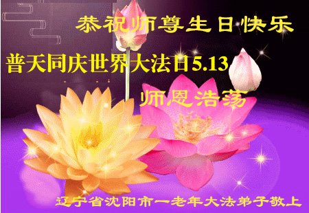 在此我深怀感恩之心,恭贺世界法轮大法日!恭祝大法师父生日快乐!