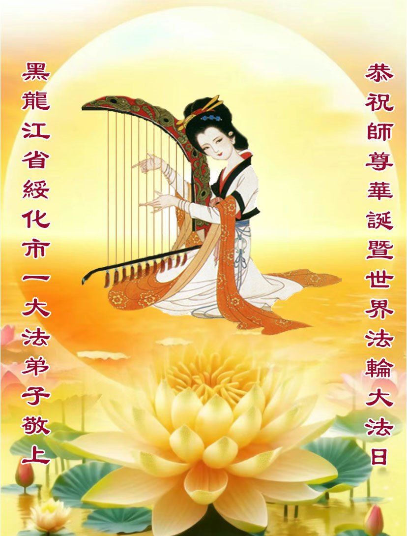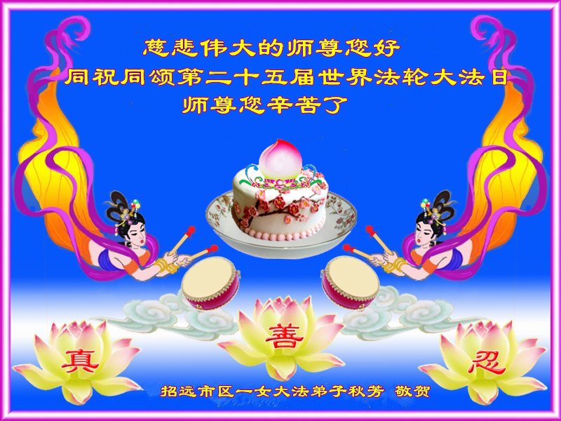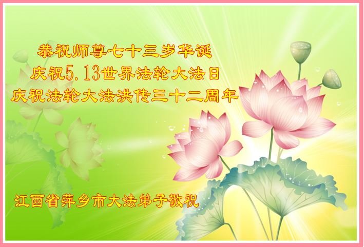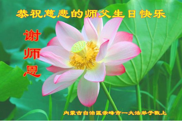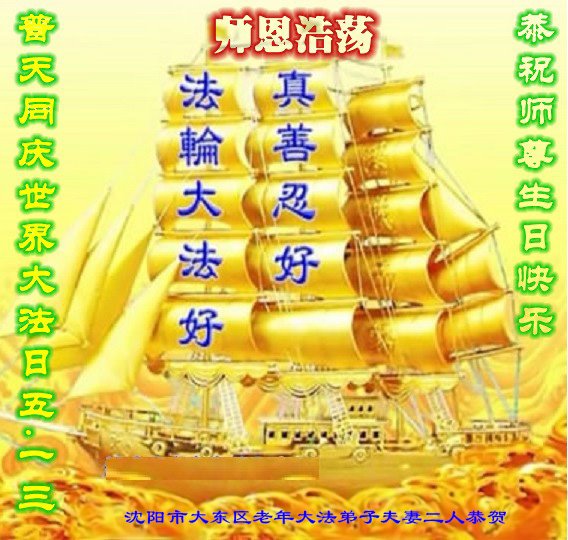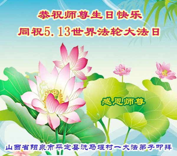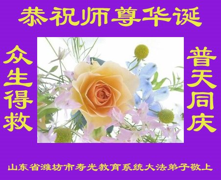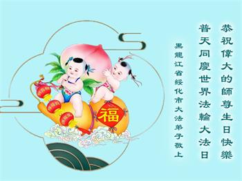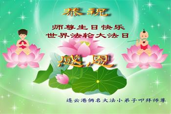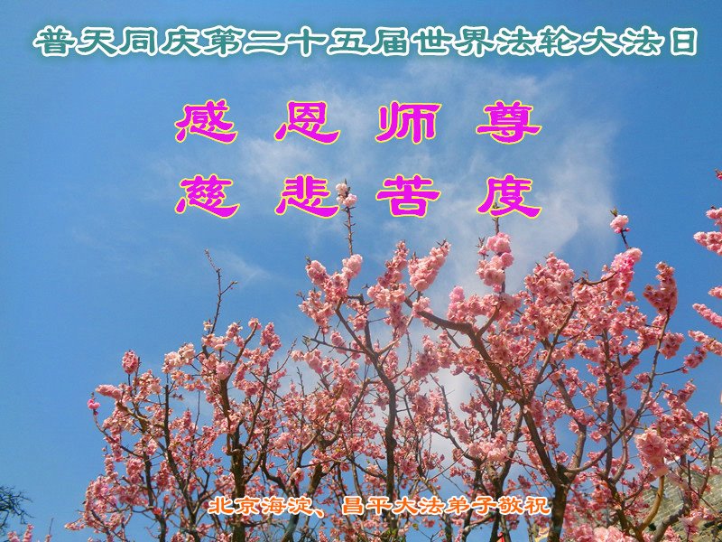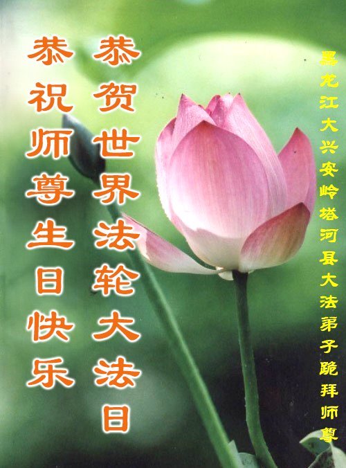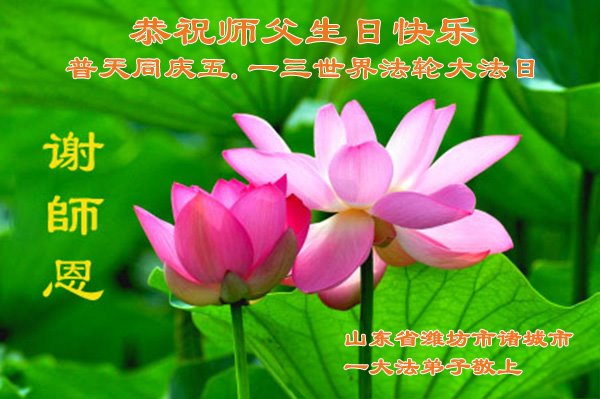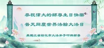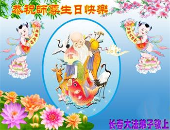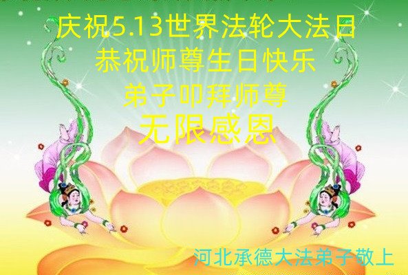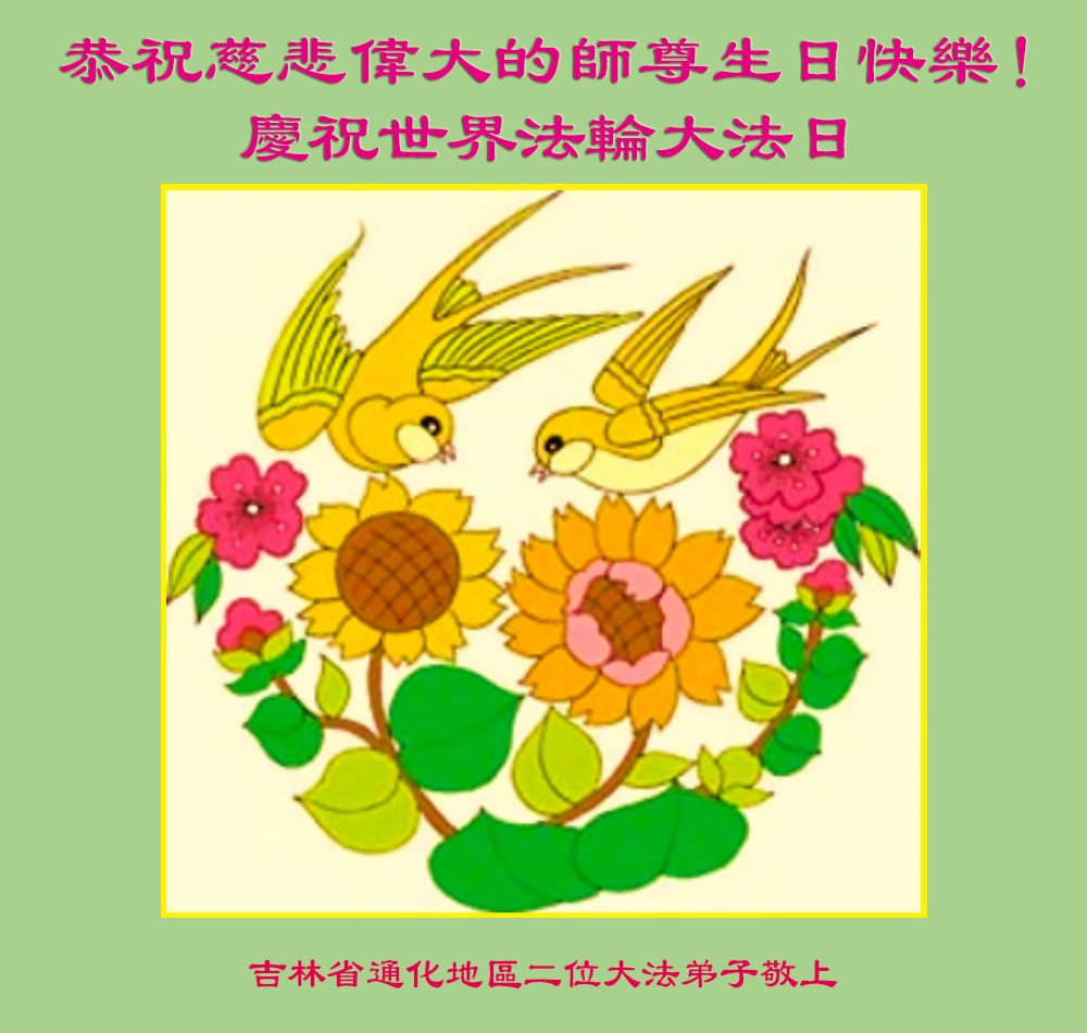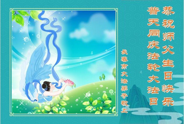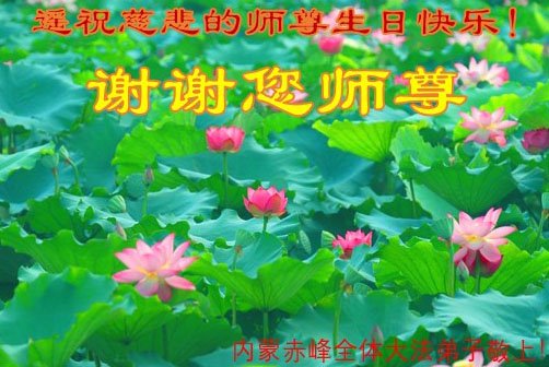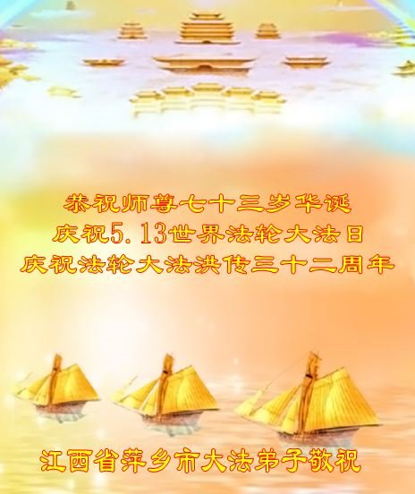 在此我深怀感恩之心,恭贺世界法轮大法日!恭祝大法师父生日快乐!