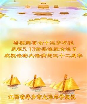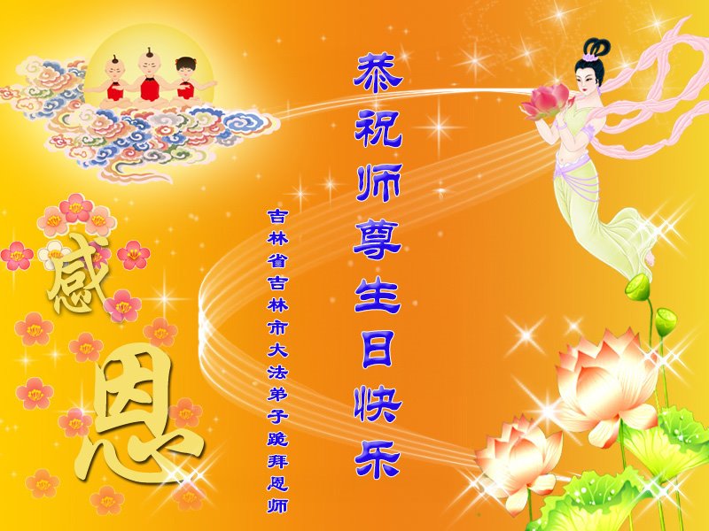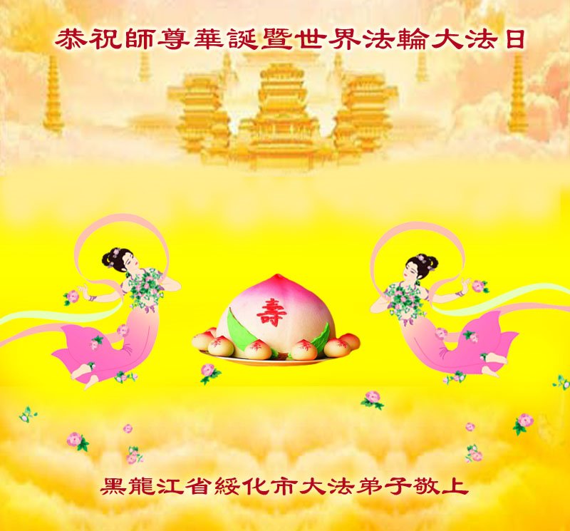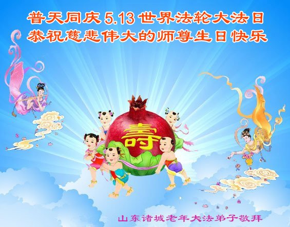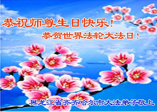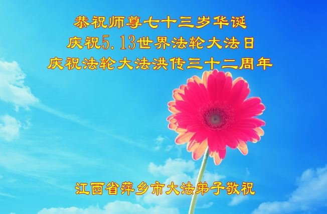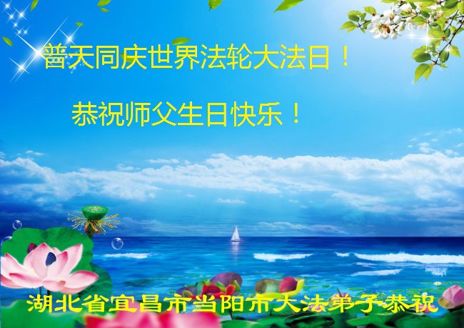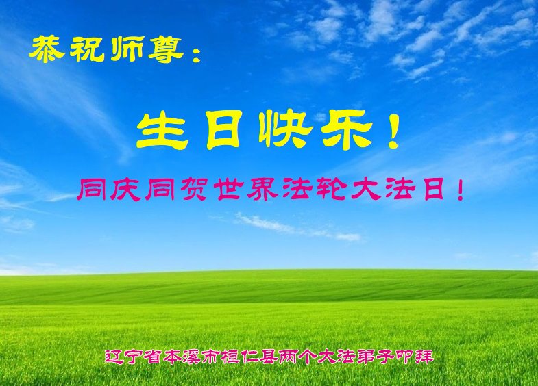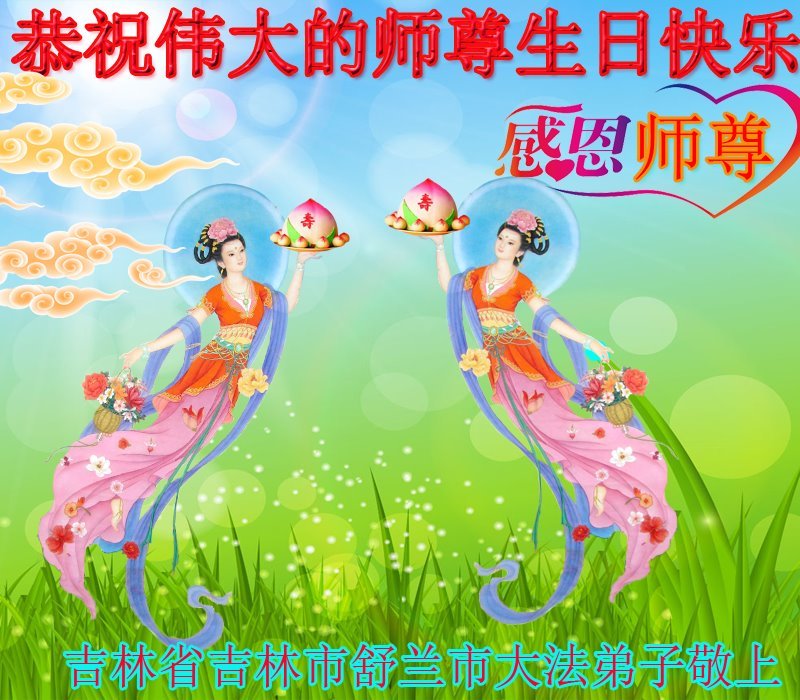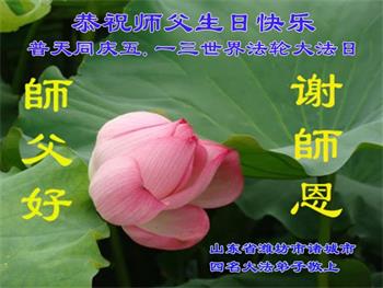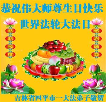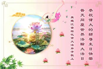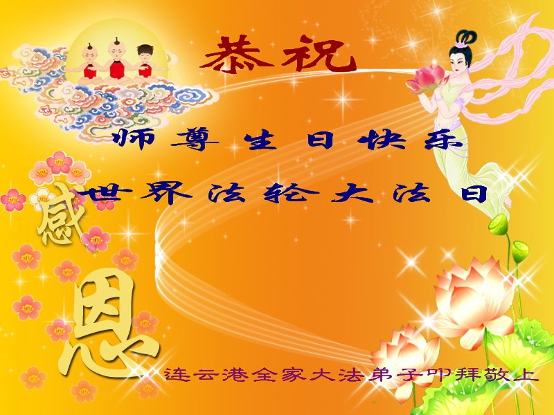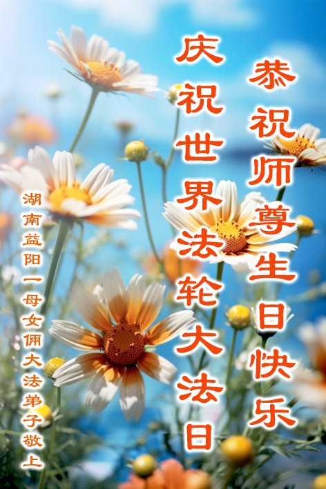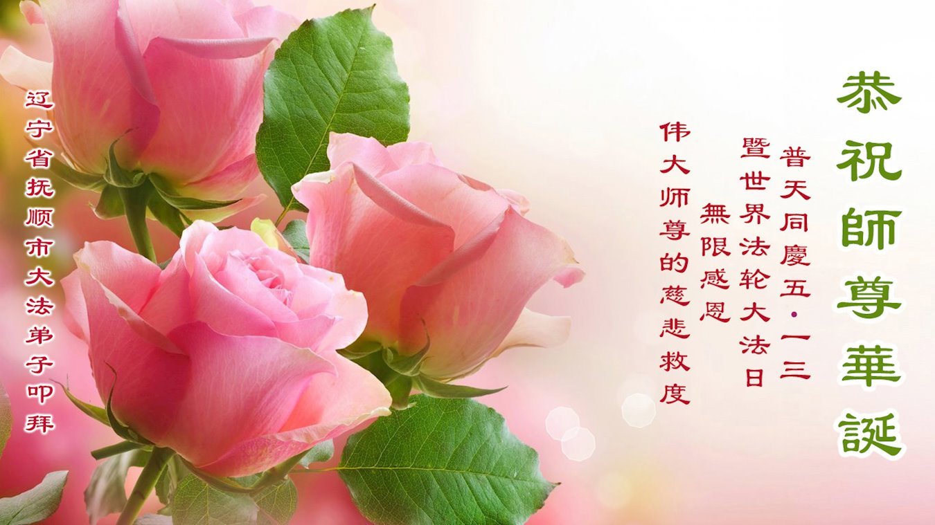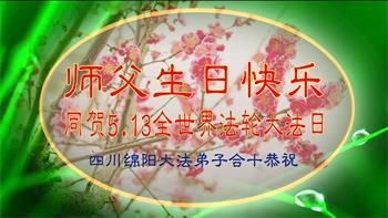在此我深怀感恩之心,恭贺世界法轮大法日!恭祝大法师父生日快乐!