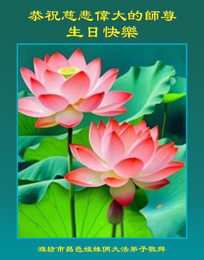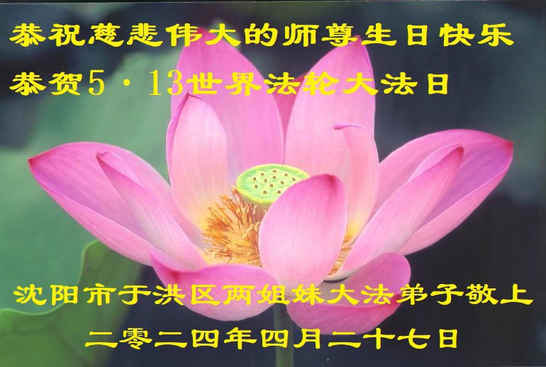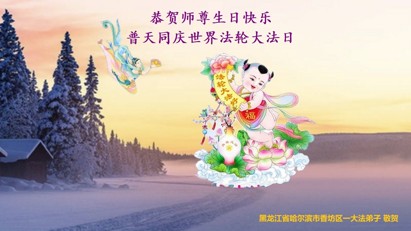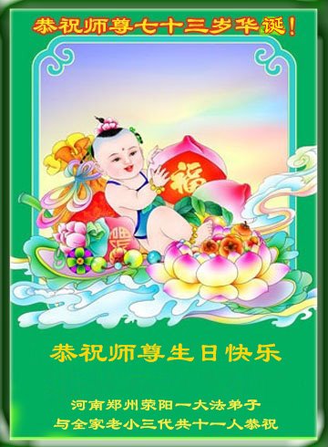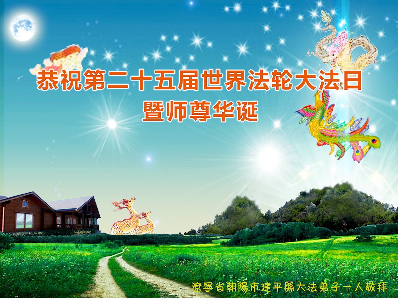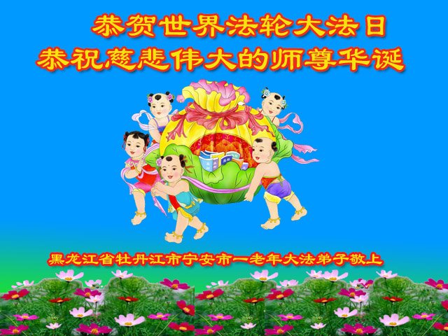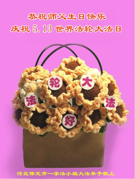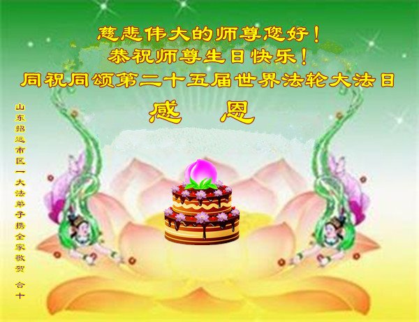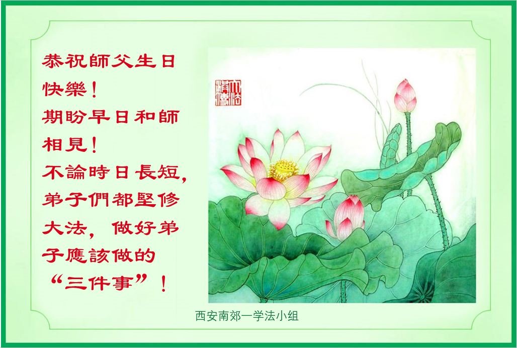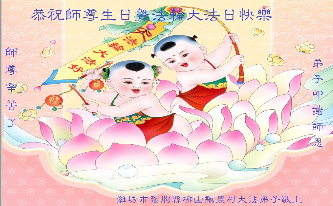 在此我深怀感恩之心,恭贺世界法轮大法日!恭祝大法师父生日快乐!