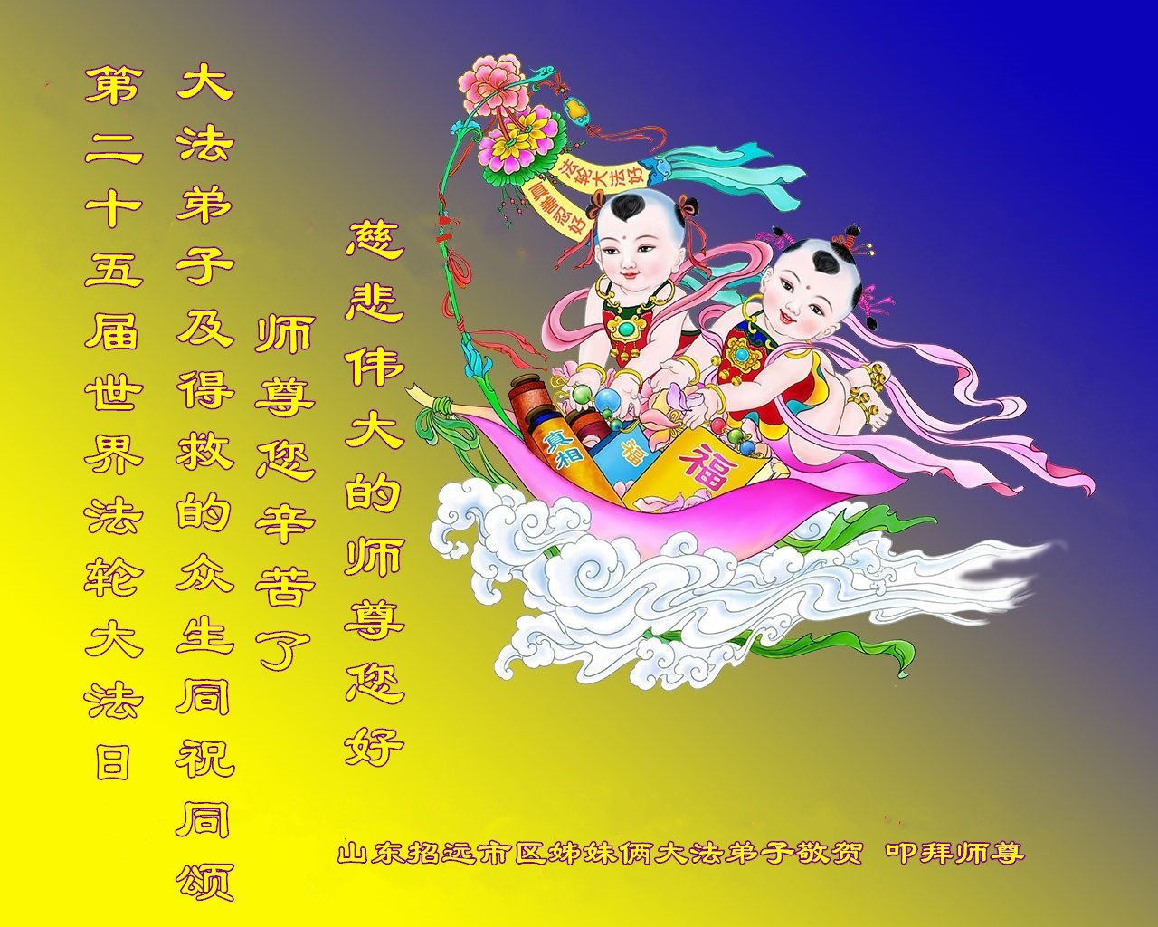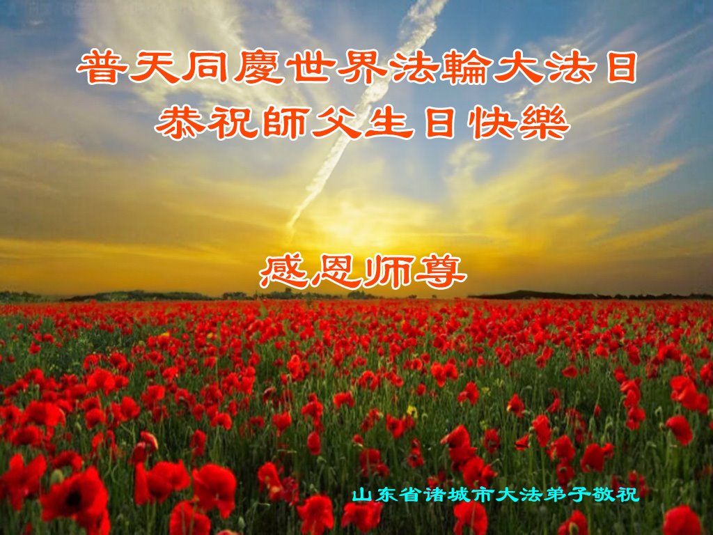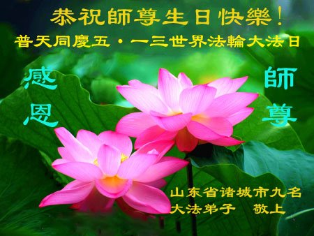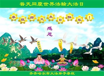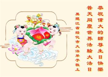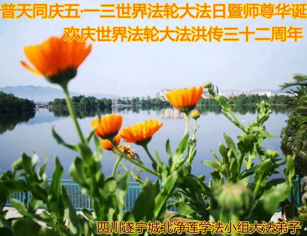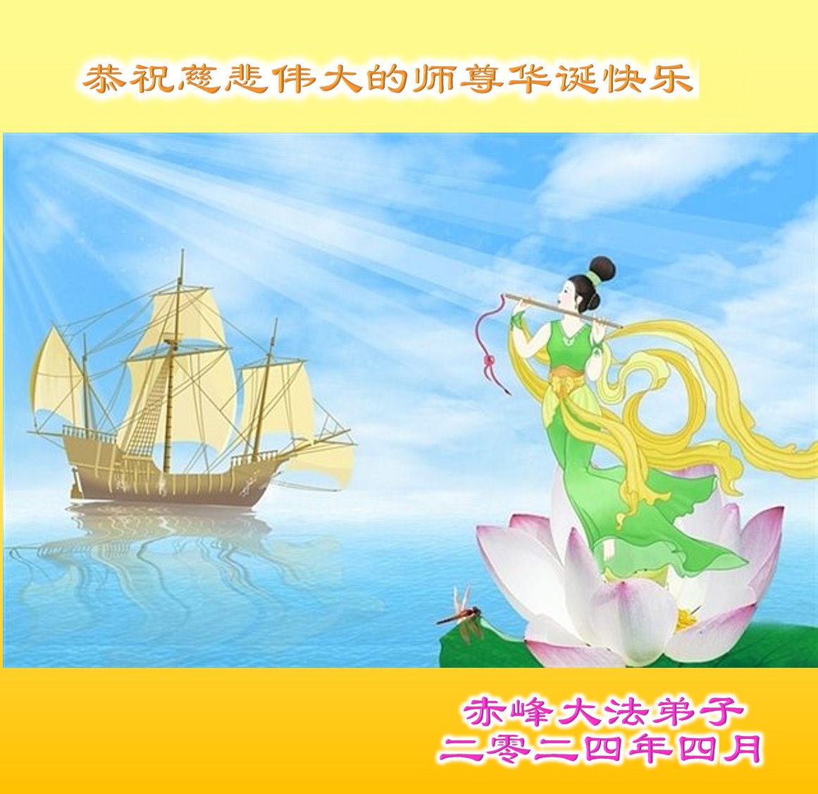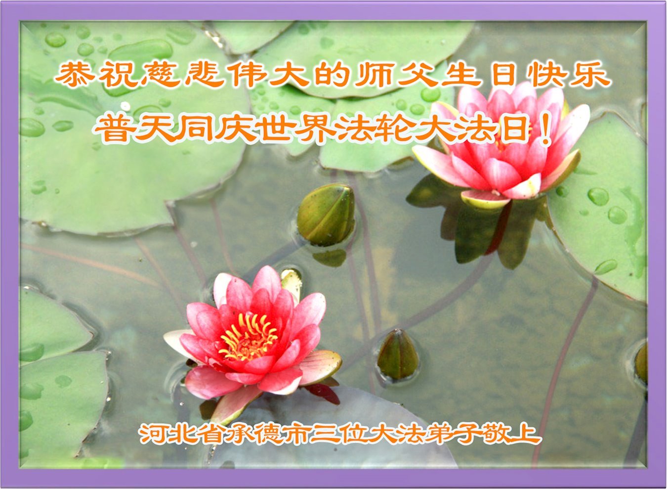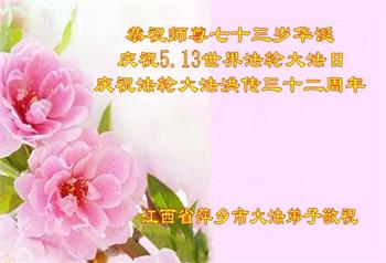 在此我深怀感恩之心,恭贺世界法轮大法日!恭祝大法师父生日快乐!