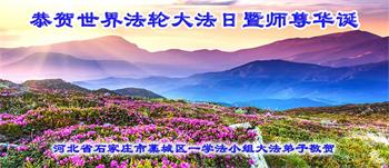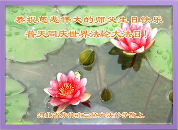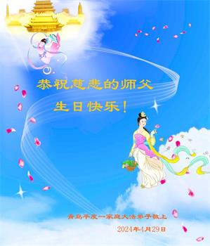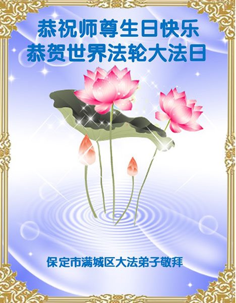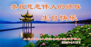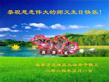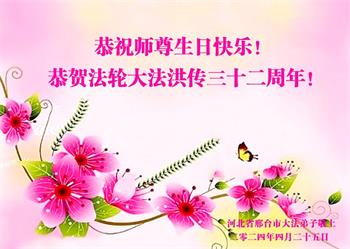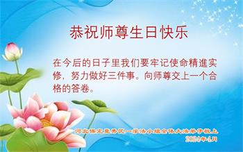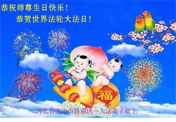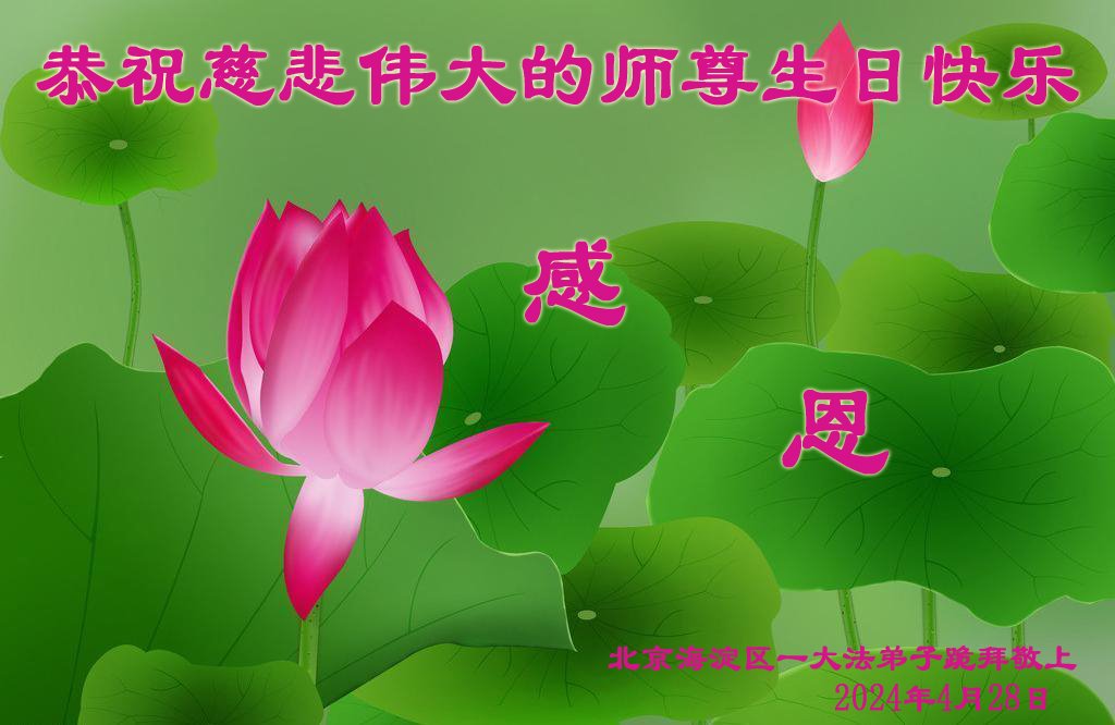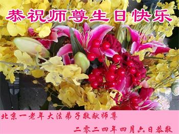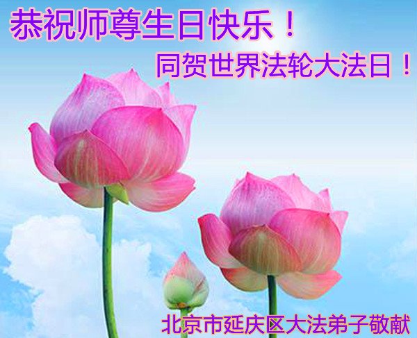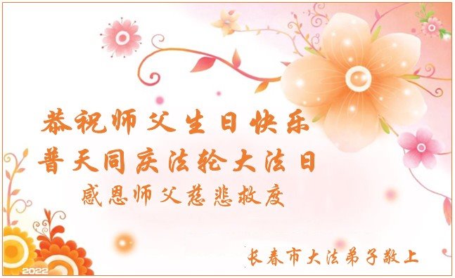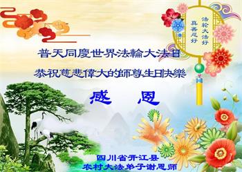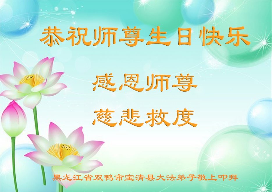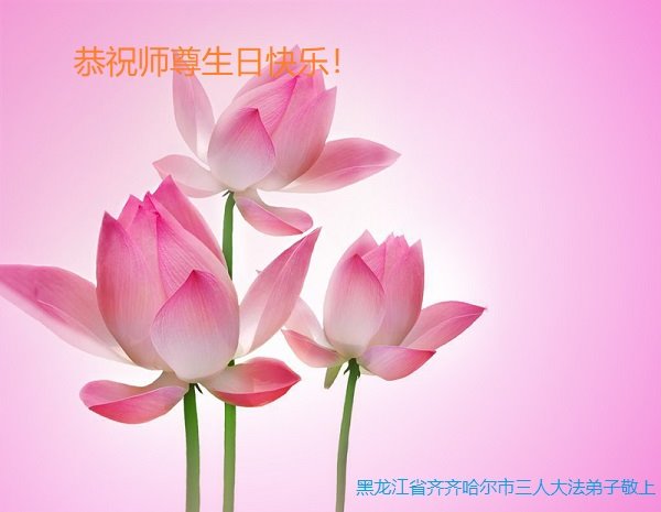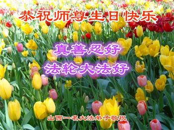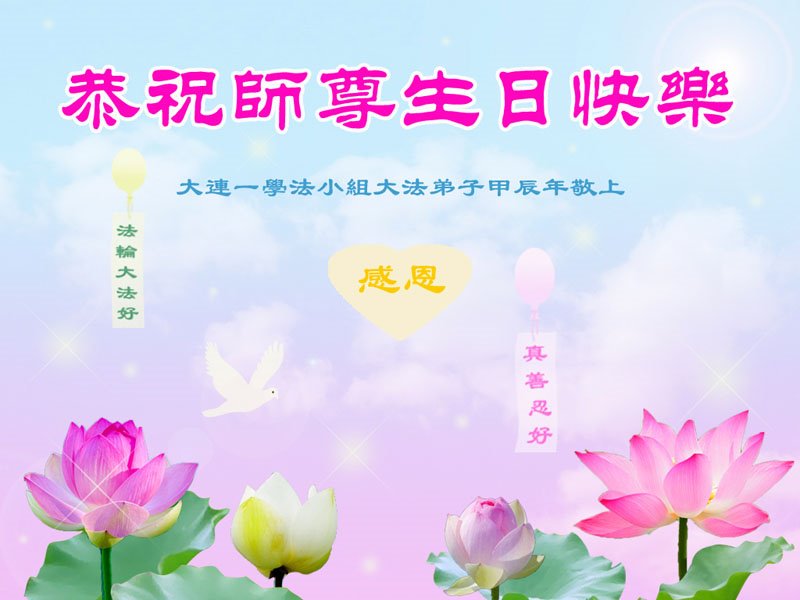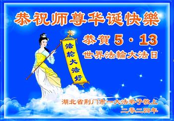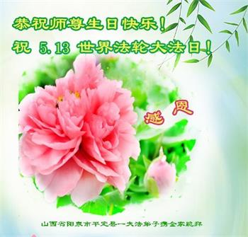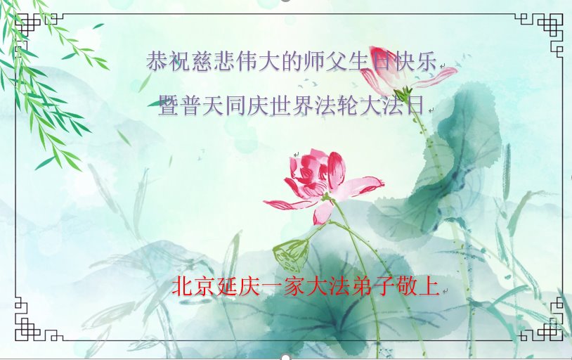 北京市一名硕士研究生说:“我就读于北京某师范院校,是一名即将毕业的硕士研究生。近日我陷入难关后,因为常念‘法轮大法好,真善忍好’,感受到大法赐予我智慧与力量!我深感师父的慈悲苦度。在此我深怀感恩之心,恭贺世界法轮大法日!恭祝大法师父生日快乐!”