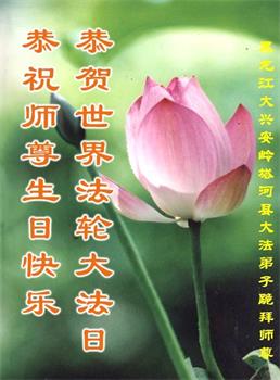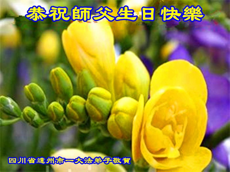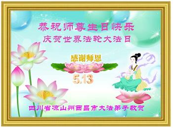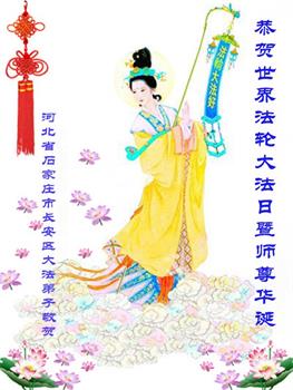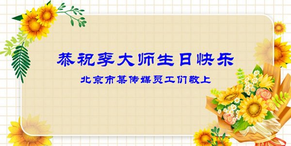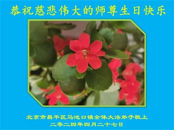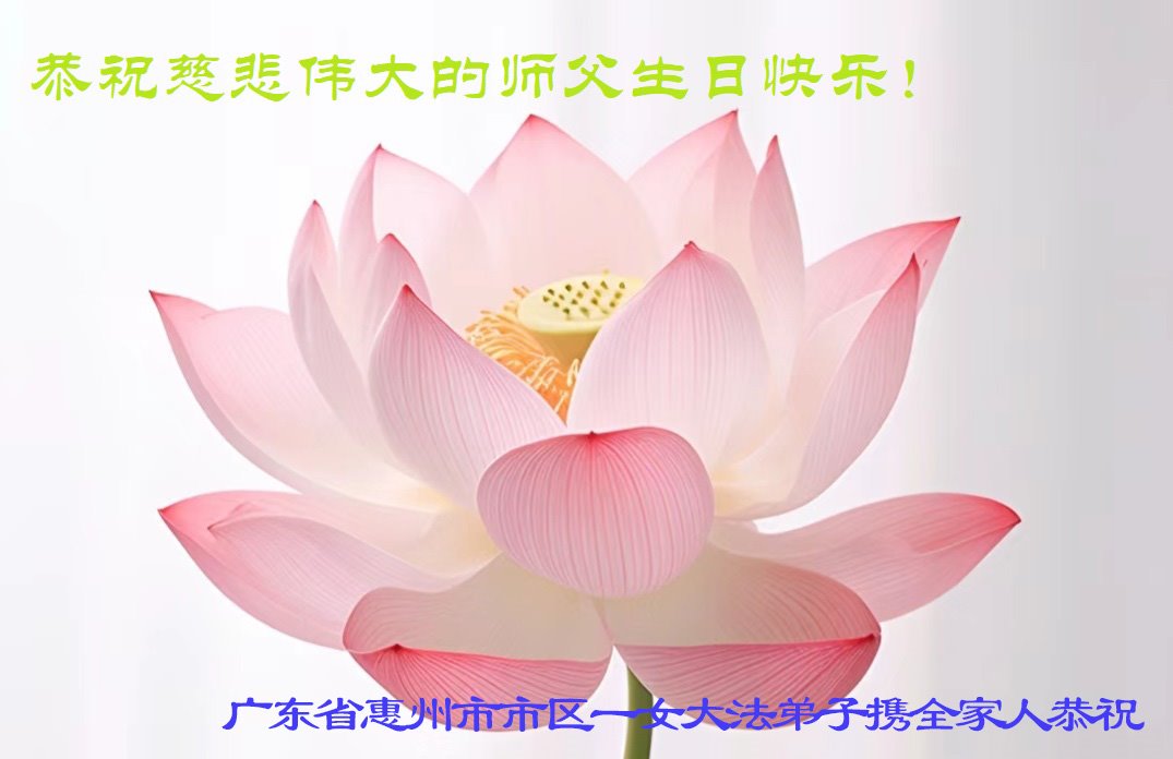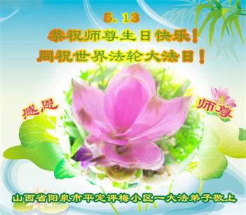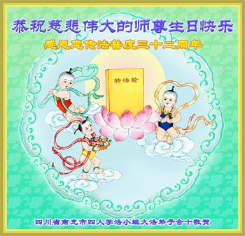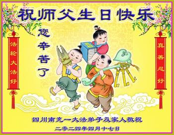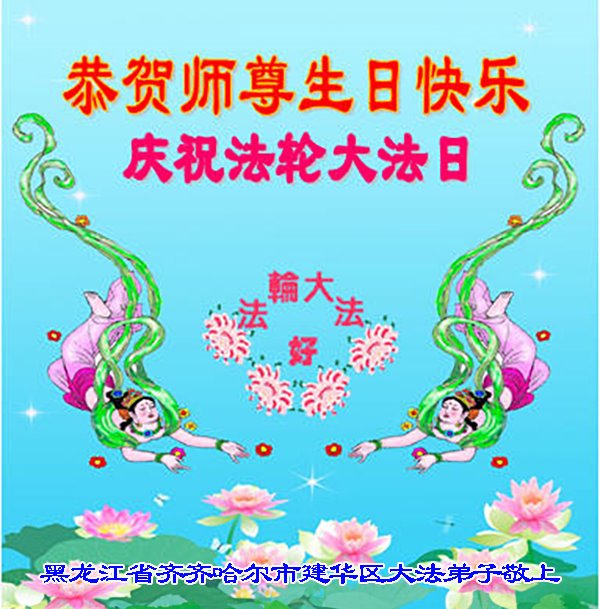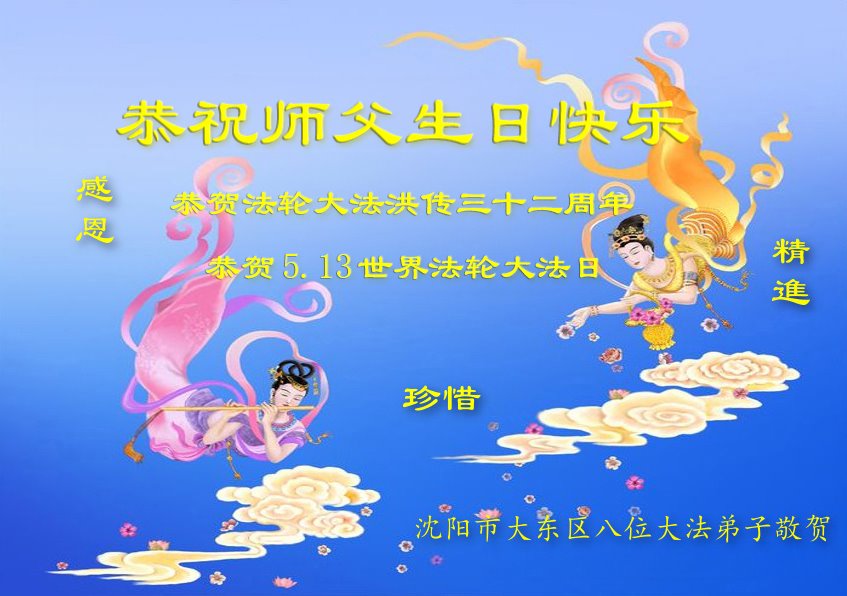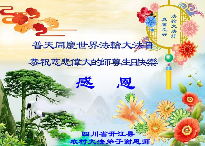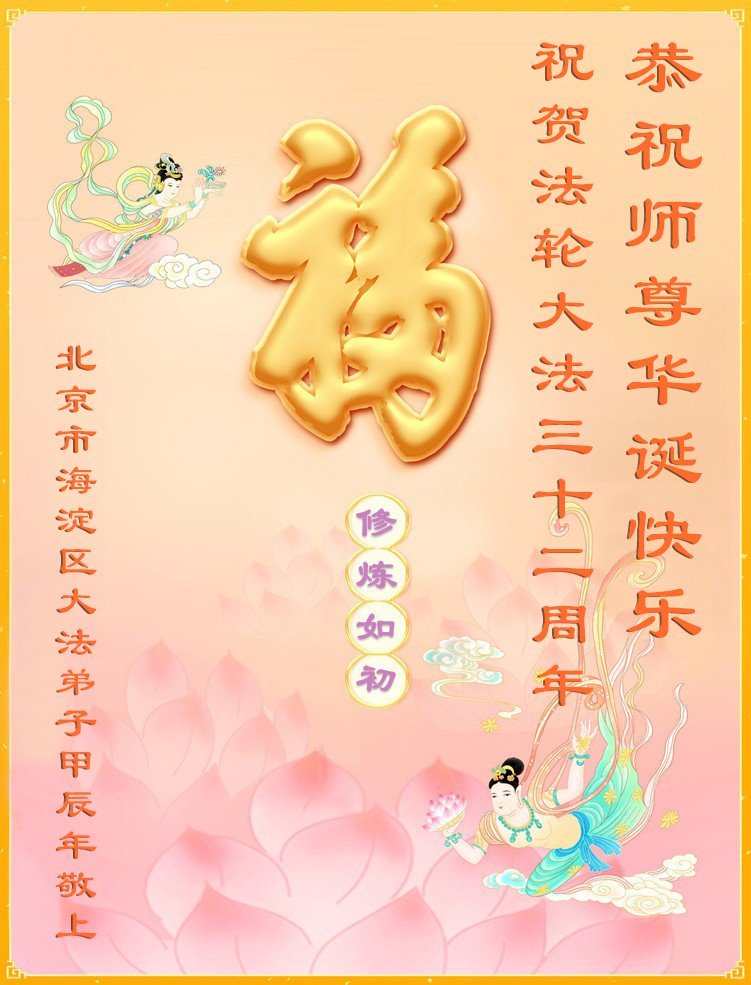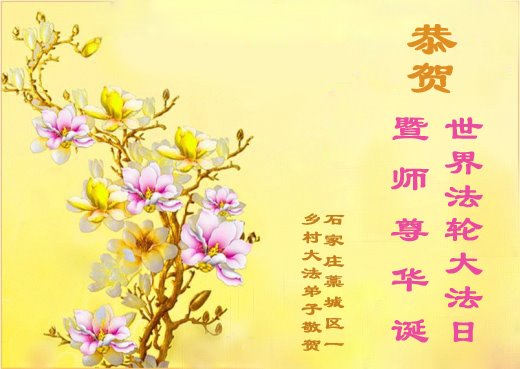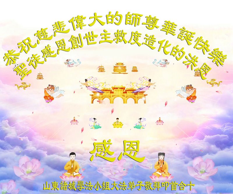 北京市一名硕士研究生说:“我就读于北京某师范院校,是一名即将毕业的硕士研究生。近日我陷入难关后,因为常念‘法轮大法好,真善忍好’,感受到大法赐予我智慧与力量!我深感师父的慈悲苦度。在此我深怀感恩之心,恭贺世界法轮大法日!恭祝大法师父生日快乐!”
