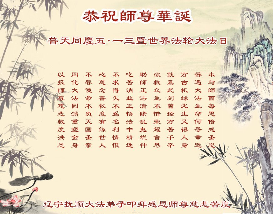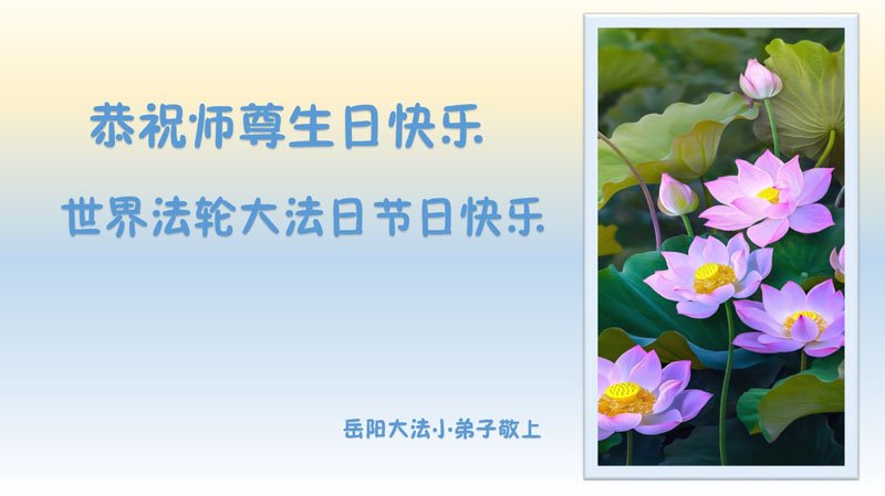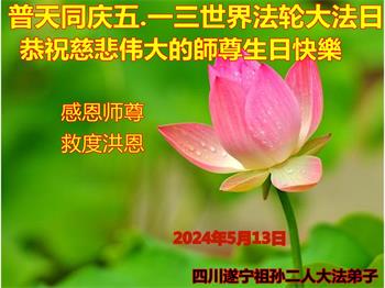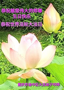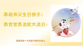 在世界法轮大法日到来之际,首先祝大法师父生日快乐!恭贺世界法轮大法日!